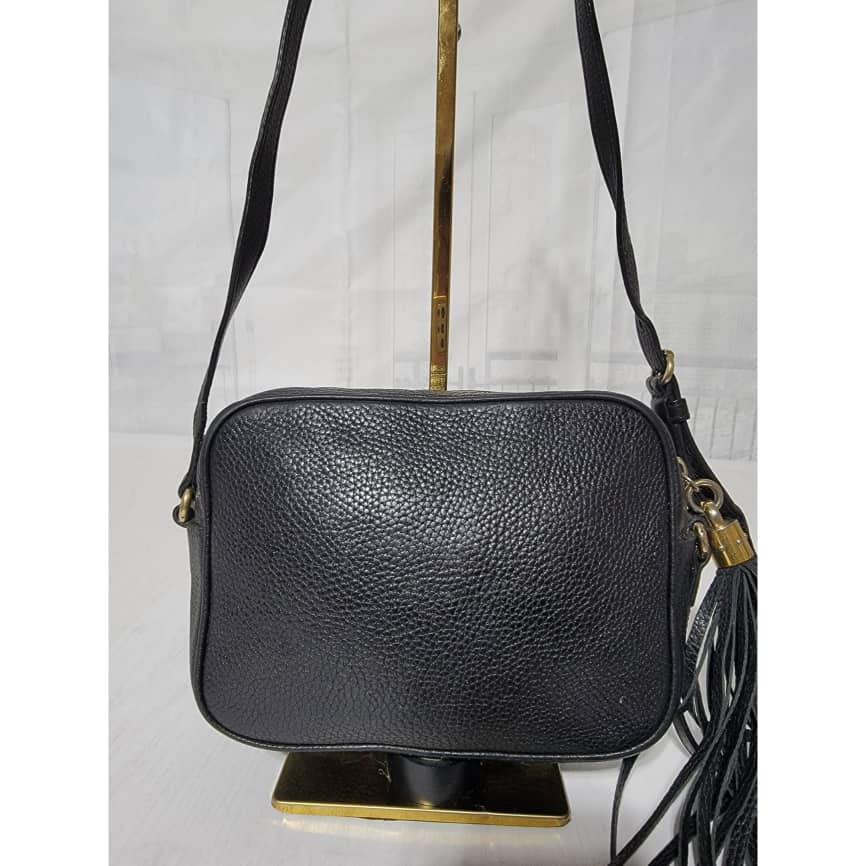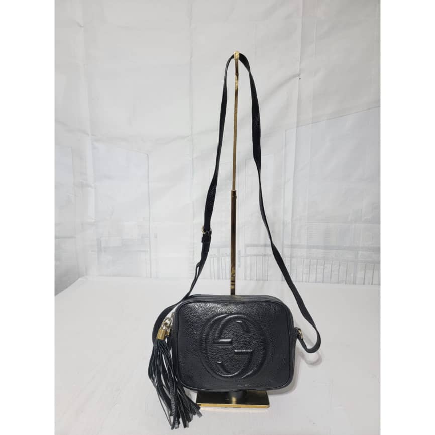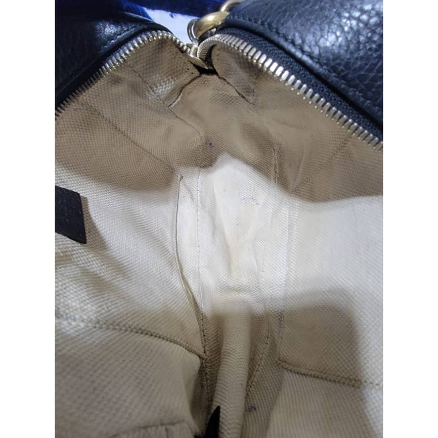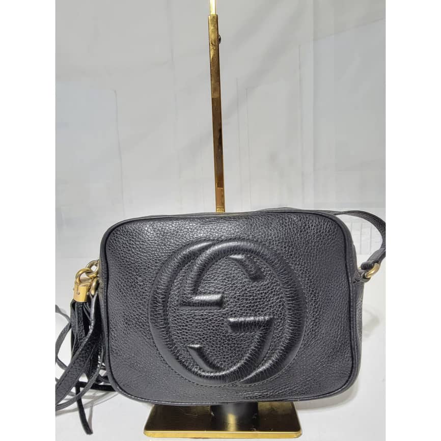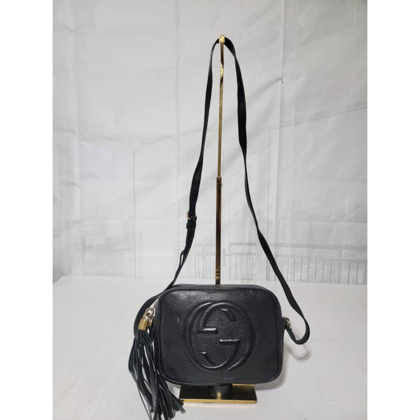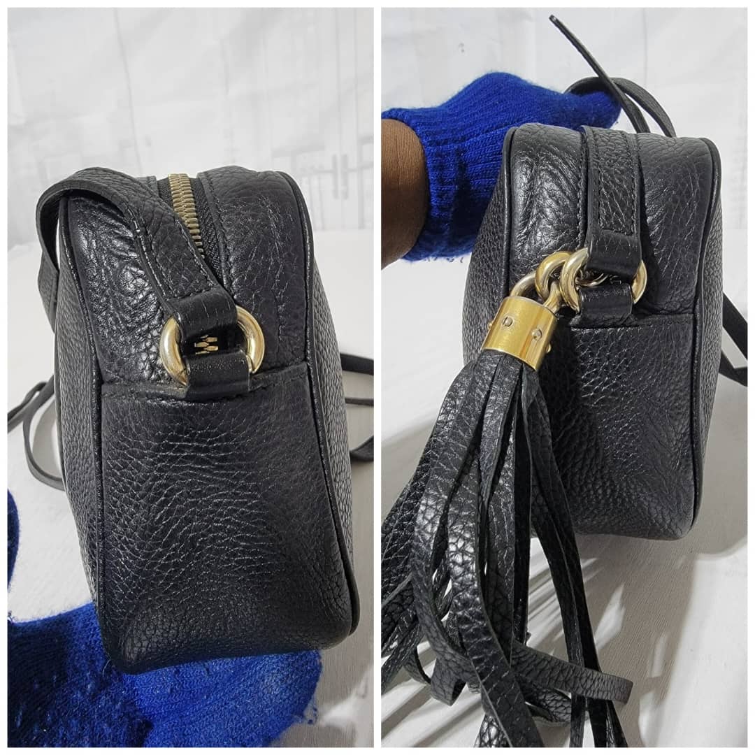 Pebbled Calfskin Small Soho Disco Bag Black is in it’s good pre-owned condition the exterior Pebbled Leather is clean and beautiful. Interior is clean. Tiny little pen mark not obvious.