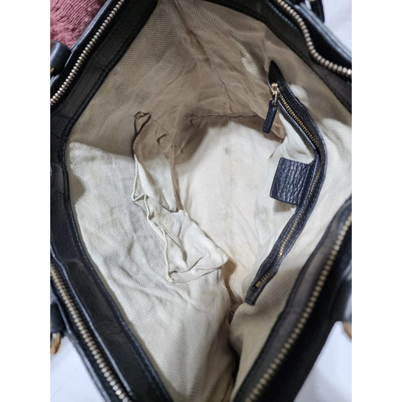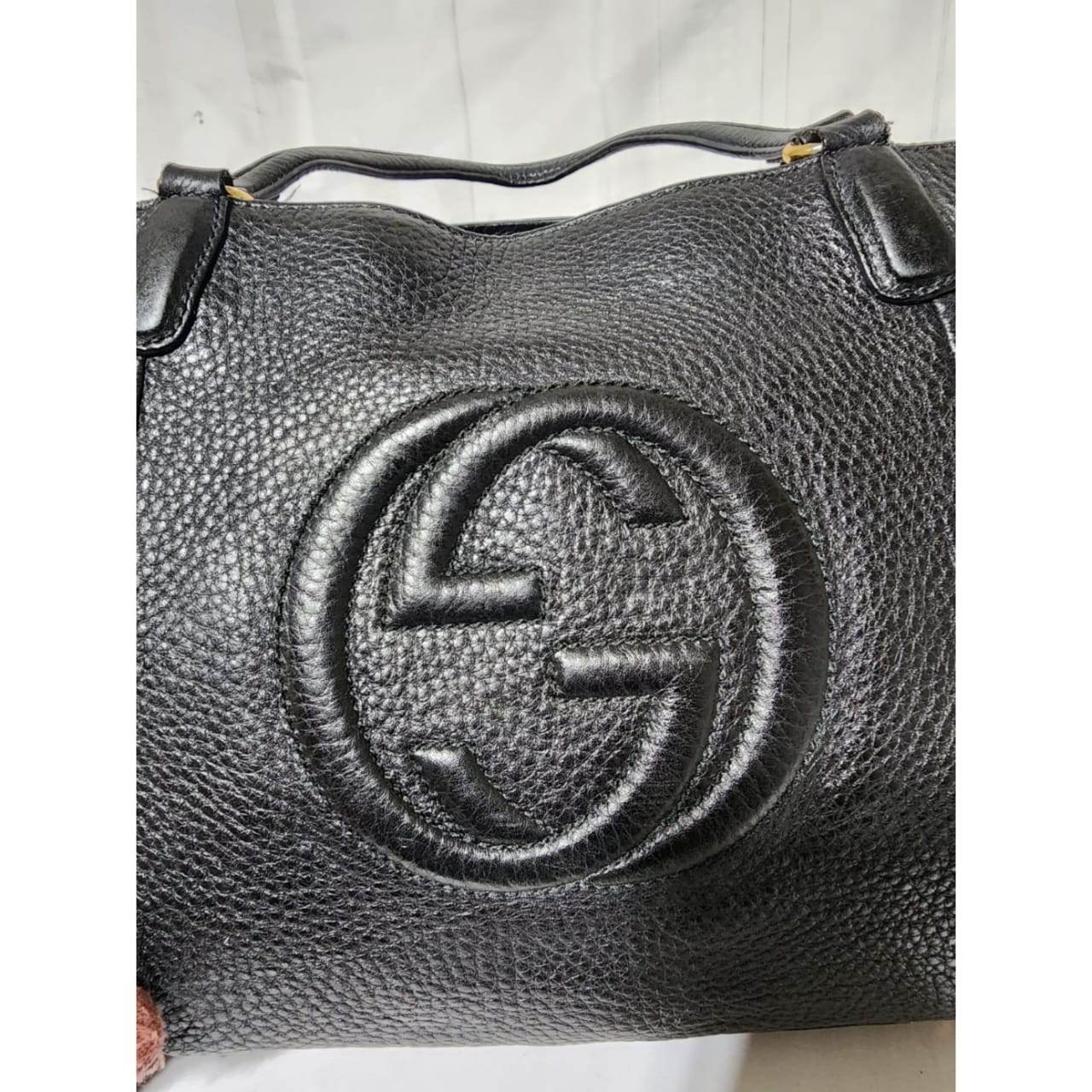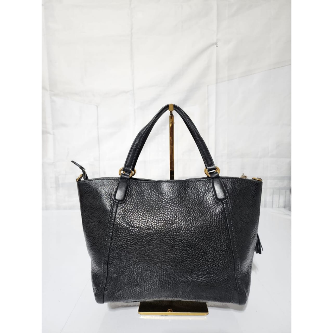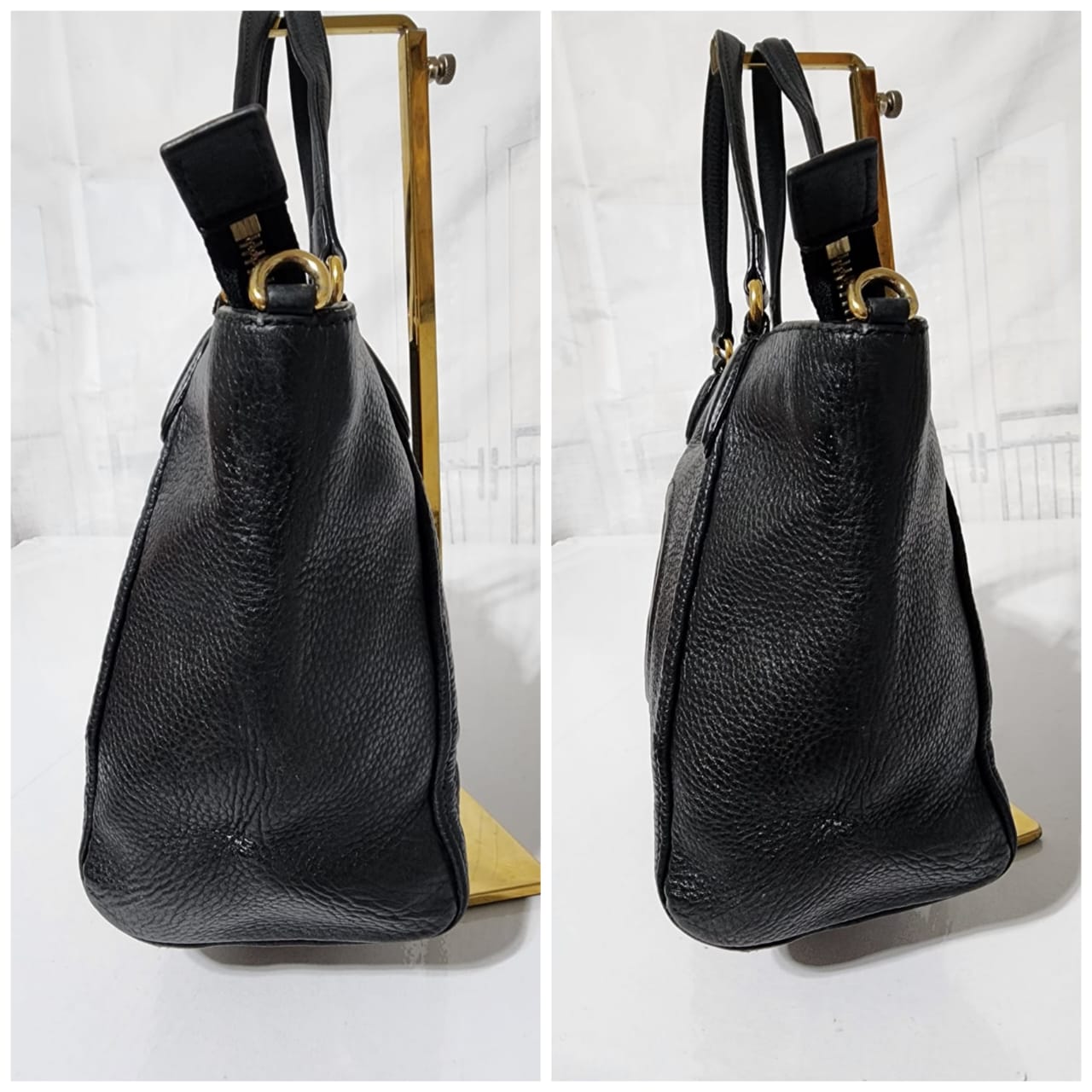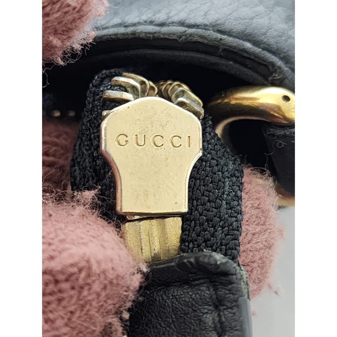 This authentic GUCCI Pebbled Calfskin Small Soho Top Handle Bag Black is in it’s pre-owned condition. The exterior leather is clean. The interior has sign of wear (Kindly look at pictures above), a small bag organizer will be included inside. The strap is missing, a generic strap will be included. There are scratches on the hardware. There is a little cut beside the teeth of the zip however, it works fine ( Kindly note it’s in the pictures).