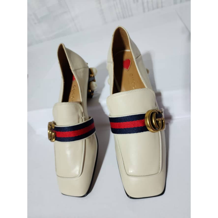 This authentic Gucci Peyton GG Sylvie Pearl Studded Loafer White is in it’s good pre-owned condition. The exterior is clean, however it shows some marks and not so obvious tiny dotted stains and wear. The interior is clean, it shows sign of use. Heels 1.25 inches