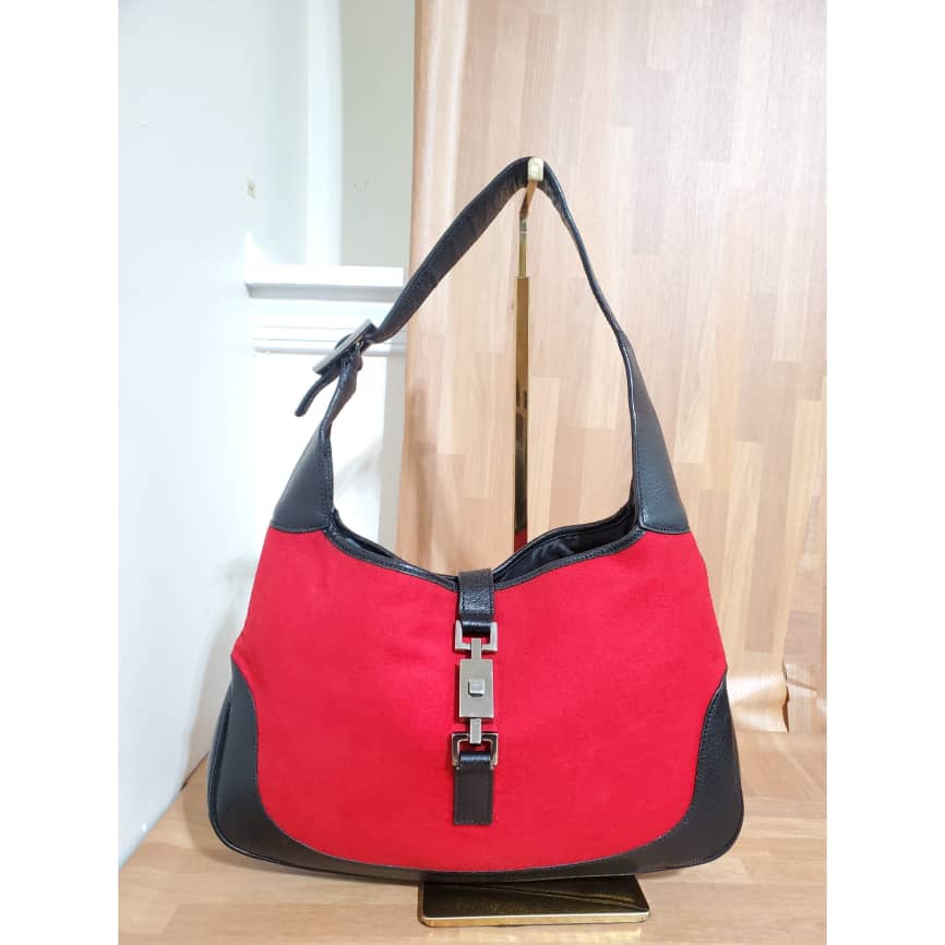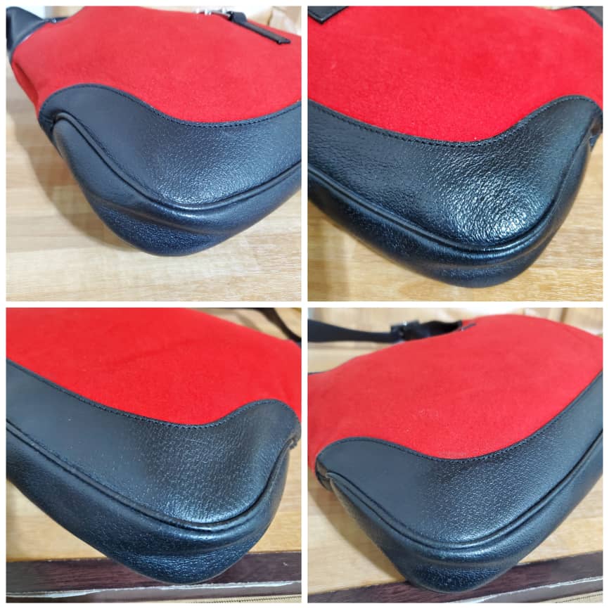 This authentic GUCCI RED FELT JACKIE O HOBO BAG is in it’s pre-owned good condition. Has sign of use. The exterior is clean and beautiful. Interior is clean. The interior pocket zip is out and the zipper teeth is cut. Overall good condition. Great classy bag. Great color for the season
