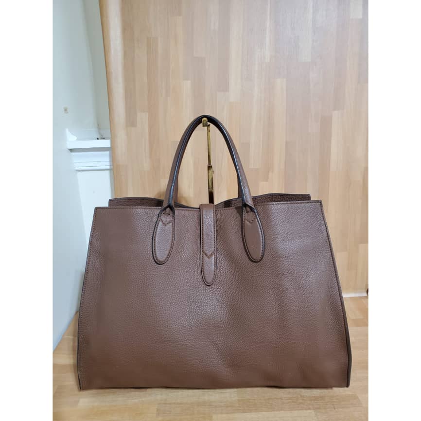 This authentic GUCCI Soft Calfskin Medium Jackie Top Handle Bag Classic Brown is in its pre-owned good condition. The exterior leather is clean and beautiful great condition. Interior is clean. This bag gives a classic and elevated look. The brown tone color makes it more classy.