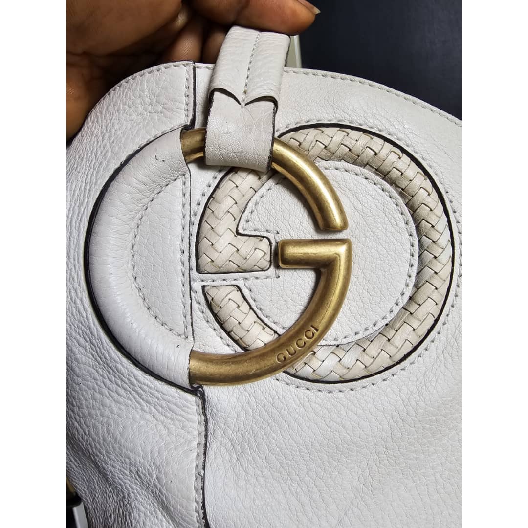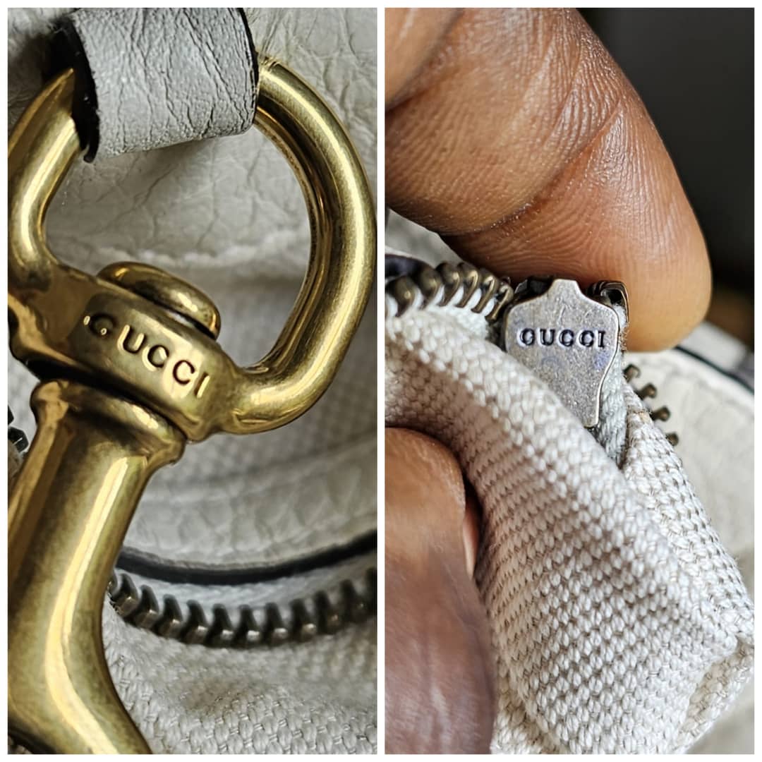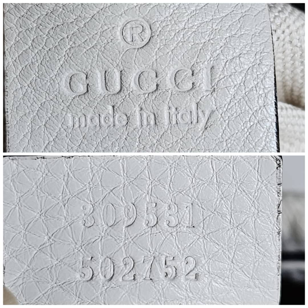 This authentic Gucci twill Interlocking G Leather Shoulder Bag Off-White is in it’s good pre-owned condition. The exterior leather is clean and beautiful. Interior is clean. Comes with a Gold Gucci charm logo.