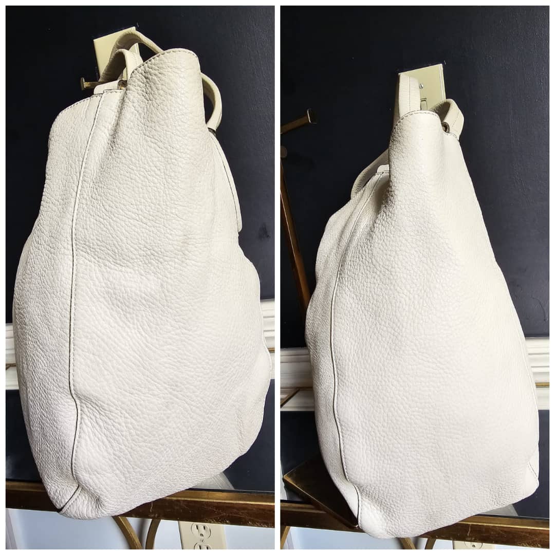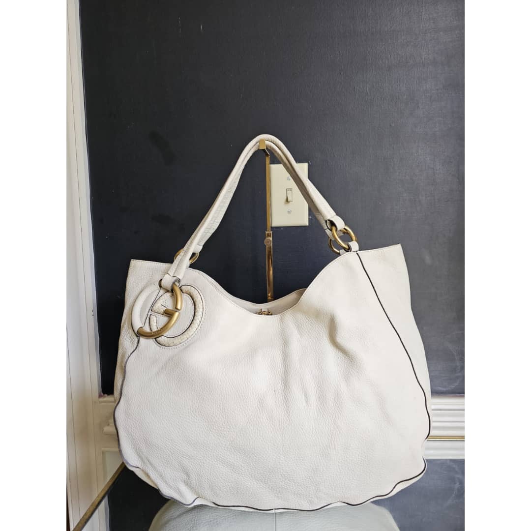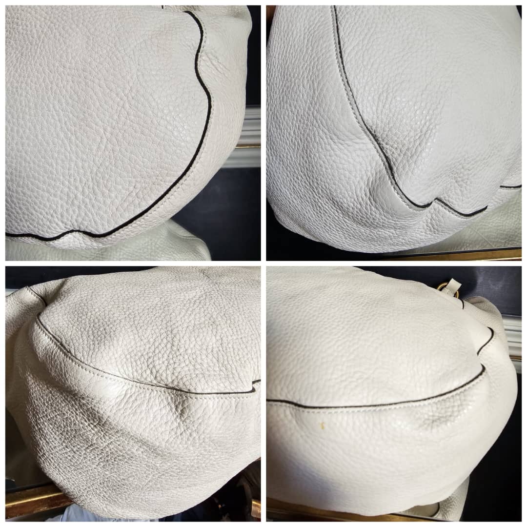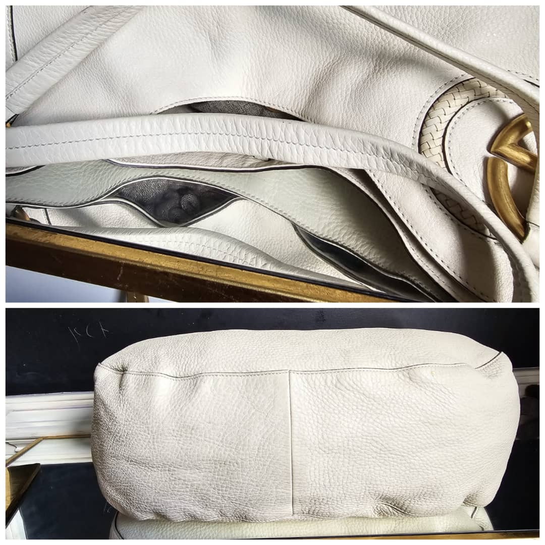 This authentic Gucci twill Interlocking G Leather Shoulder Bag Off-White is in it’s good pre-owned condition. The exterior leather is clean and beautiful. Interior is clean. Comes with a Gold Gucci charm logo.