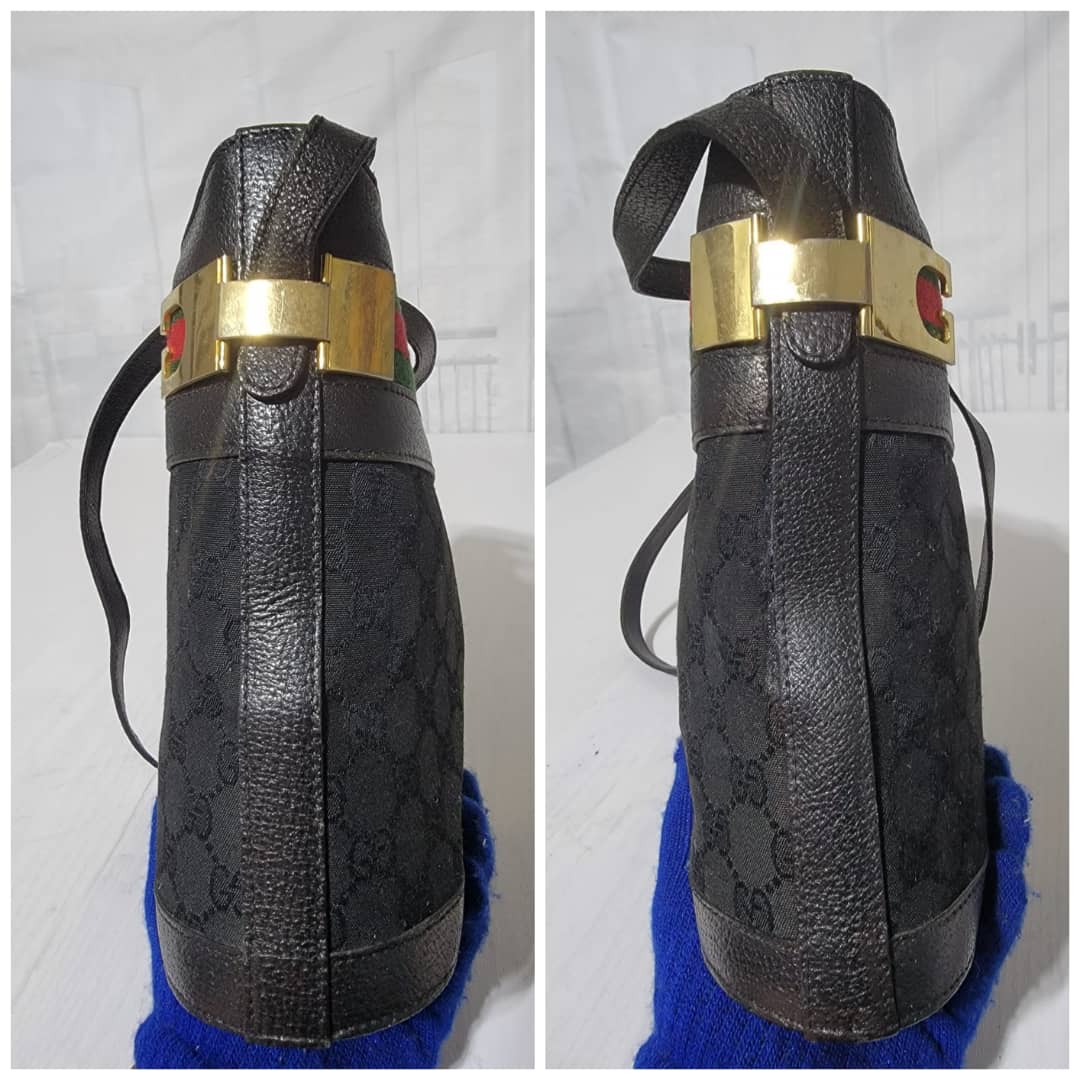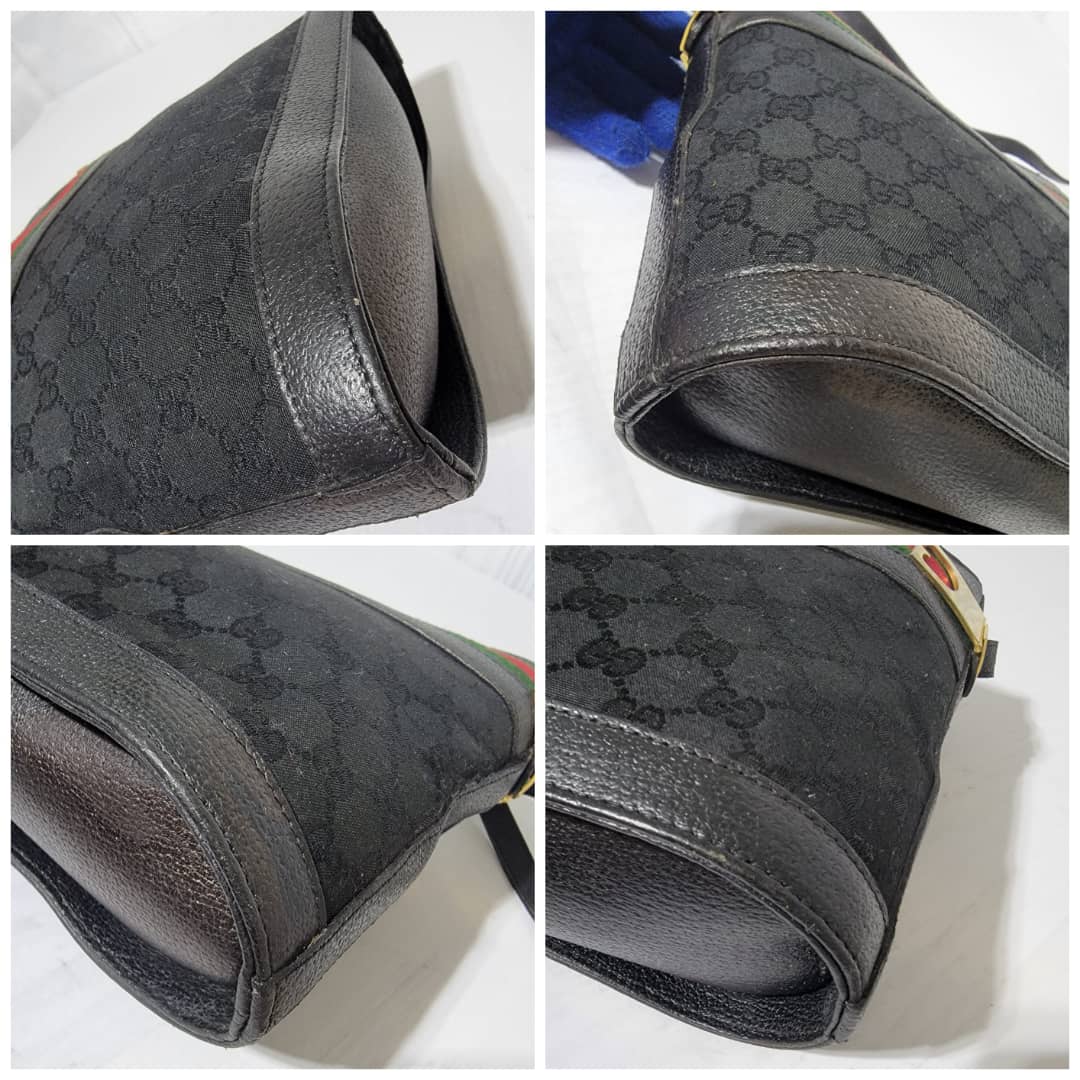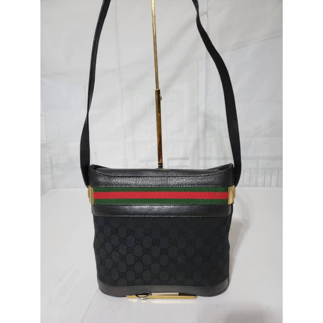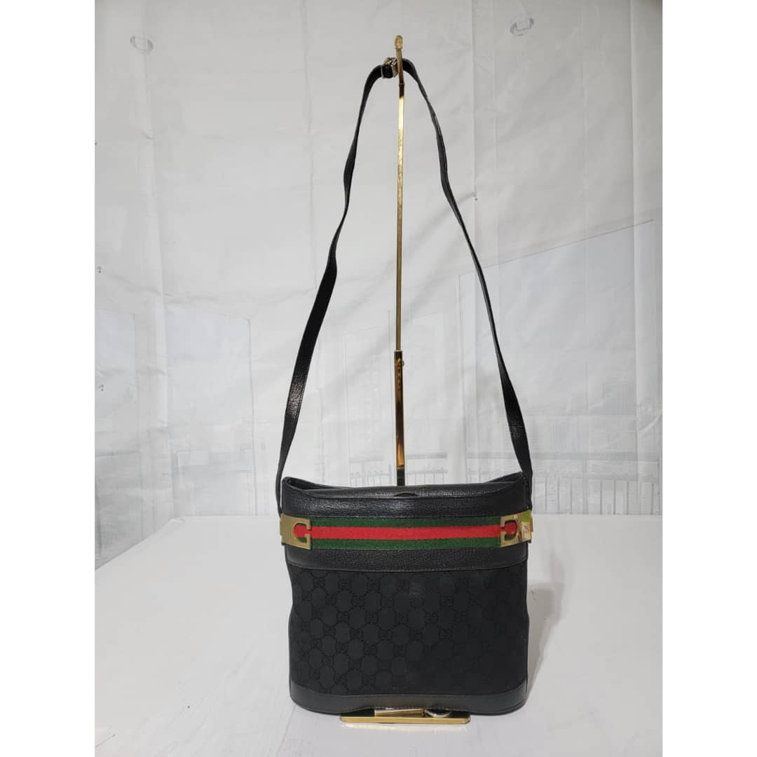 This authentic Gucci Vintage GG horse bit web Crossbody Bag Black is in itβs good pre-owned condition. The exterior is clean and beautiful. Interior is clean. Gold hardware shows sign of scratch. It can be worn as a crossbody/shoulder bag.