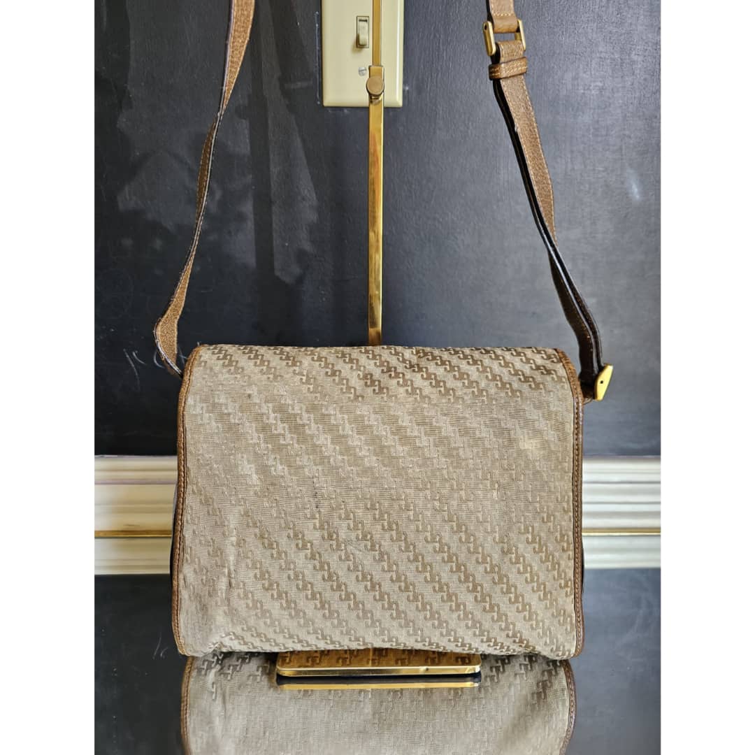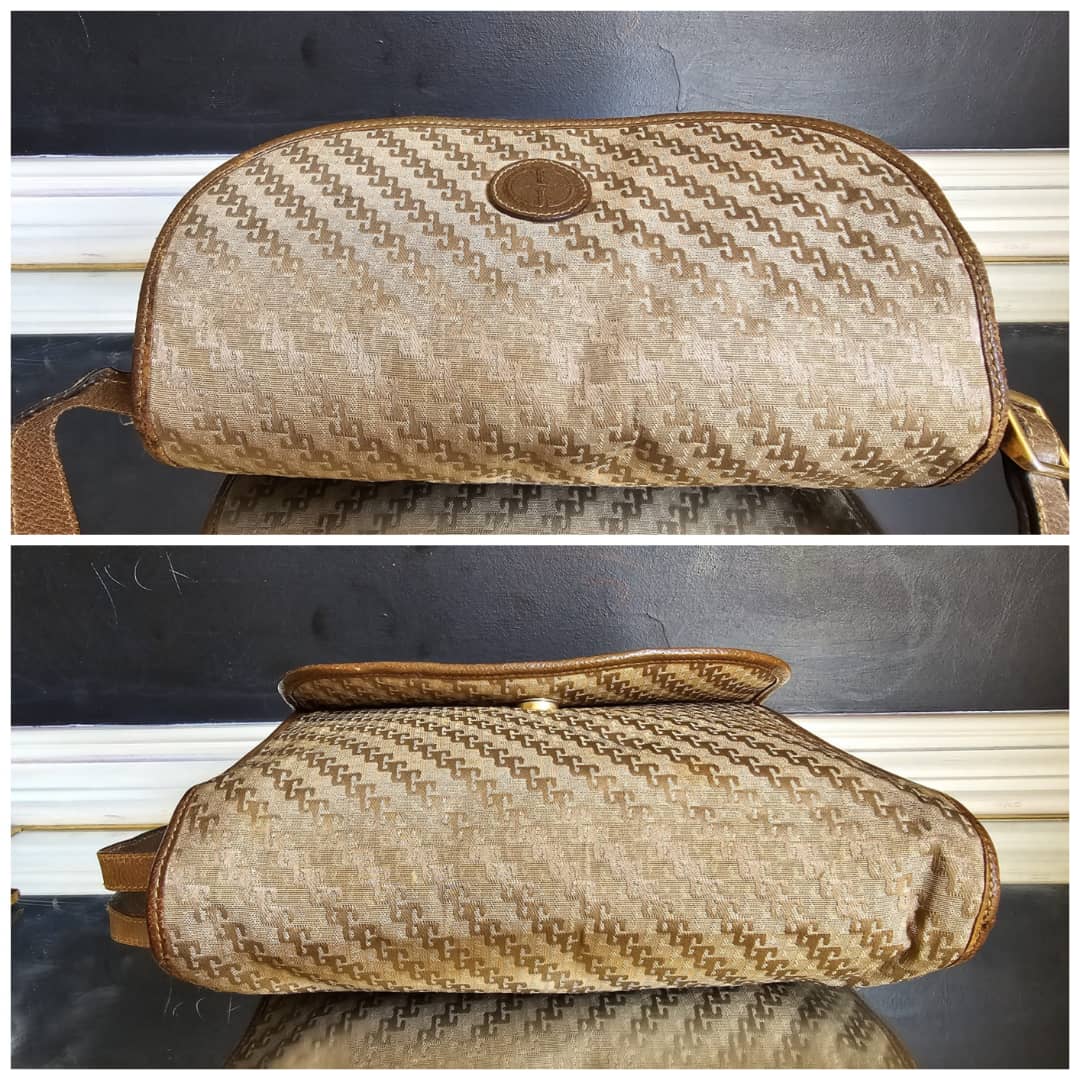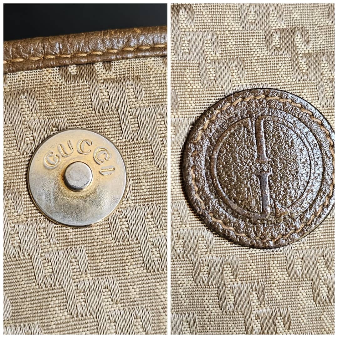 This authentic Gucci Vintage GG Jacquard Crossbody Bag Brown is in it’s good pre-owned condition. The exterior is clean and beautiful. The brown leather trim shows some scratches at the base edges. Interior is clean. Gold hardware.