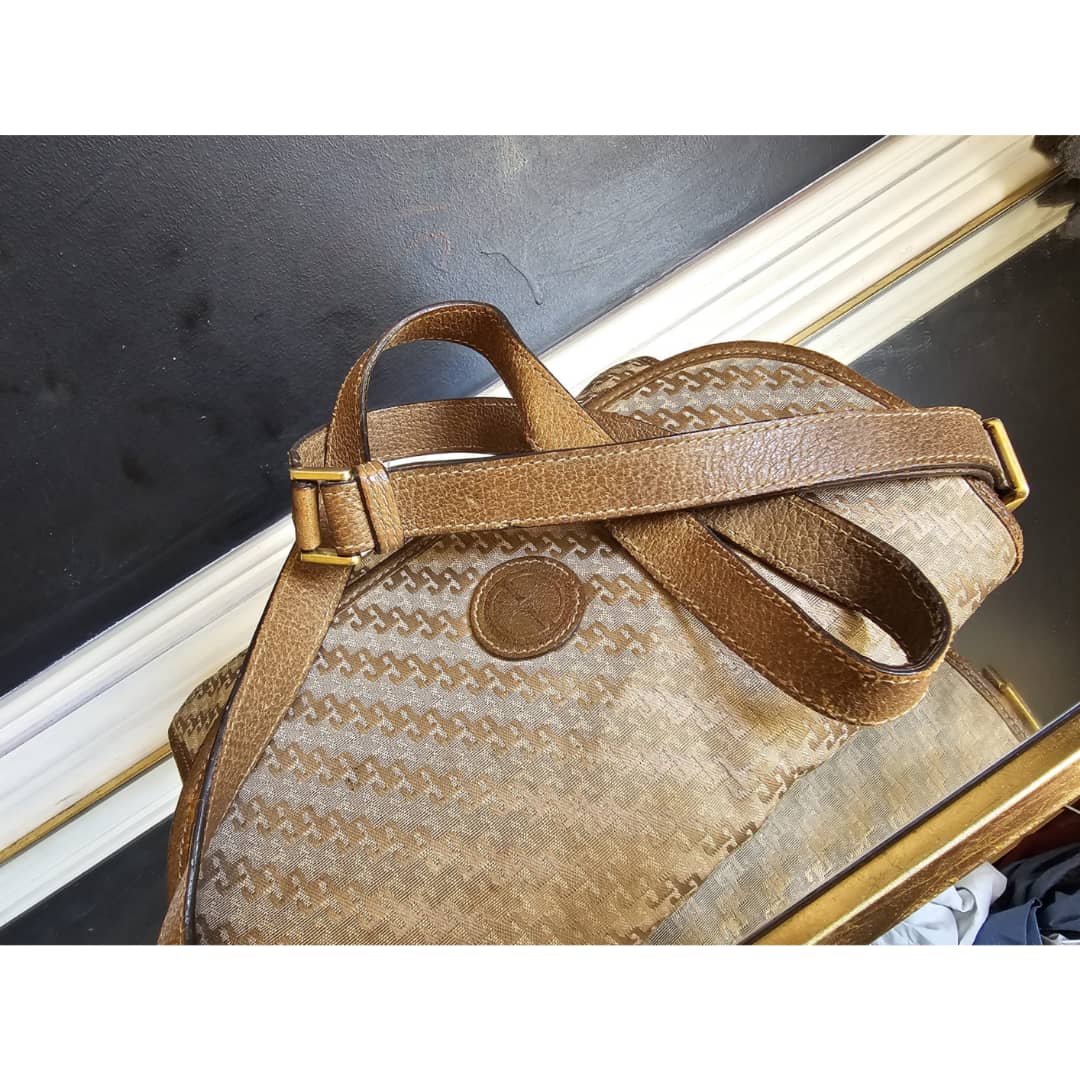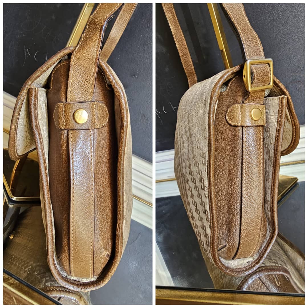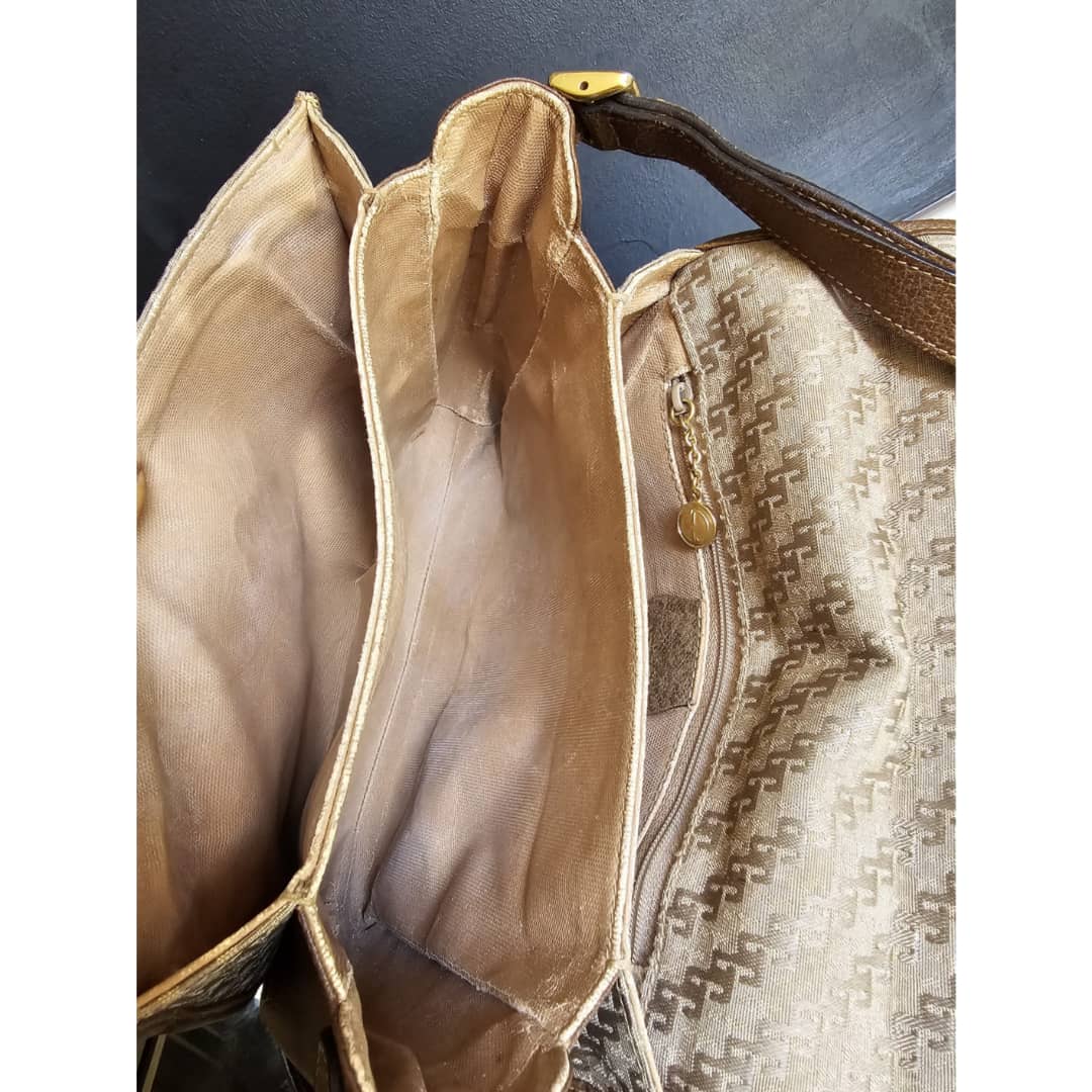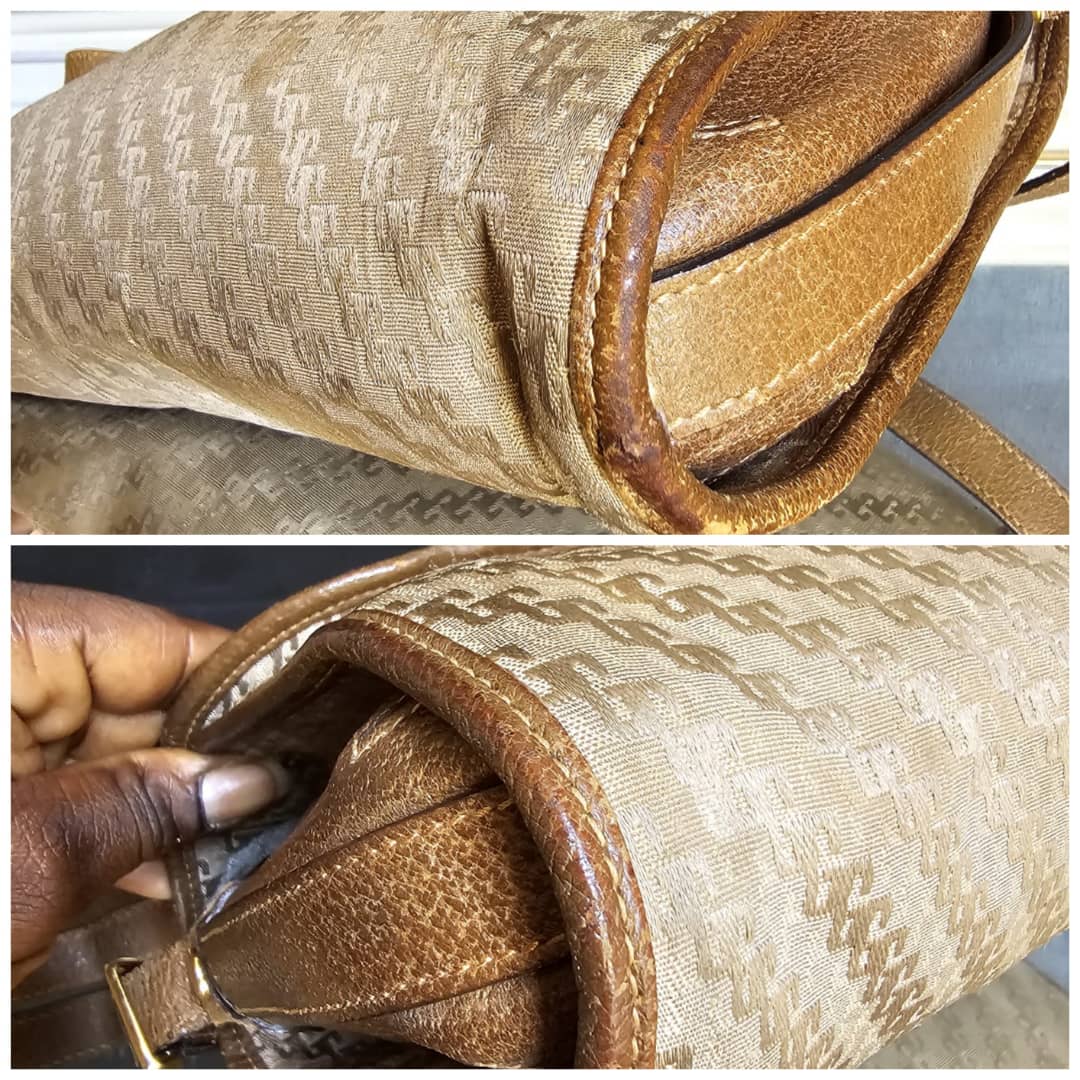 This authentic Gucci Vintage GG Jacquard Crossbody Bag Brown is in it’s good pre-owned condition. The exterior is clean and beautiful. The brown leather trim shows some scratches at the base edges. Interior is clean. Gold hardware.