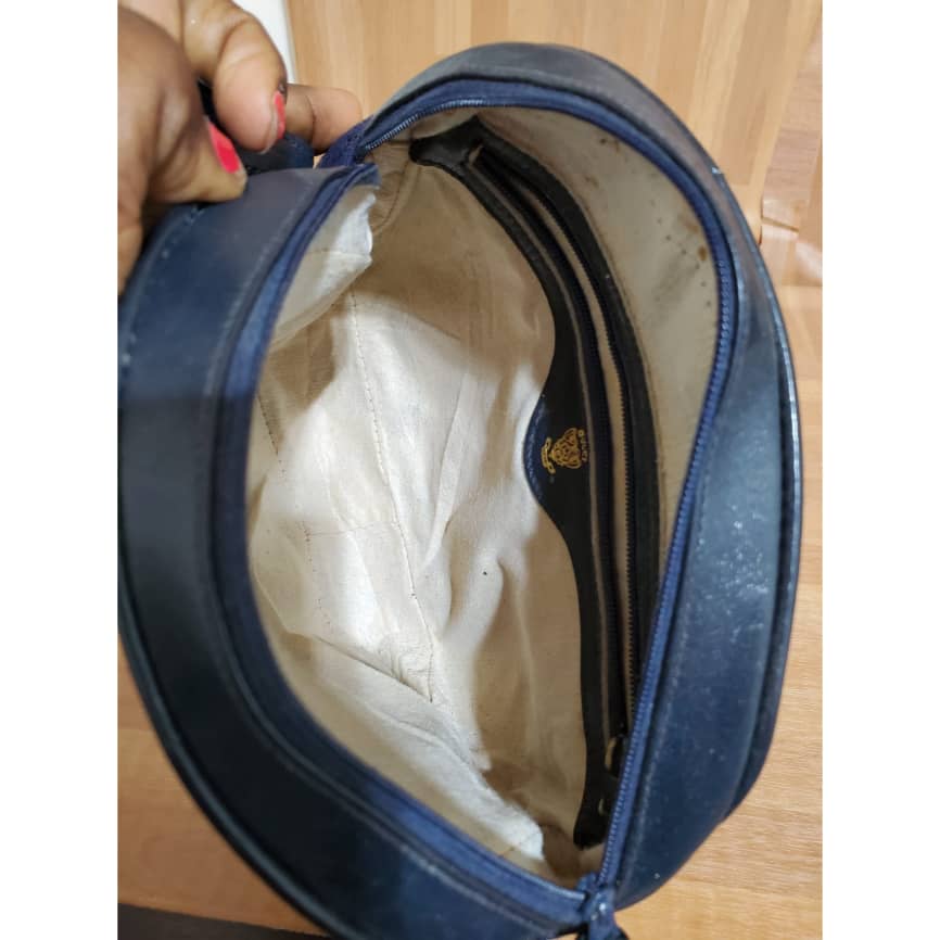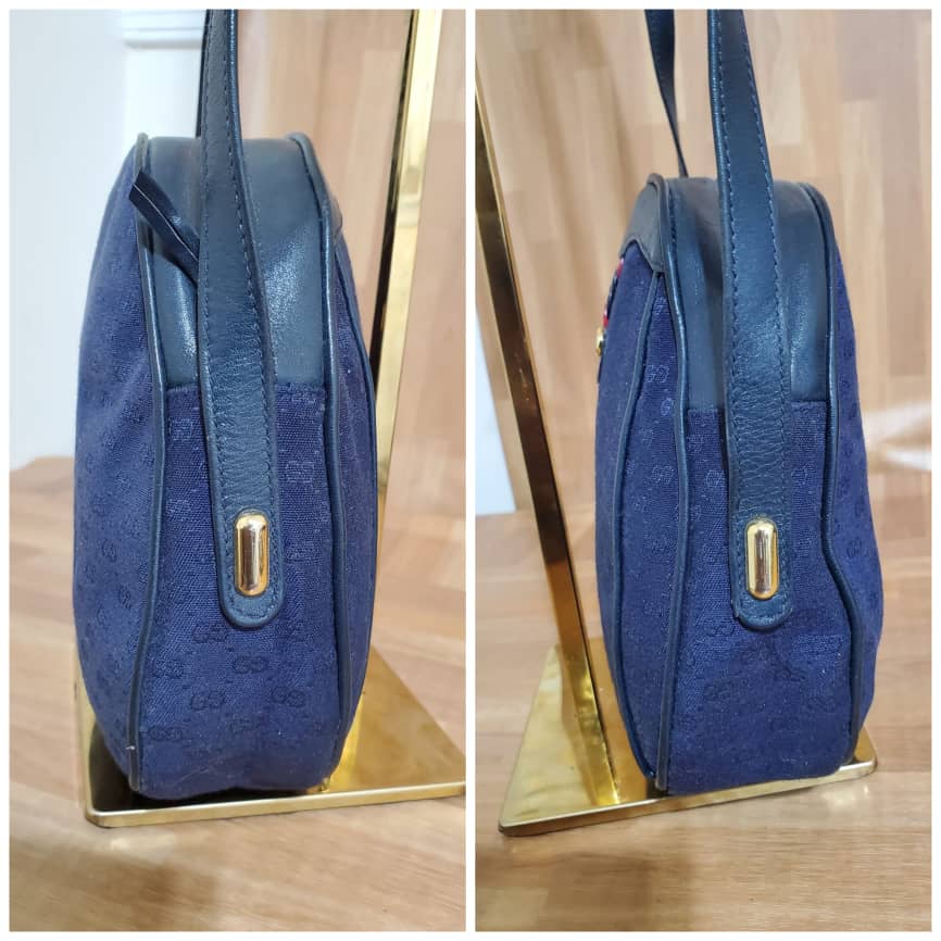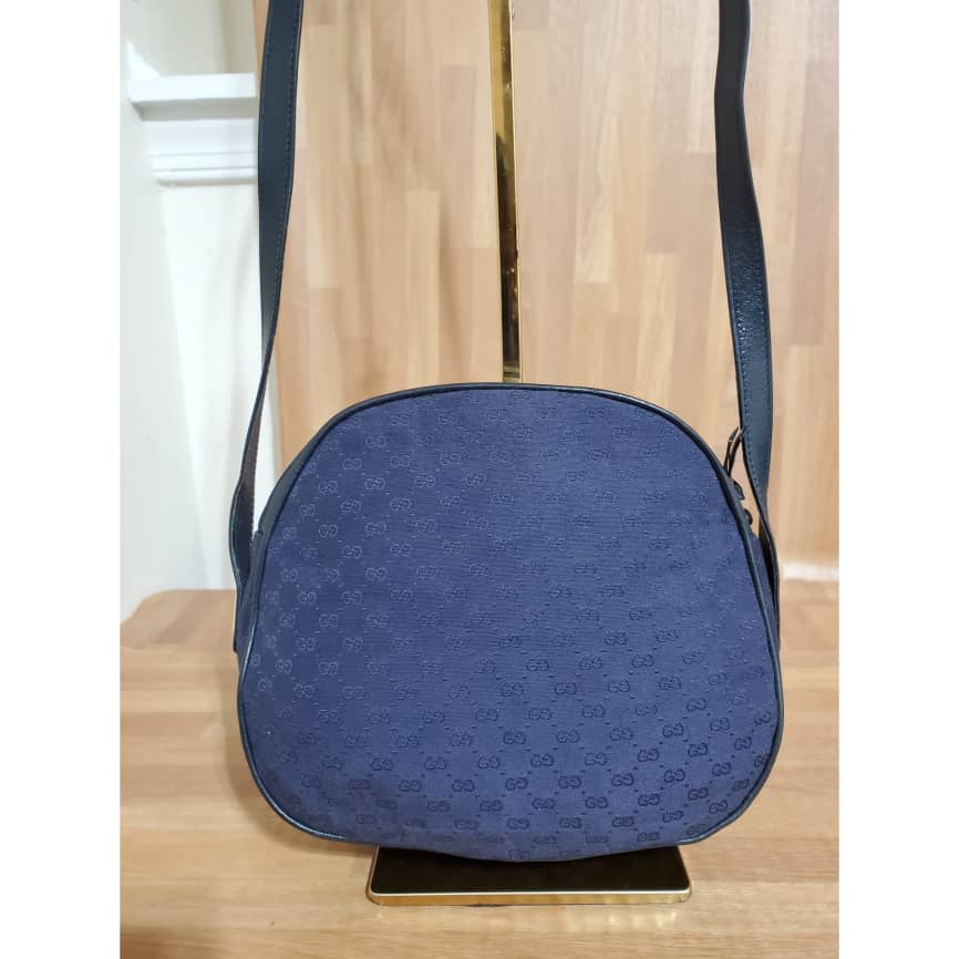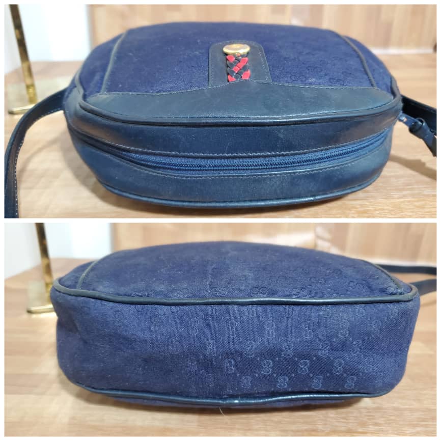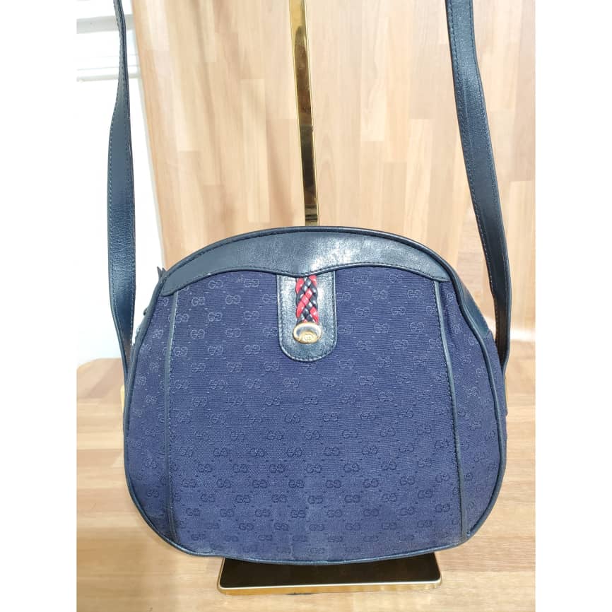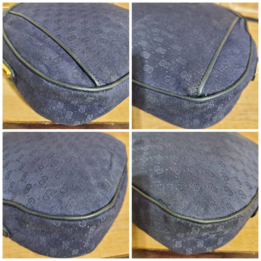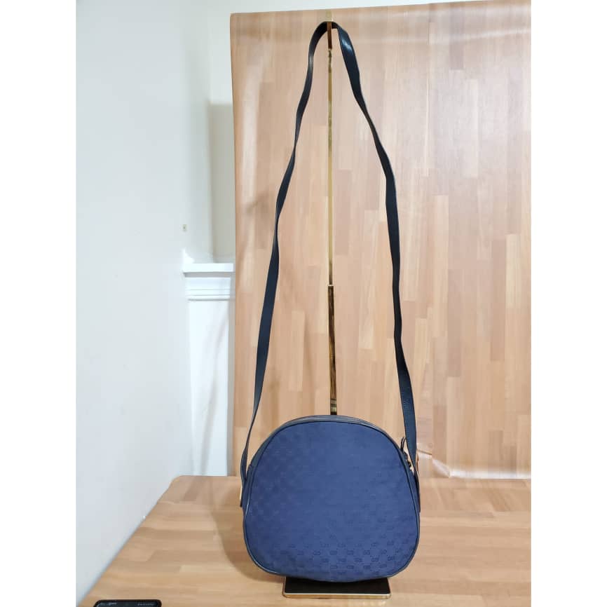 This authentic Gucci Vintage GG Navy Blue Crossbody Bag is in it’s pre-owned condition. The exterior canvas is clean and beautiful. Interior is clean in it’s vintage condition… it’s a beautiful Crossbody Bag.