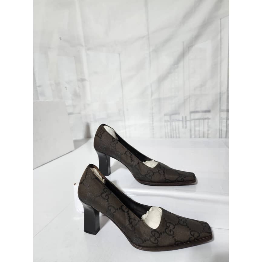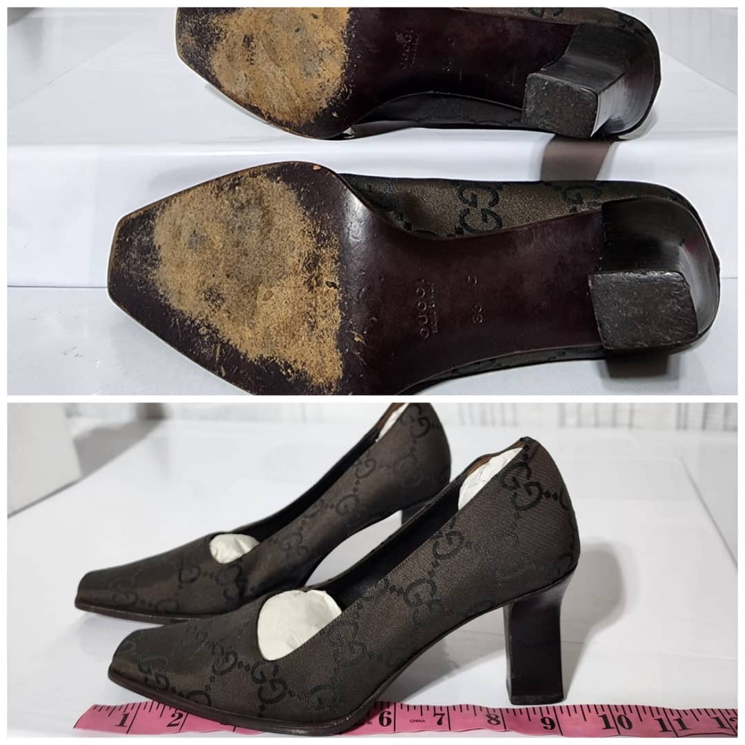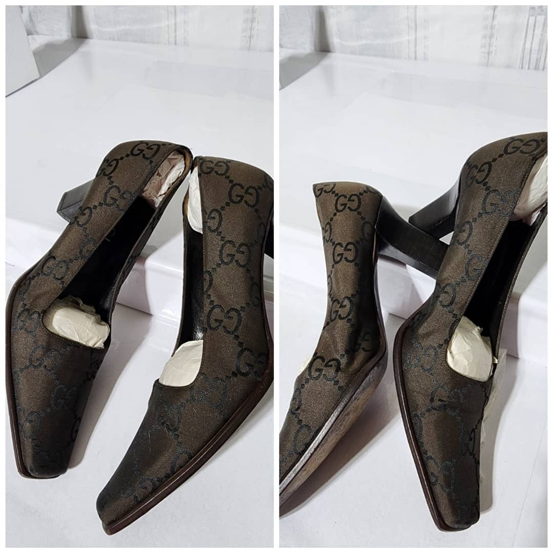 This authentic Gucci Vintage GG Square Toe Pumps Thick Heels Brown Size 36C is in it’s good pre-owned condition. The exterior is clean and beautiful. The interior is clean. The sole of the shoe shows scratches to it. The heels are comfortable.