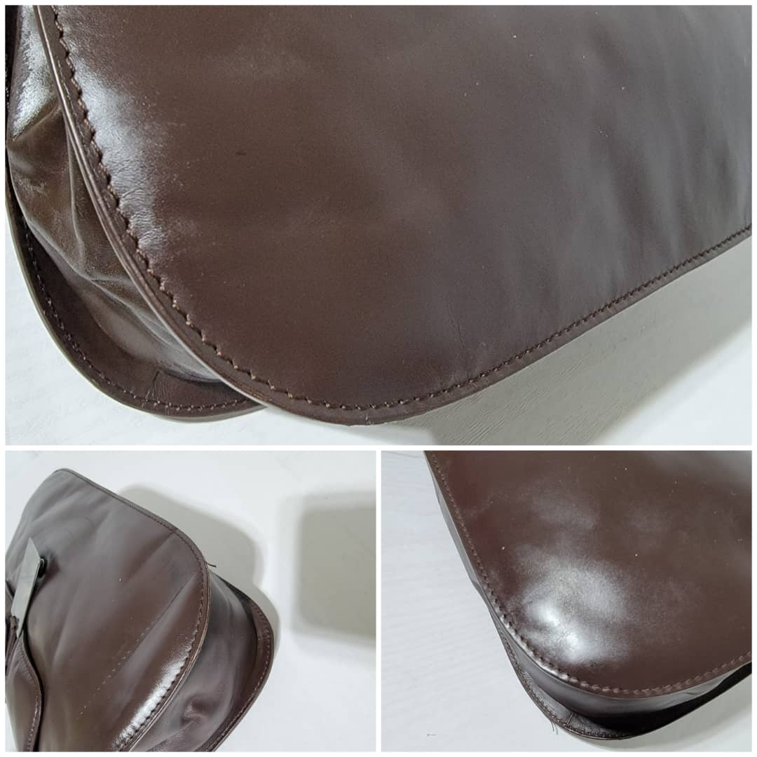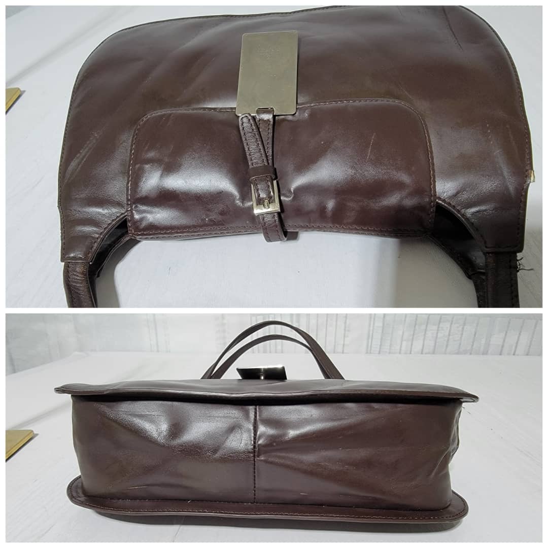 This authentic Gucci Vintage Hobo Shoulder Bag Deep Brown is in it’s good pre-owned condition. The exterior leather is clean , it has some scratch dent and some other shade of brown discoloration (Kindly look at pictures above). Interior is clean. Silver hardware. The date code tag is missing.