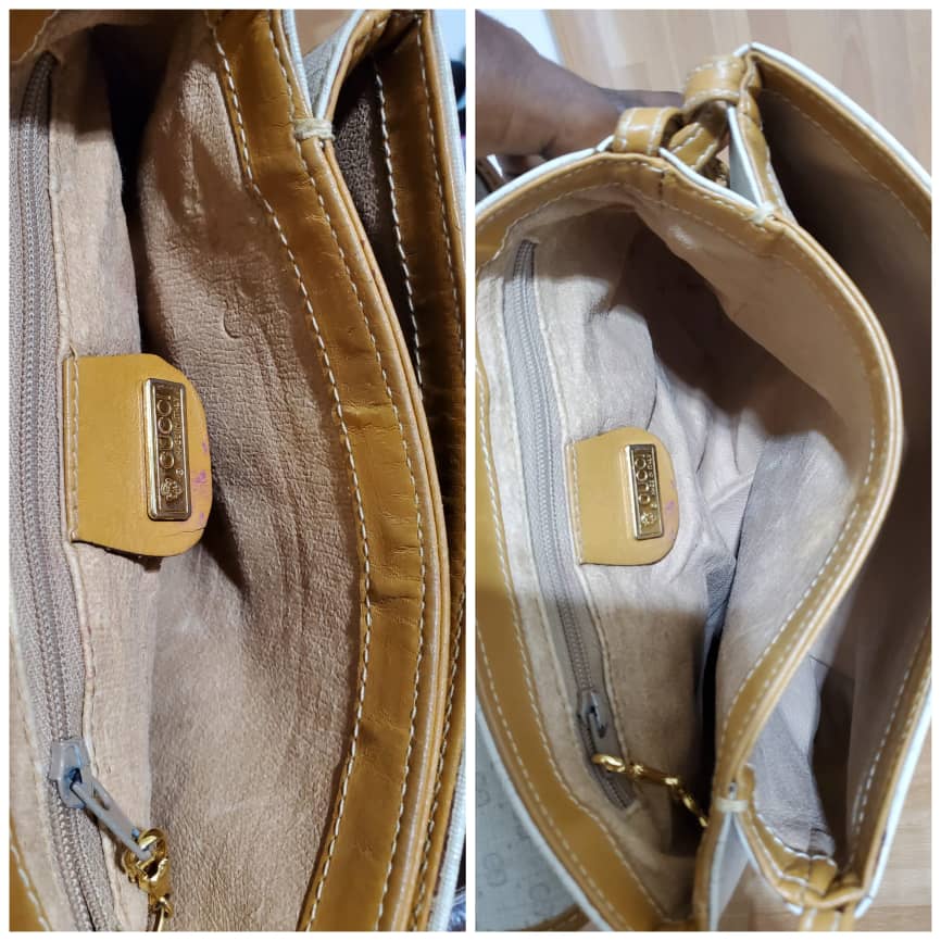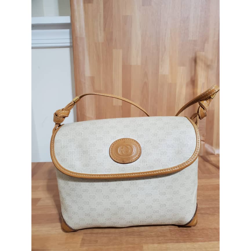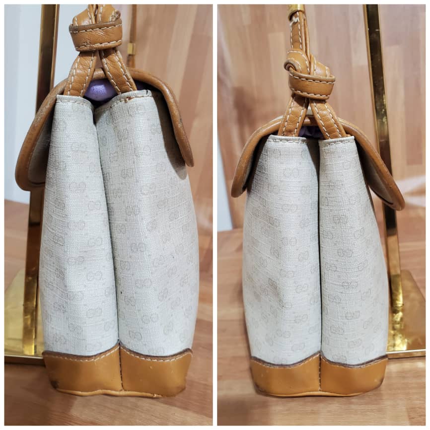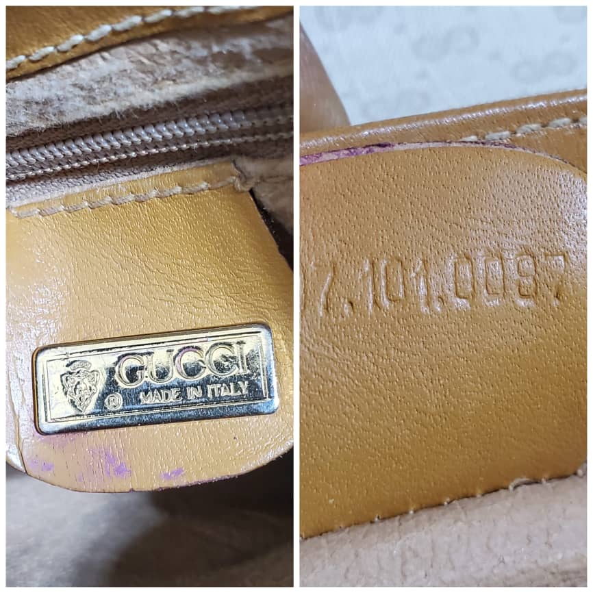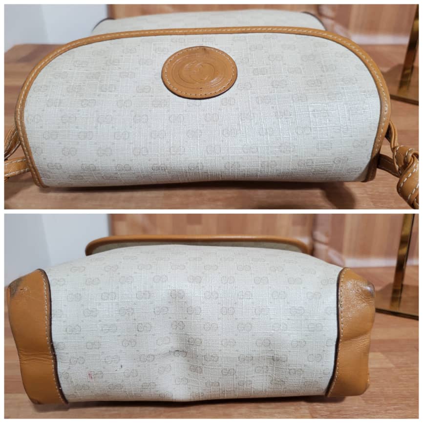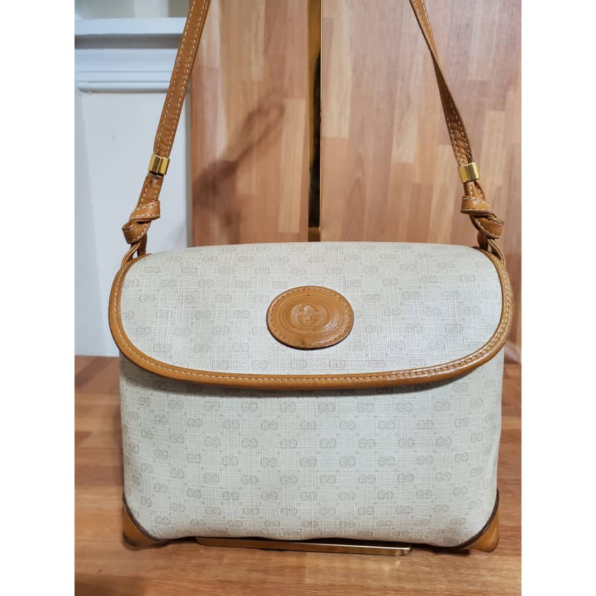 This authentic Gucci Vintage Micro GG Beige Crossbody is in its pre-owned good condition. Has sign of use. The exterior coated canvas is clean and beautiful. The interior is clean. Base edges show Little scratch