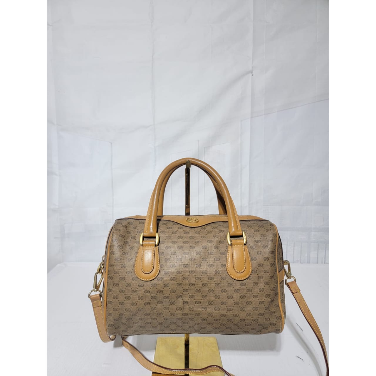 This authentic GUCCI Vintage Micro GG Canvas Boston Bag Beige/Brown is in it’s good pre-owned condition. The exterior is clean and beautiful. Interior is clean, it is in it’s vintage condition. The base edges shows some scratches to it, (Kindly look at pictures above). Also note that the long strap is a generic strap, it was included so that it can be worn as a crossbody bag or a long shoulder strap bag.
