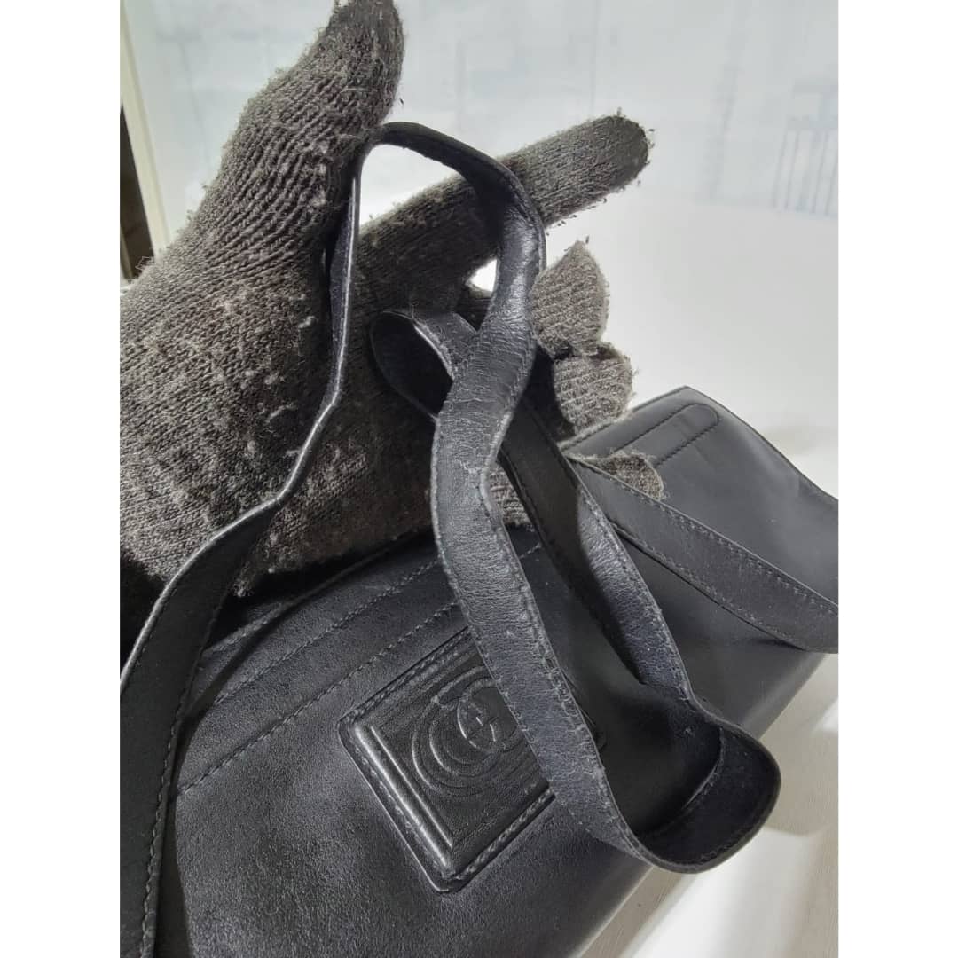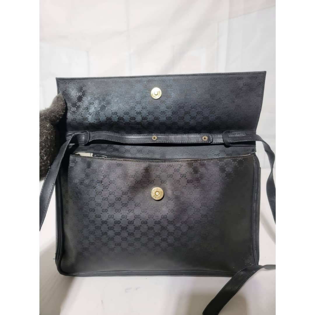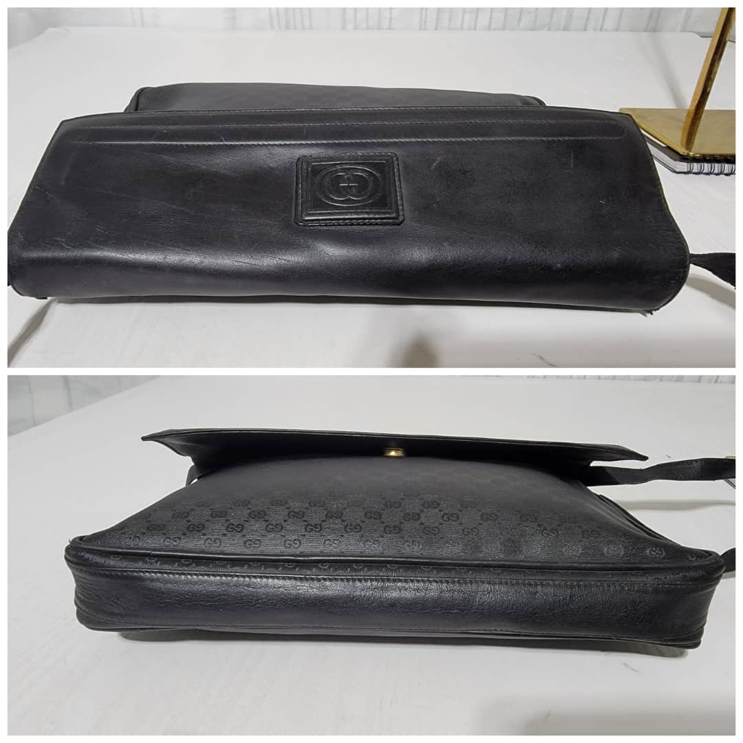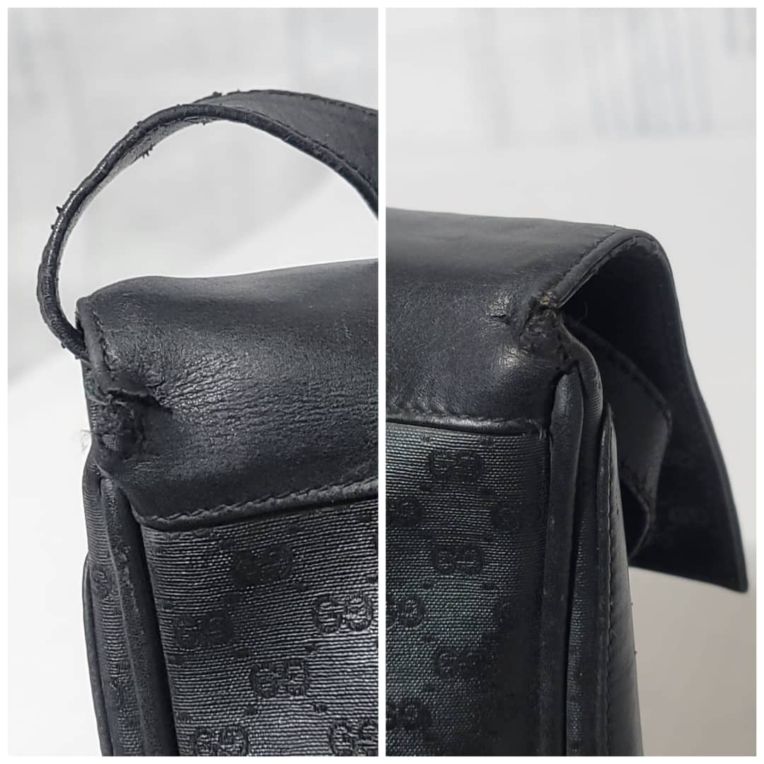 This authentic Gucci Vintage Micro Gg Monogram Crossbody Bag Black is in it’s good vintage condition. The exterior coated canvas and leather is clean and beautiful. The interior is in it’s vintage condition,the leather is pulled out from the cotton material (Kindly look at pictures above).
