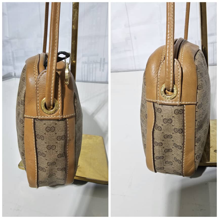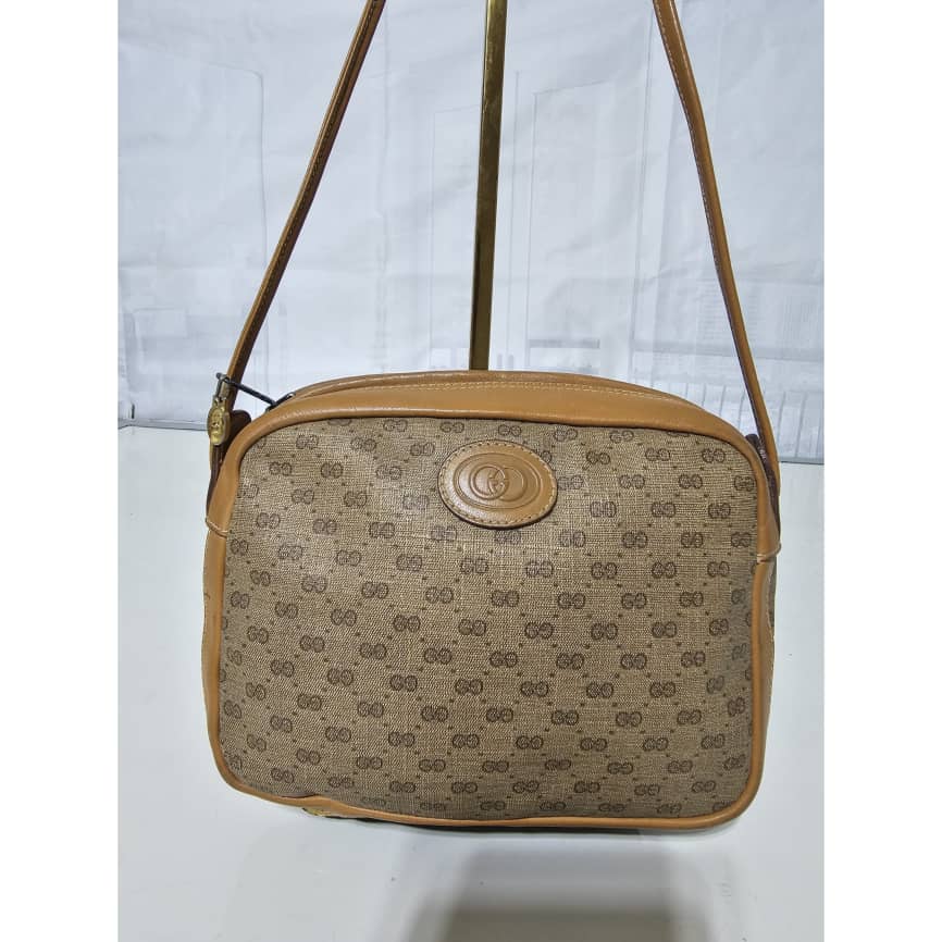 This authentic Gucci Vintage Monogram Interlocking GG Shoulder / Crossbody Bag is in it’s good pre-owned condition. The exterior leather is in clean with little scratches at the base edge. The interior is clean. Good Vintage condition