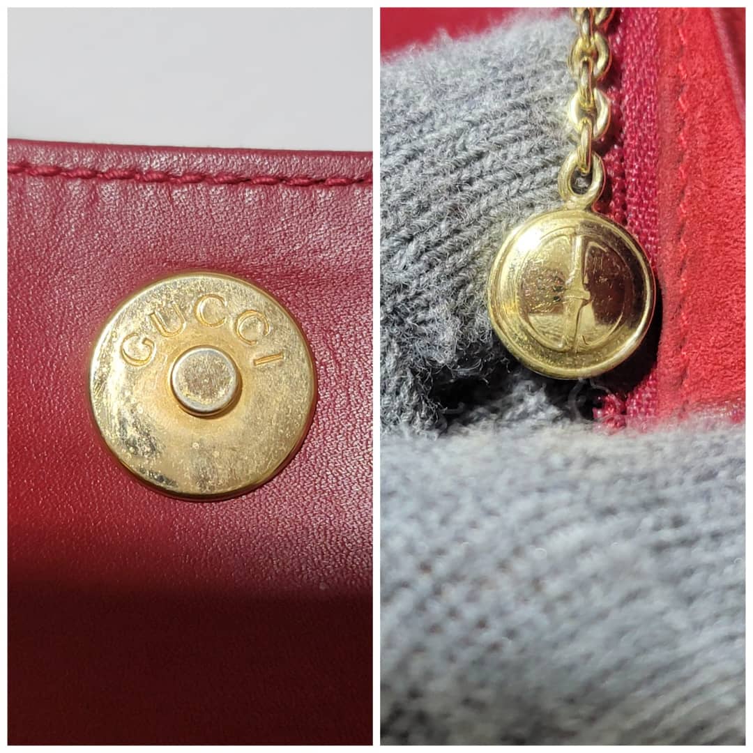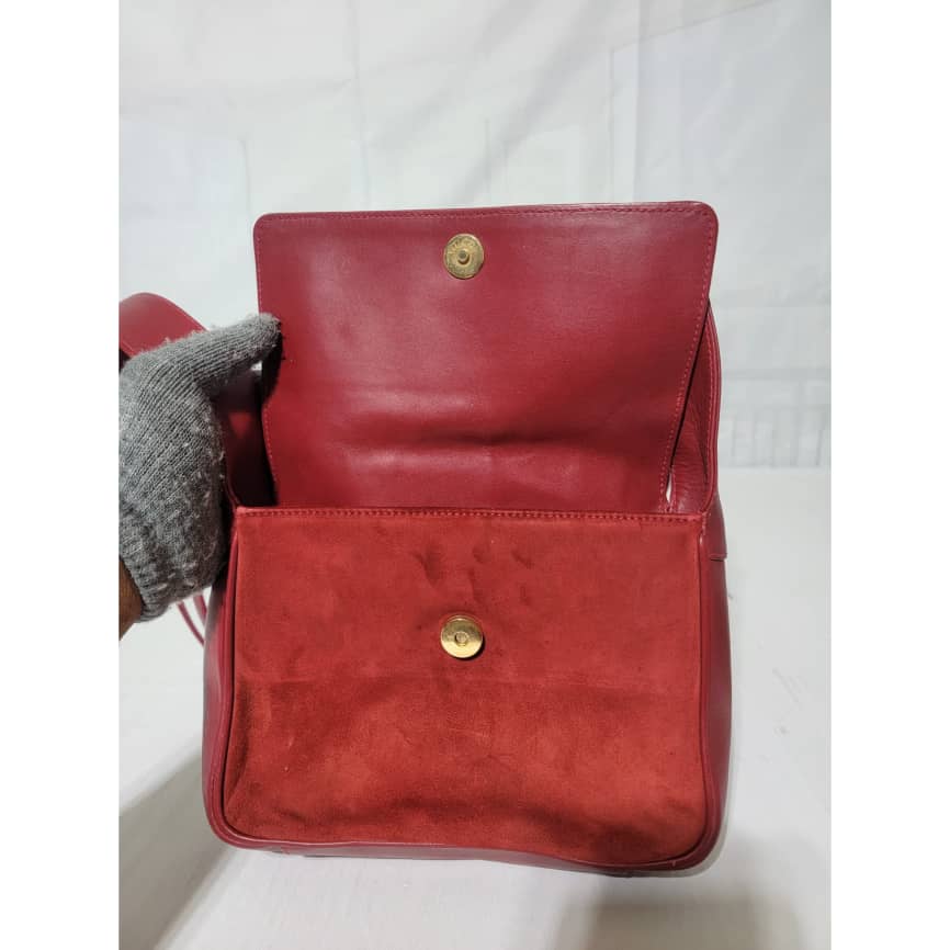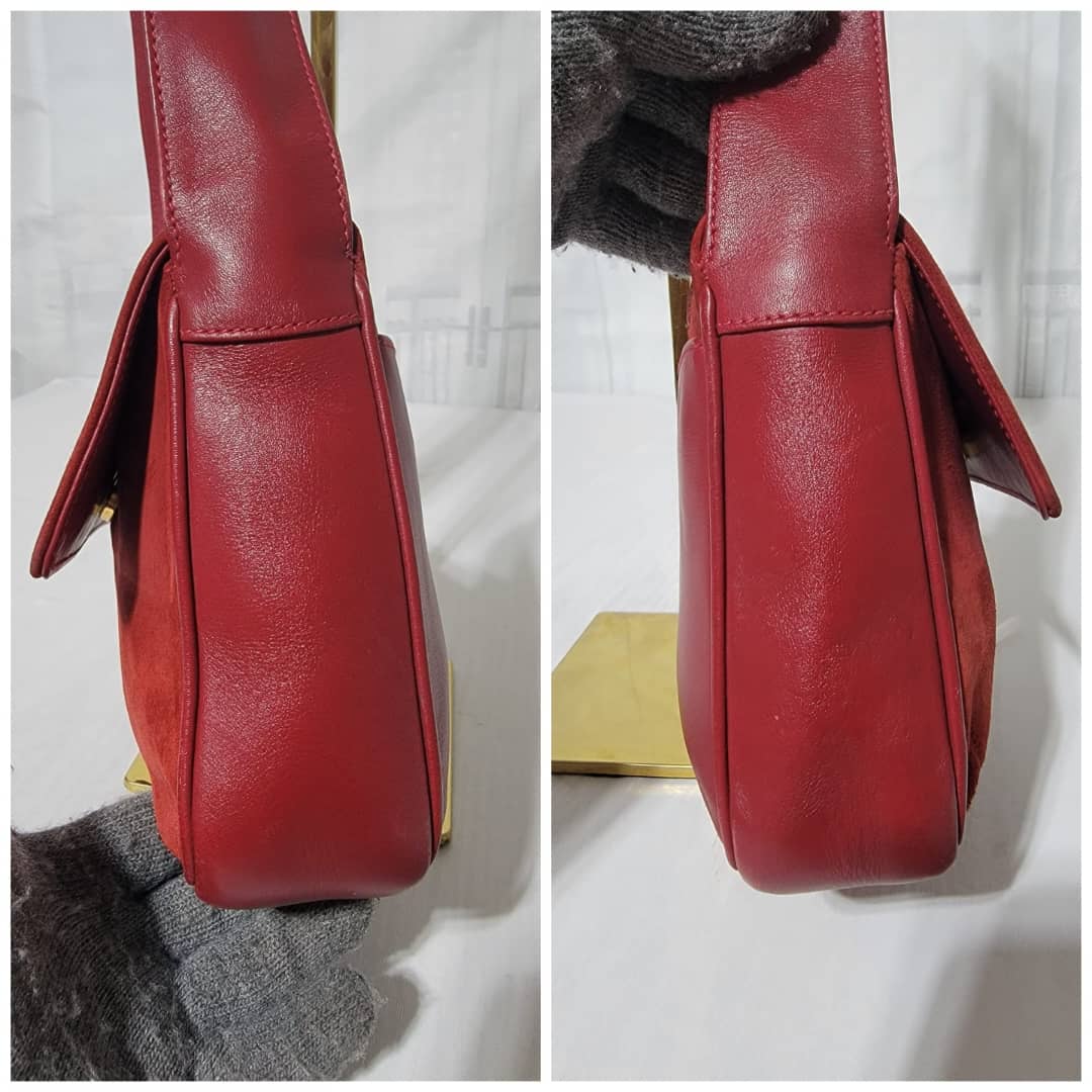 This authentic Gucci Suede Crossbody/Shoulder Bag Red is in it’s good pre-owned condition. The exterior is clean and beautiful. Interior is clean. Gold hardware. The back has a tiny little mark (Kindly look at pictures above).
