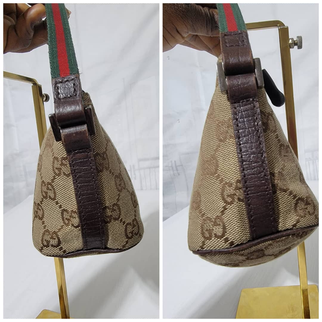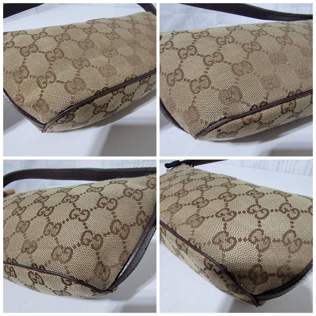 This authentic Gucci web handle shoulder handbag GG canvas Beige/Brown is in it’s good pre-owned condition. The exterior canvas is clean and beautiful. Interior is clean.