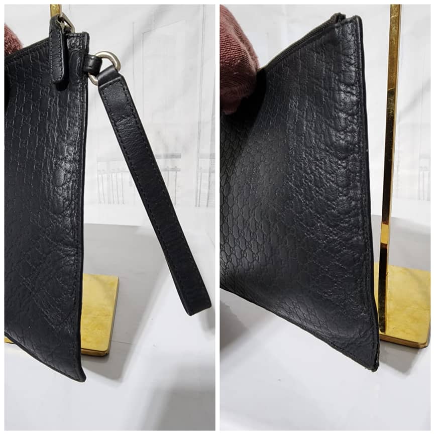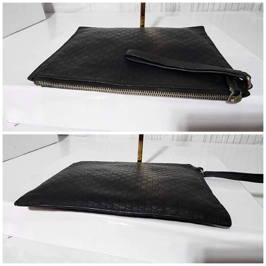This authentic Gucci Zip Microguccissima Leather Large Wristlet Black is in itβs good pre-owned condition. The exterior is clean however, it shows sign of use, rubbing and hairline scratches to the leather. Interior is clean. Hardware shows sign of rubbing. Kindly look at pictures above for all details.