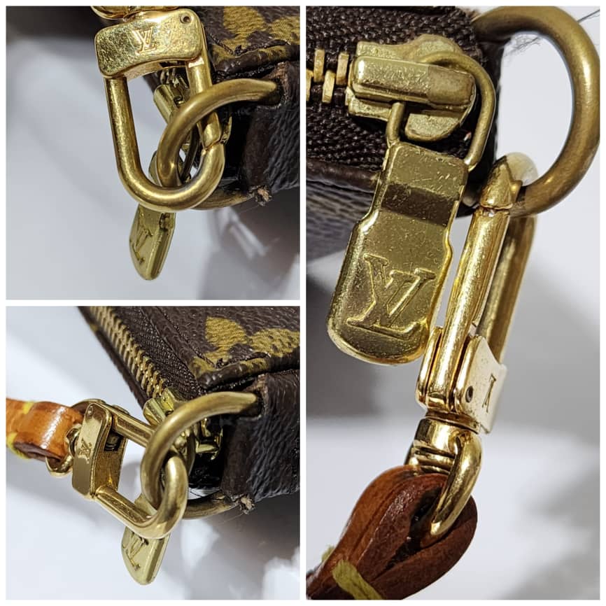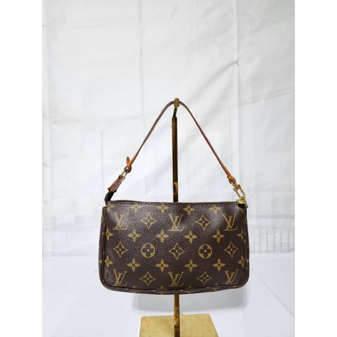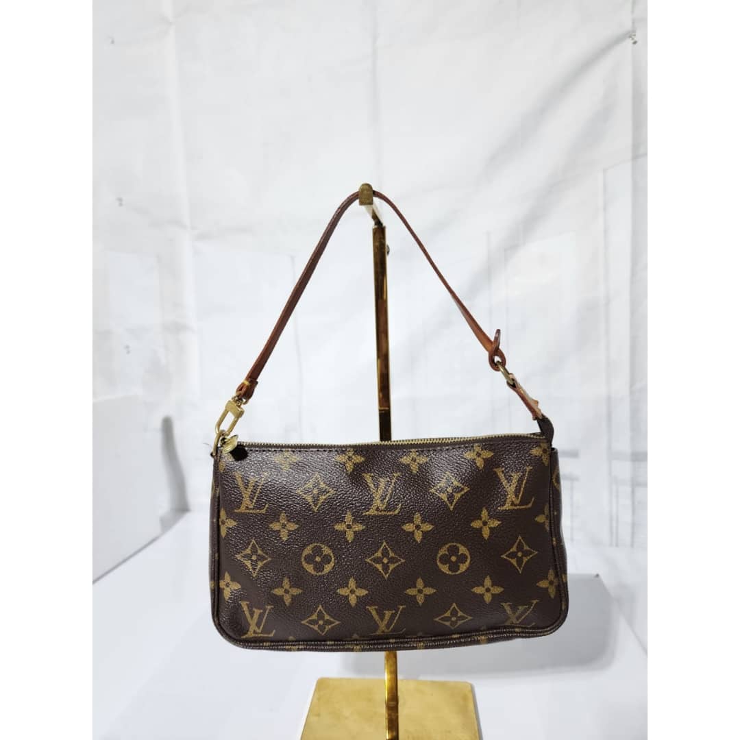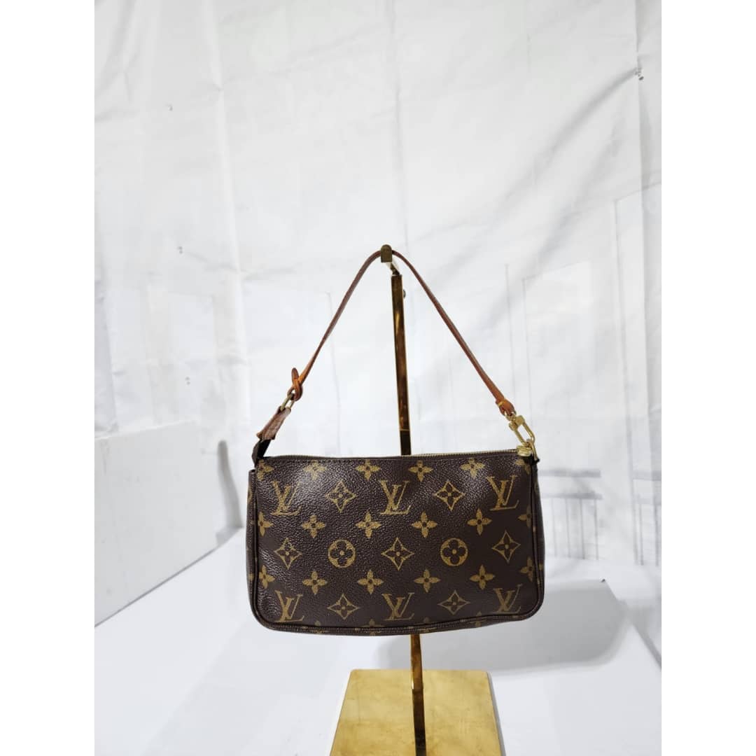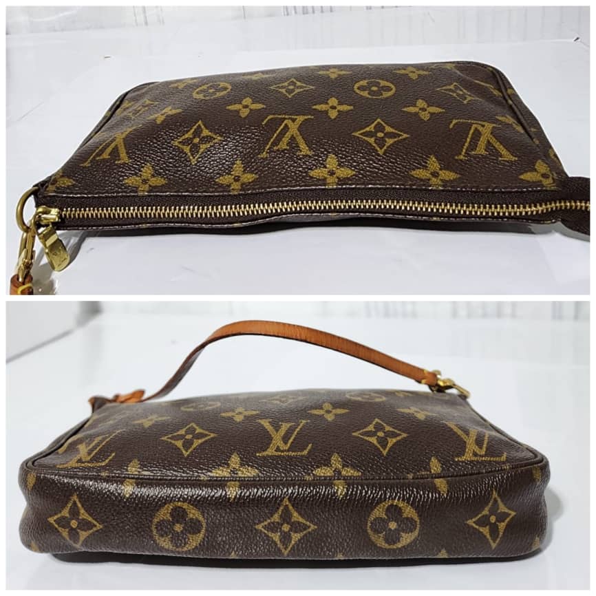 This authentic LOUIS VUITTON Accessorie Monogram Pochette Brown is in itβs good pre-owned condition. The exterior is clean and beautiful. Interior is clean. The handle shows honey patina wear. Kindly look at pictures above for all details.
