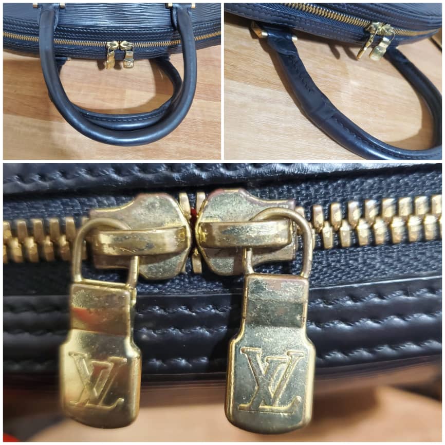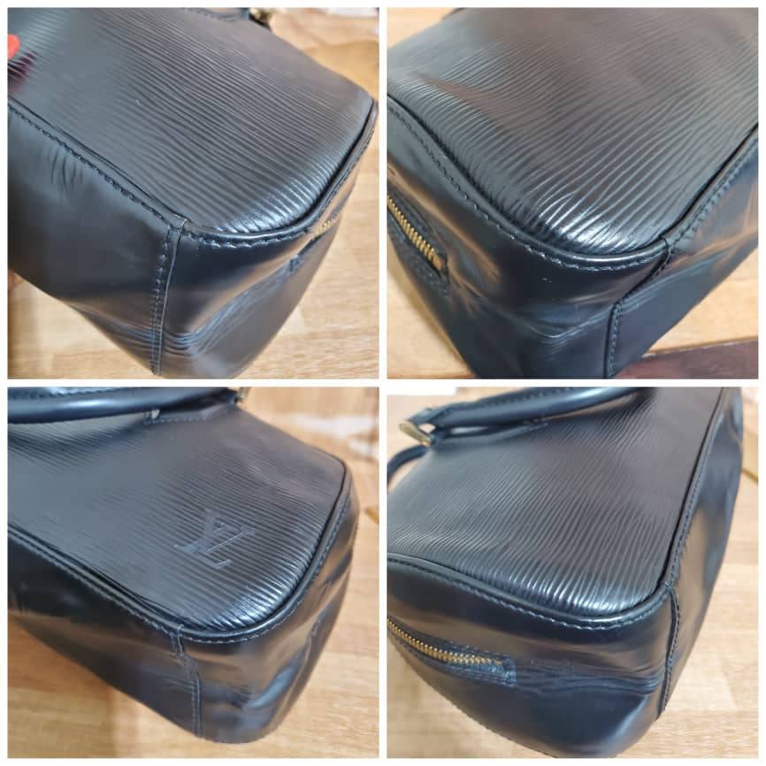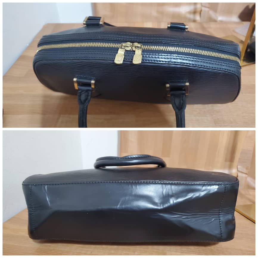 This authentic Louis Vuitton Black Epi Leather Jasmin Bag is in it’s pre-owned good condition.has sign of use . The exterior leather is clean and beautiful. Interior is clean. Little scratches on the handle. It’s a beautiful bag.