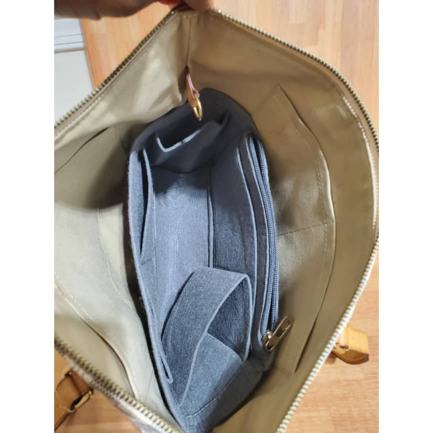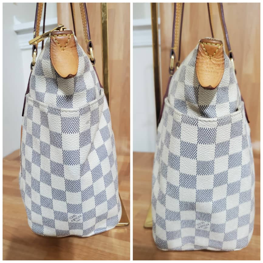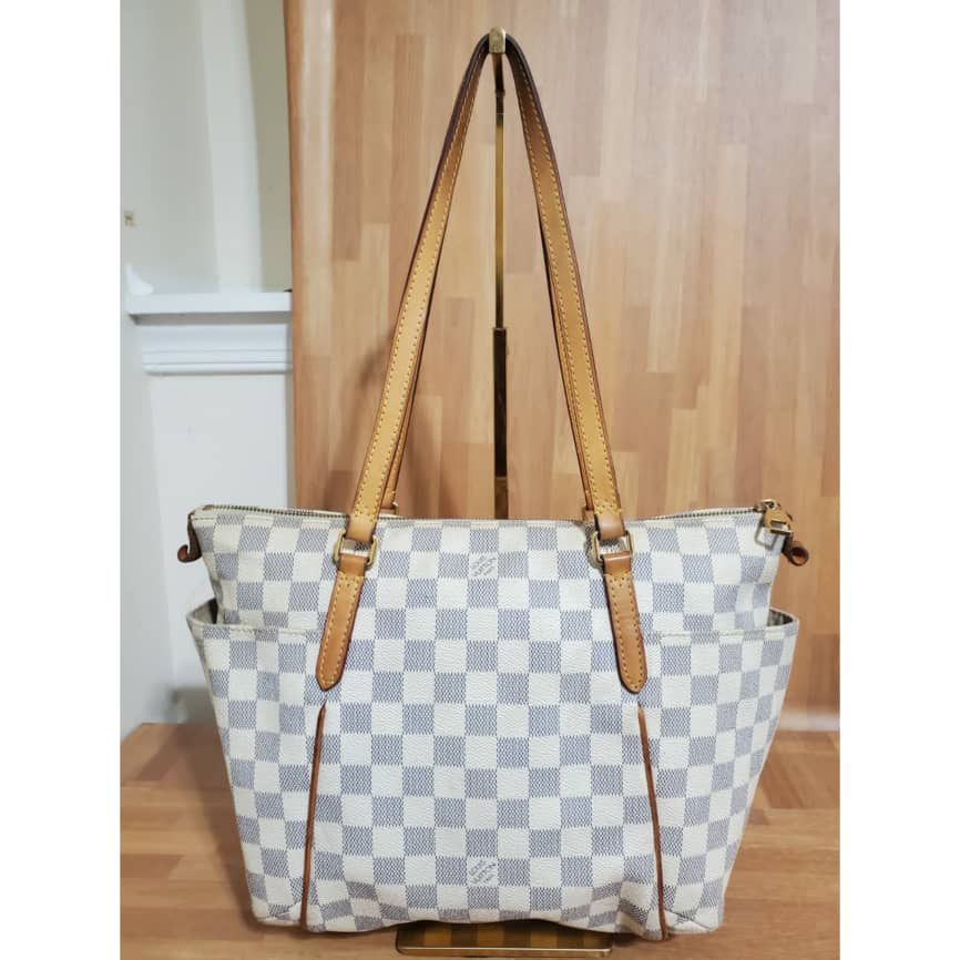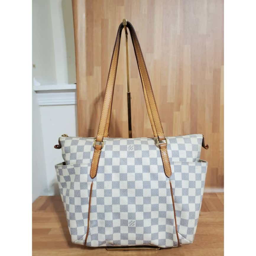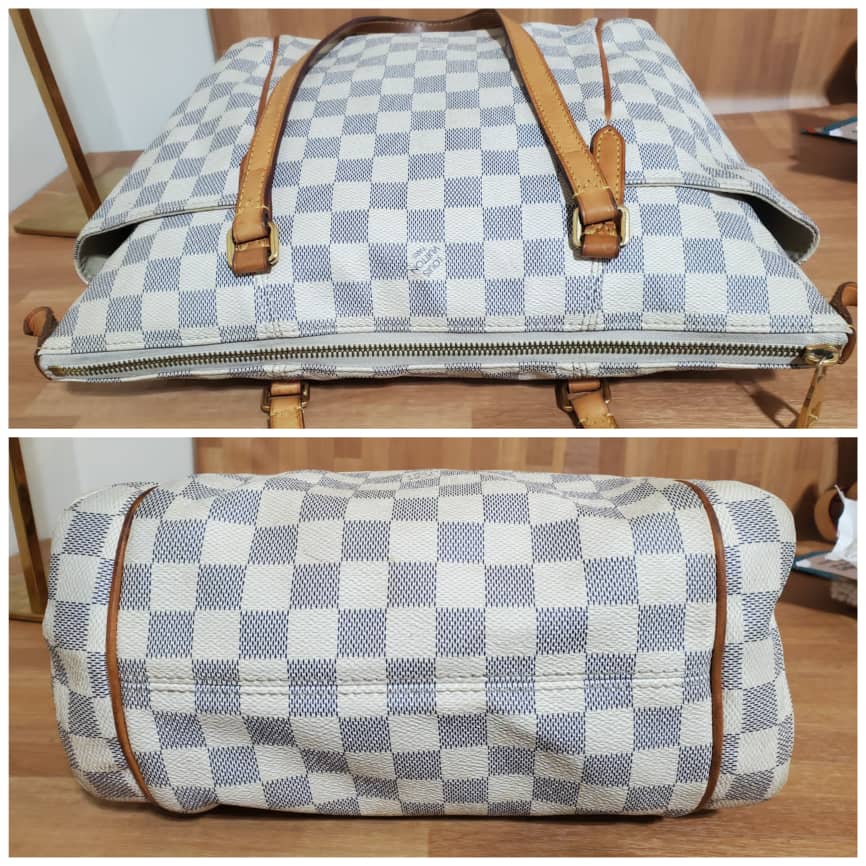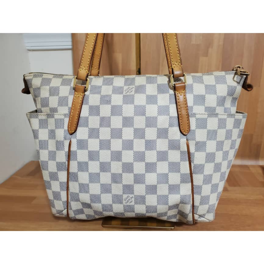 This authentic Louis Vuitton Damier Azur Totally PM is in it’s good pre-owned condition. Has sign of use. The exterior coated canvas is clean and beautiful. Interior is clean but shows some pen mark stain. Kindly refer to pictures above. I did include a free bag organizer to take care of that.