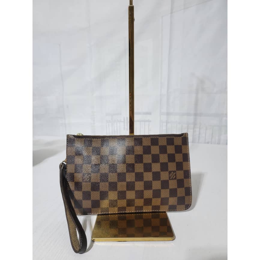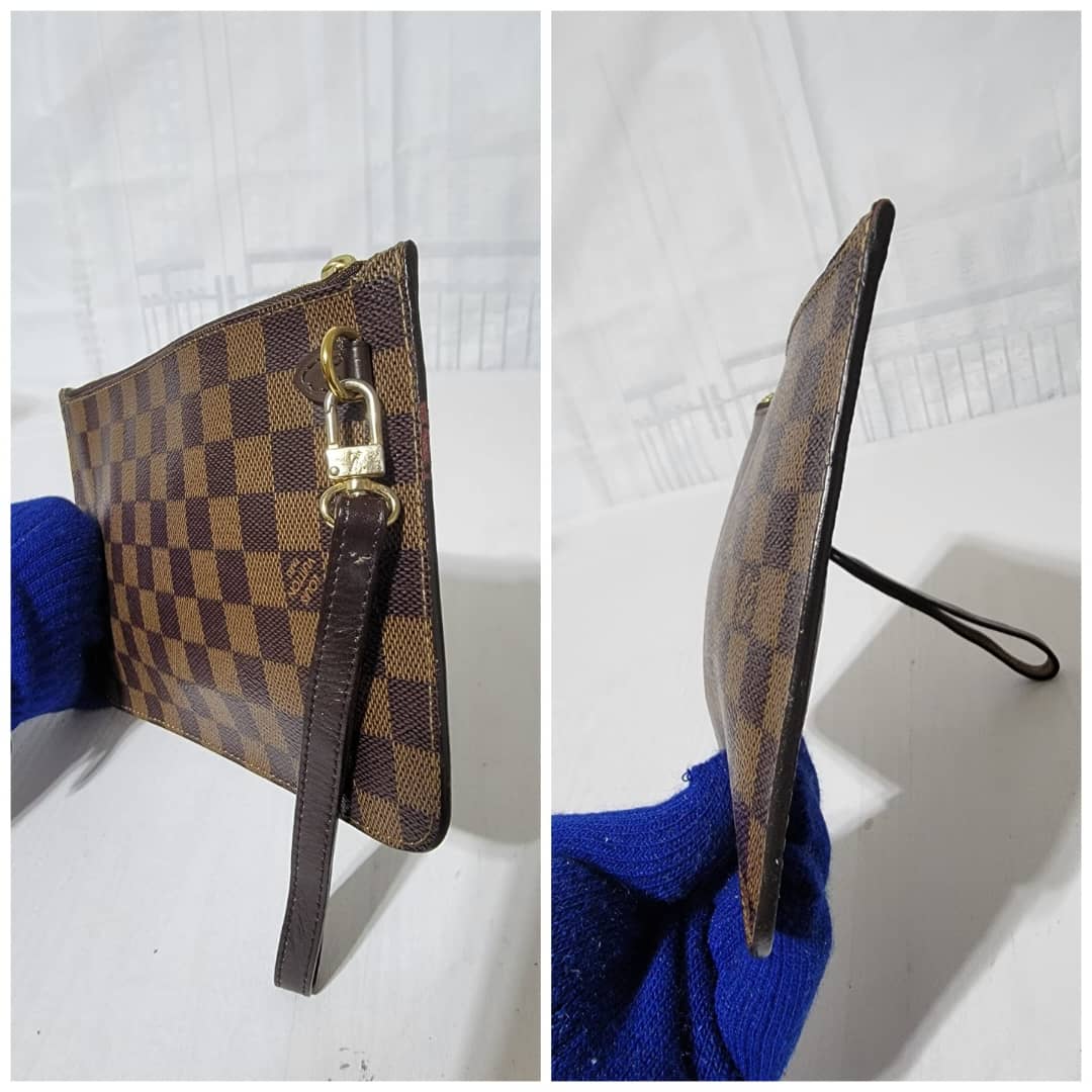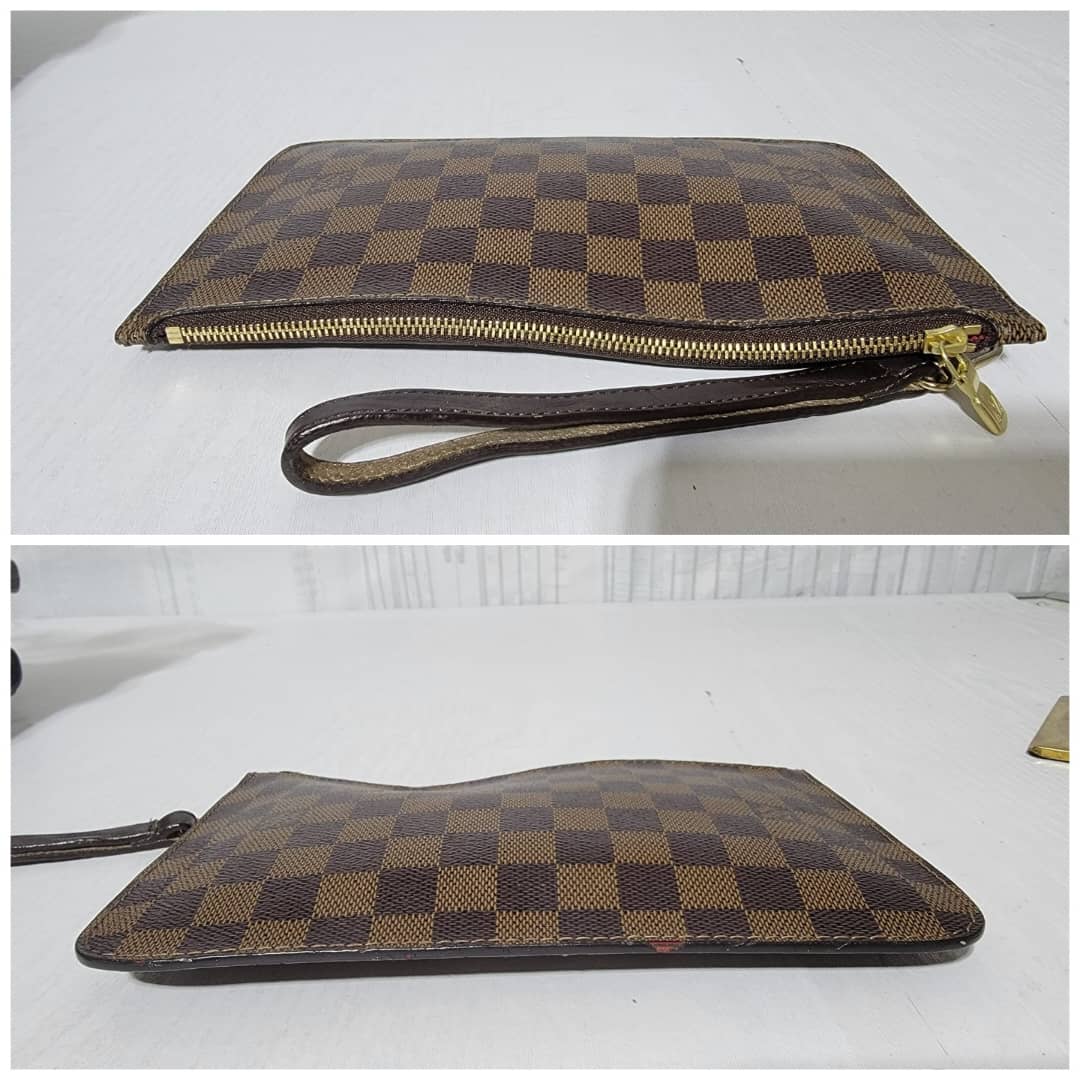 This authentic LOUIS VUITTON Damier Ebene Neverfull Pochette Brown is in it’s good pre-owned condition. The exterior is clean and beautiful. Interior is clean and beautiful. Great condition.