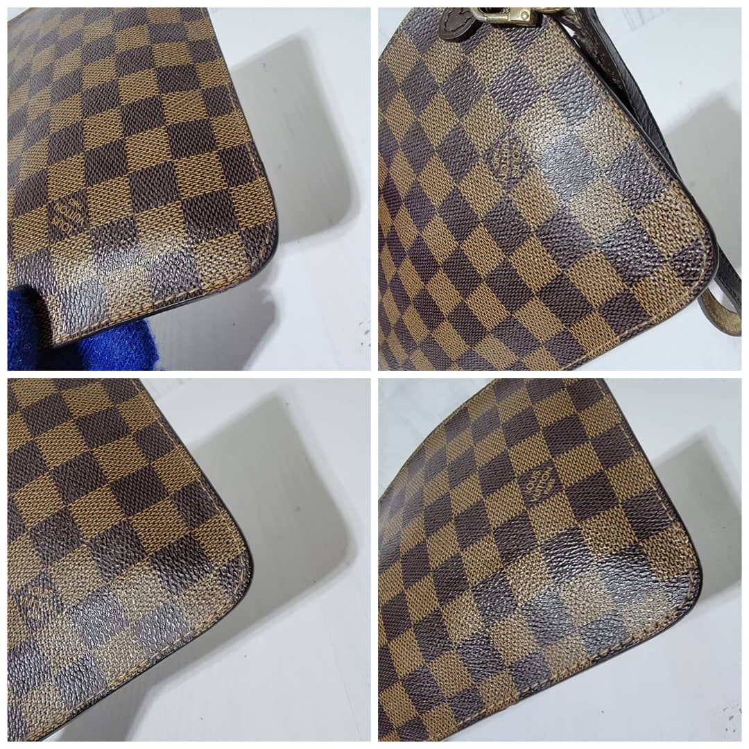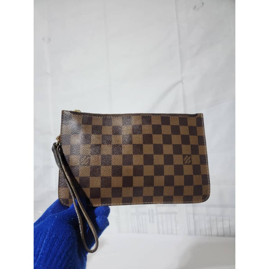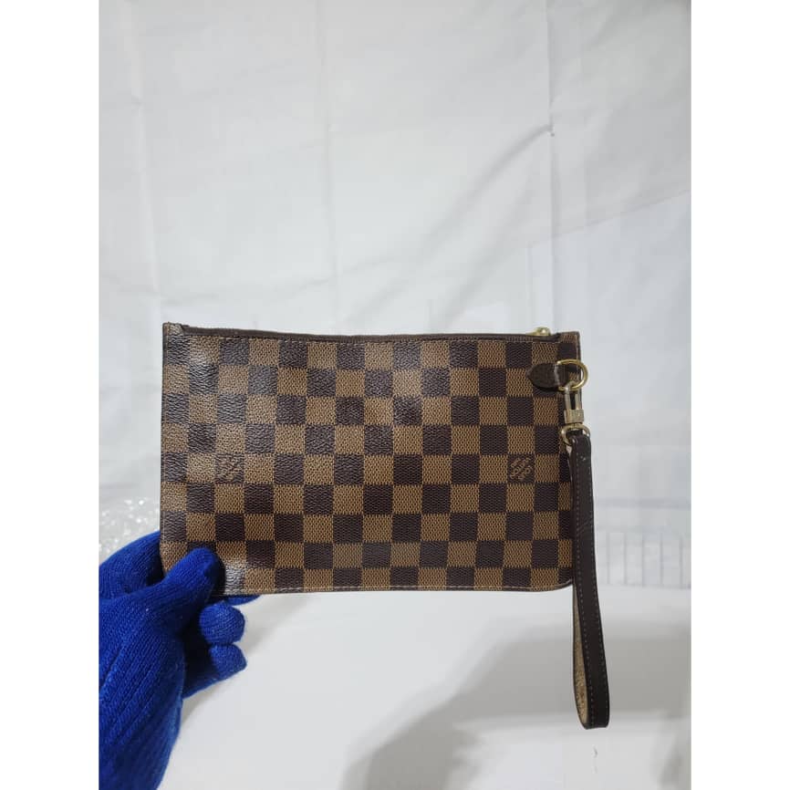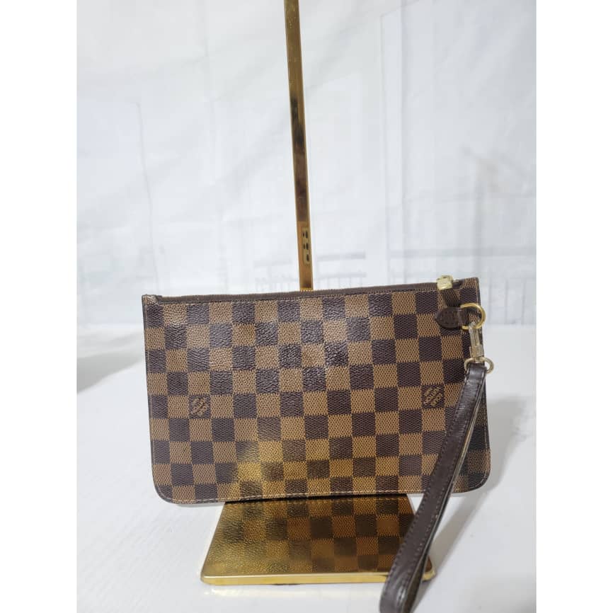 This authentic LOUIS VUITTON Damier Ebene Neverfull Pochette Brown is in it’s good pre-owned condition. The exterior is clean and beautiful. Interior is clean and beautiful. Great condition.