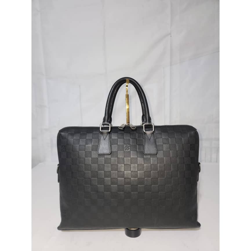 Damier Infini Porte-Documents Jour Cosmos black bag is in it’s good pre-owned condition the exterior is clean and beautiful the interior is clean and clean. Great condition. No long strap . I will include an unbranded matching Strap