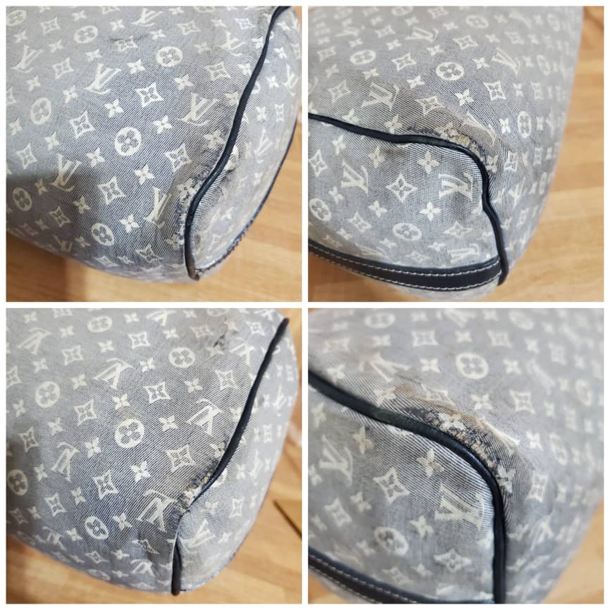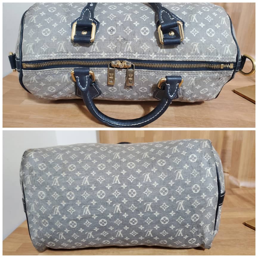 Encre Monogram Idylle Speedy Bandouliere 30 Bag is in it’s pre-owned condition.has sign of use. The exterior canvas shows sign sign of wear on the sides kindly refer to pictures above. And scratches on the base edges. Interior is clean. The interior lining shows some discoloration. Long strap Handle is missing. I can throw in a chain strap or black Long strap.