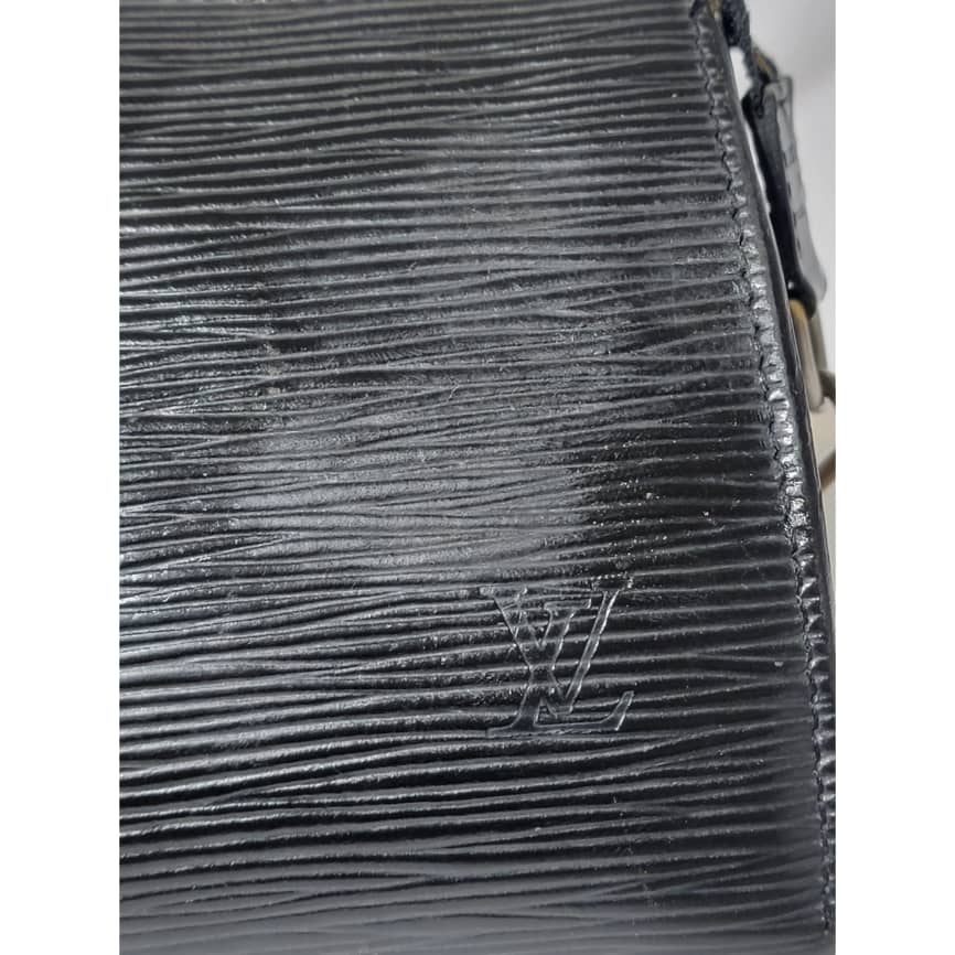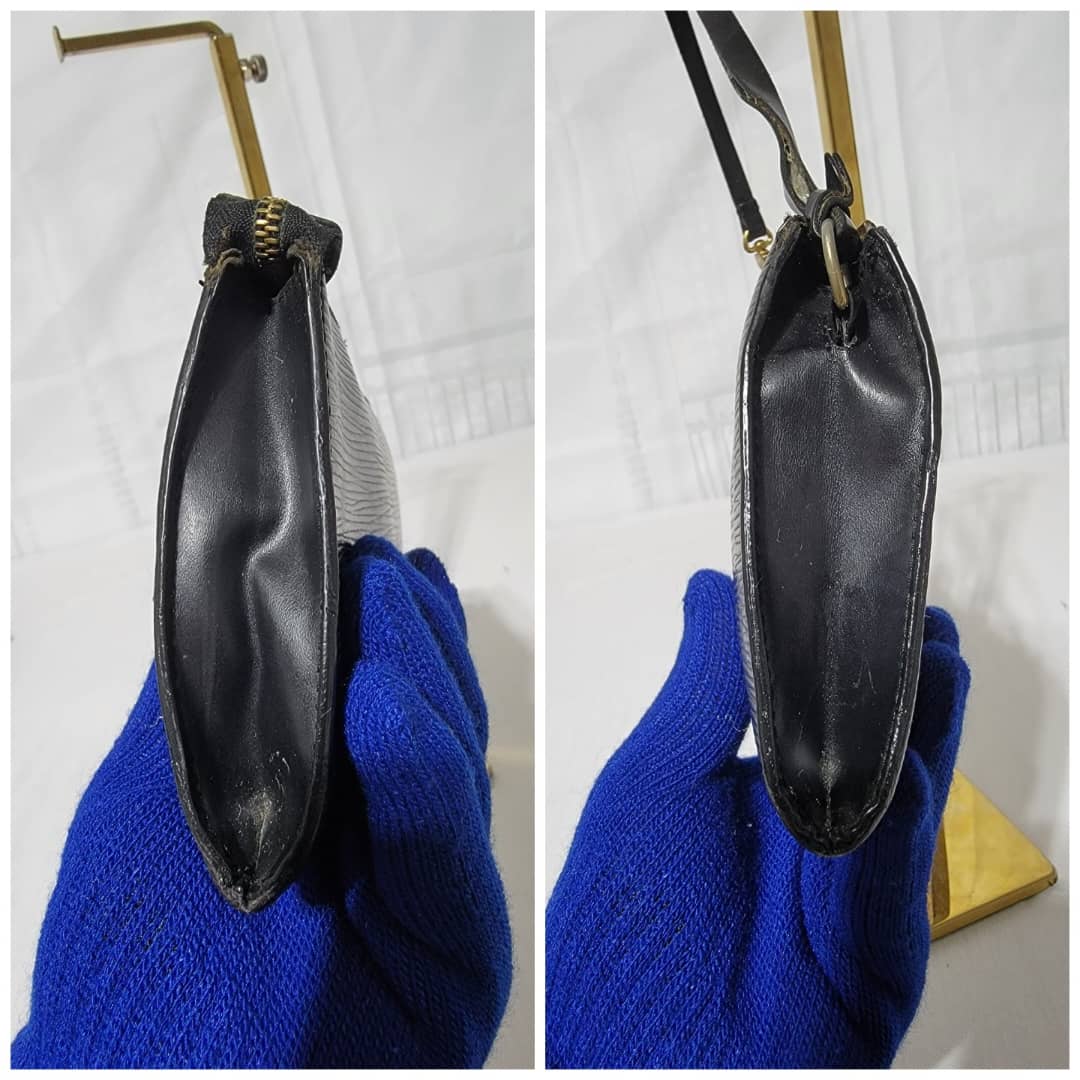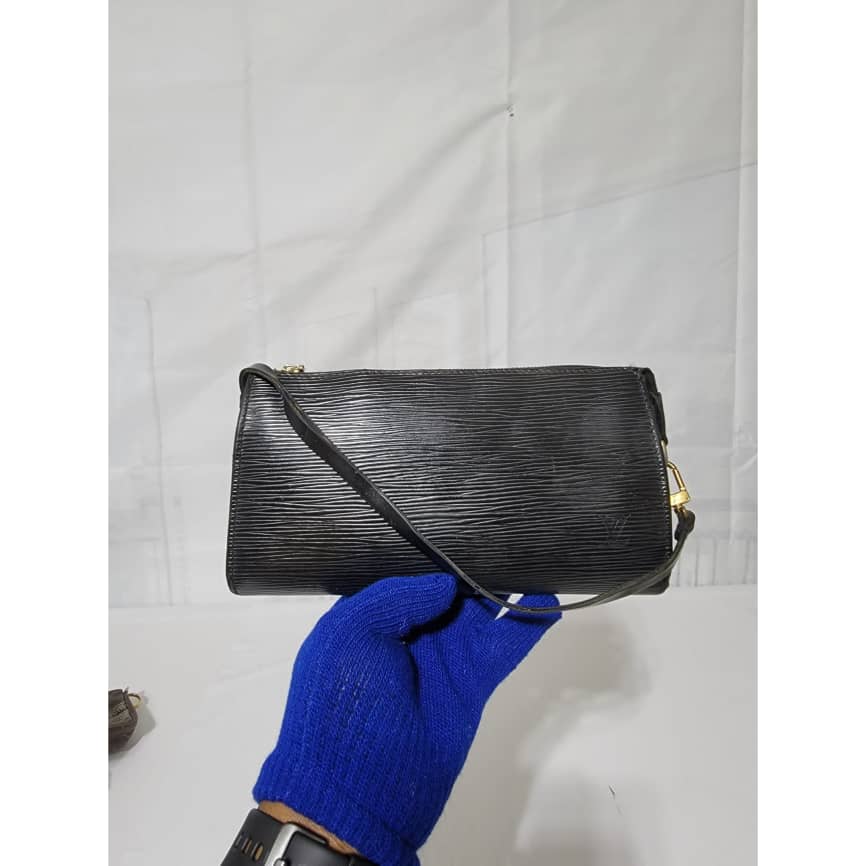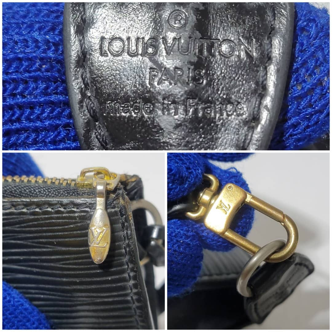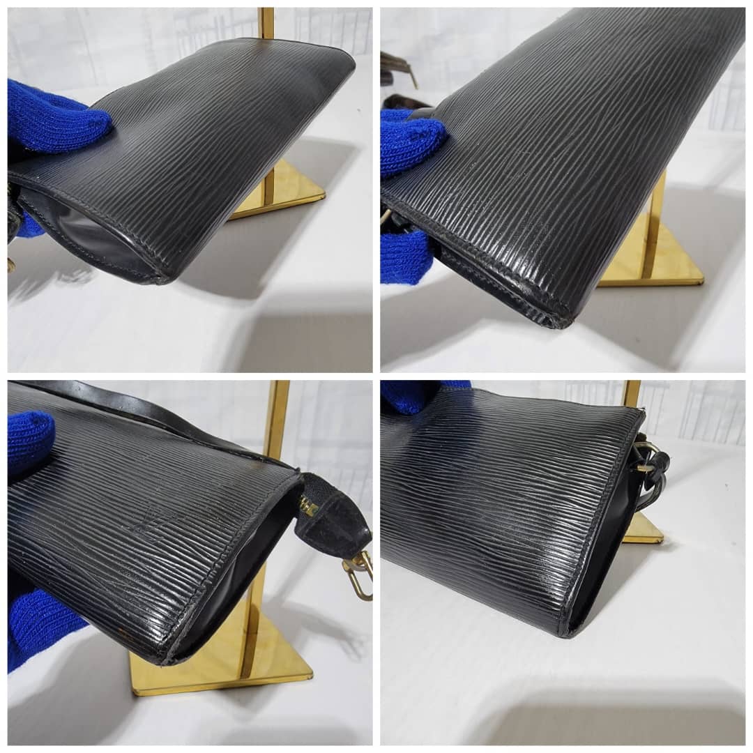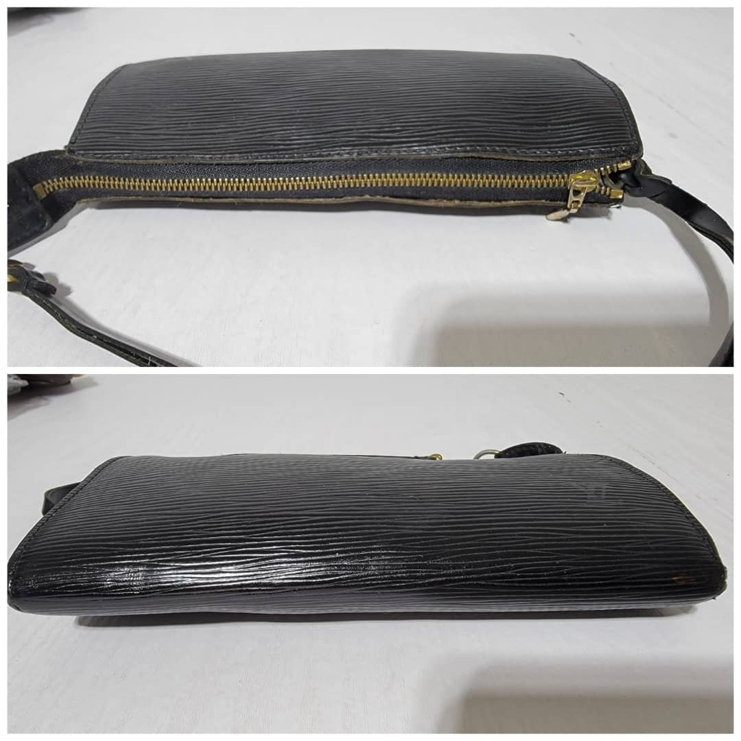 This authentic LOUIS VUITTON Epi Pochette Accessoires 24 Black is in it’s good pre-owned condition. The exterior is clean and beautiful. Interior is clean however, the suede lining is having a hairy pull sign of wear (Kindly look at pictures above). Gold hardware, hardware shows scratches.