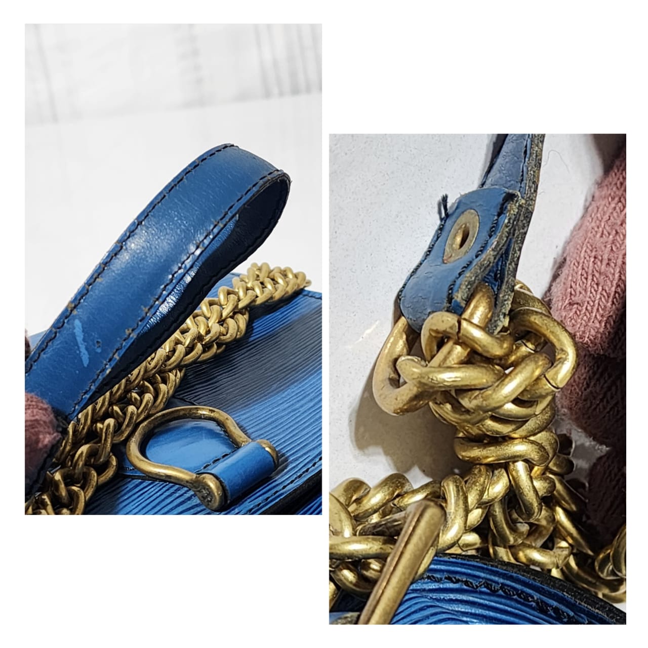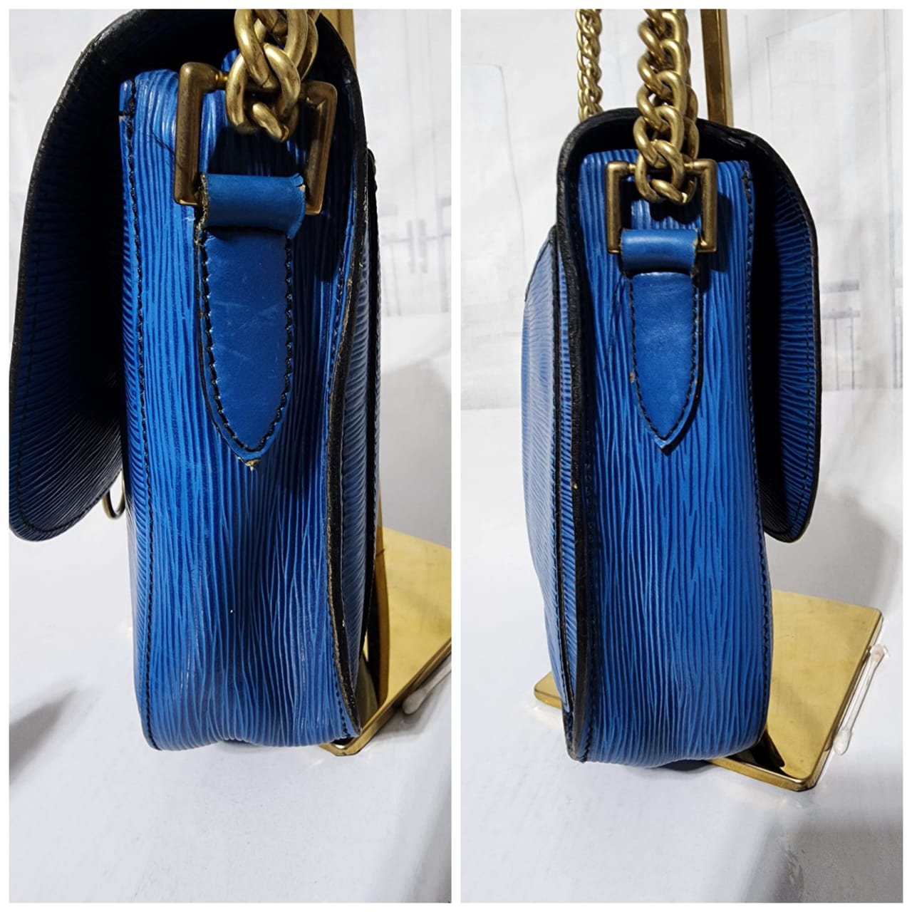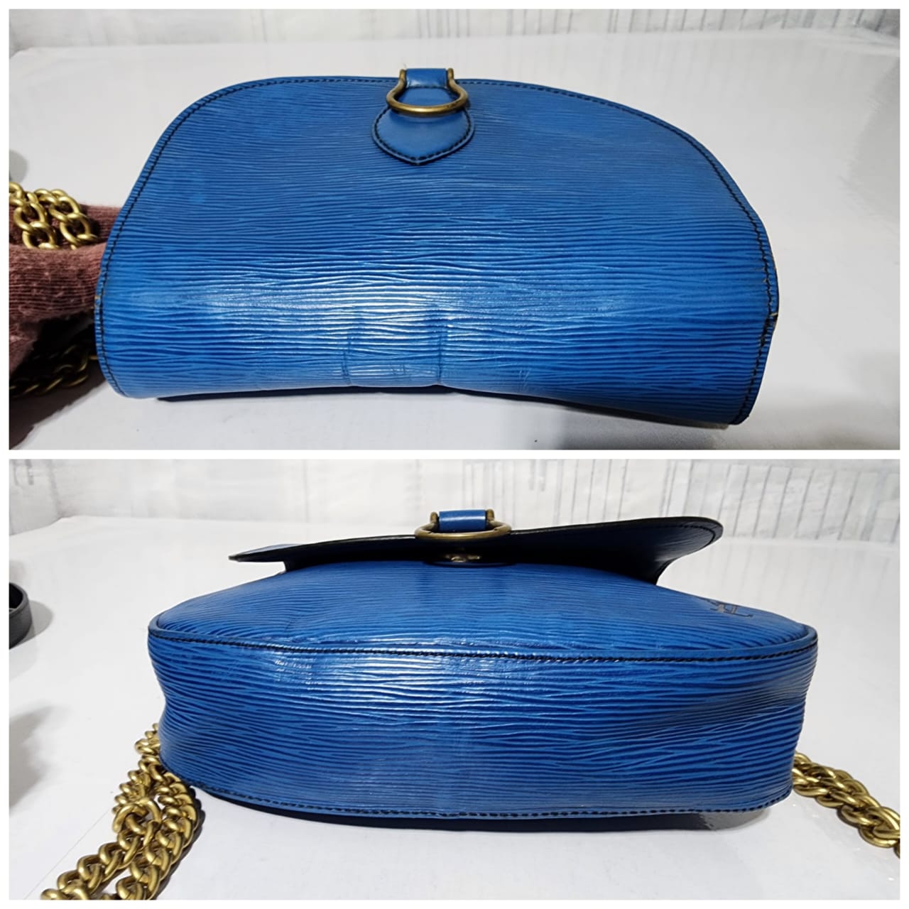 This authentic LOUIS VUITTON Epi Saint Cloud GM Shoulder Bag Blue is in it’s pre-owned vintage condition. The exterior is clean. Interior is clean. Little scratches by the side trim of the bag. The chain is in good condition. The leather has some sign of scratches to it (Kindly look at pictures above).