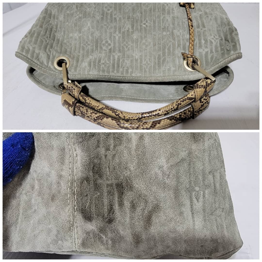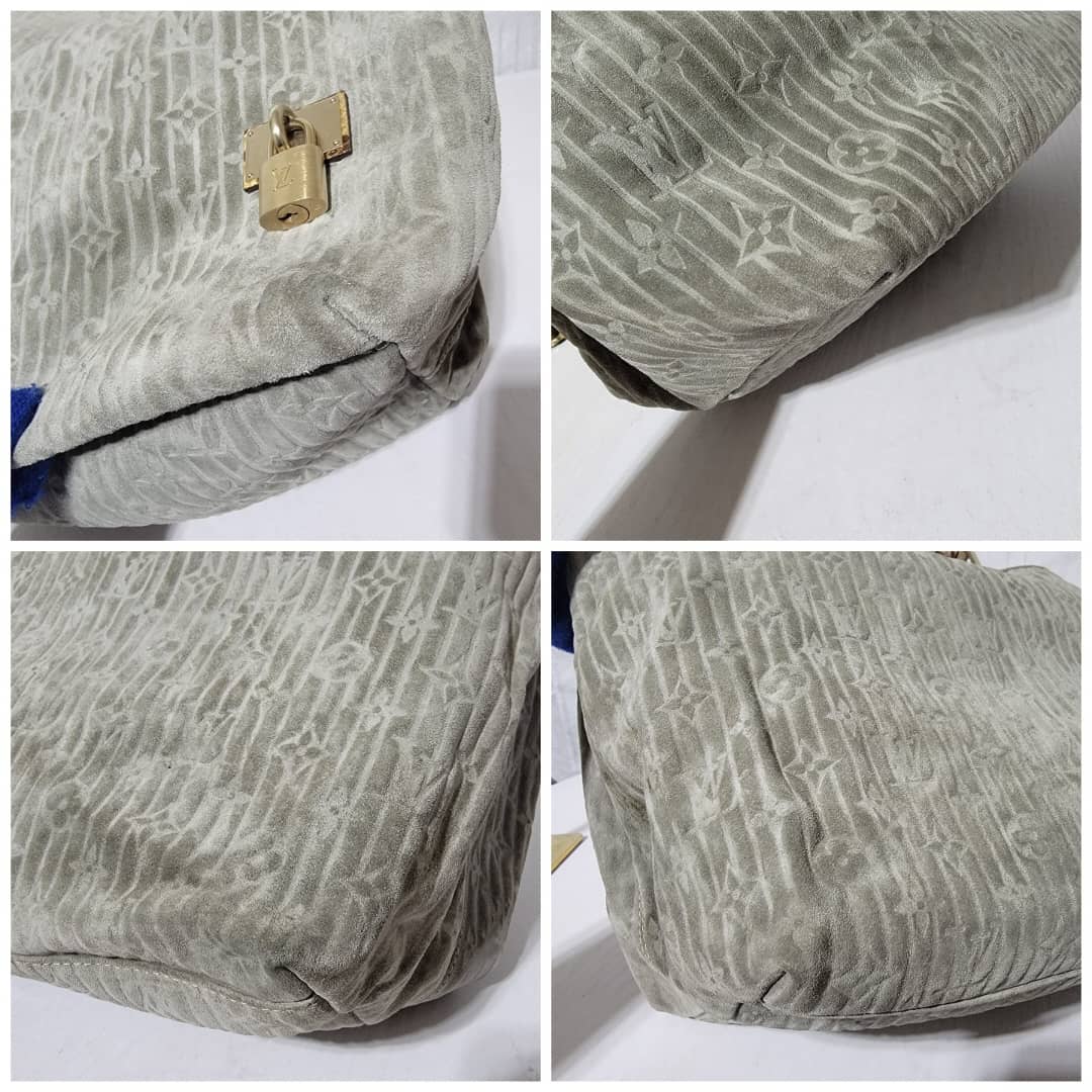 This authentic Louis Vuitton Limited Edition Whisper Bag Monogram Suede and Python GM is in it’s good pre-owned condition. The exterior is clean and beautiful. Interior is clean. The left side of the bag shows a little darken wear by the corner. Kindly look at pictures above