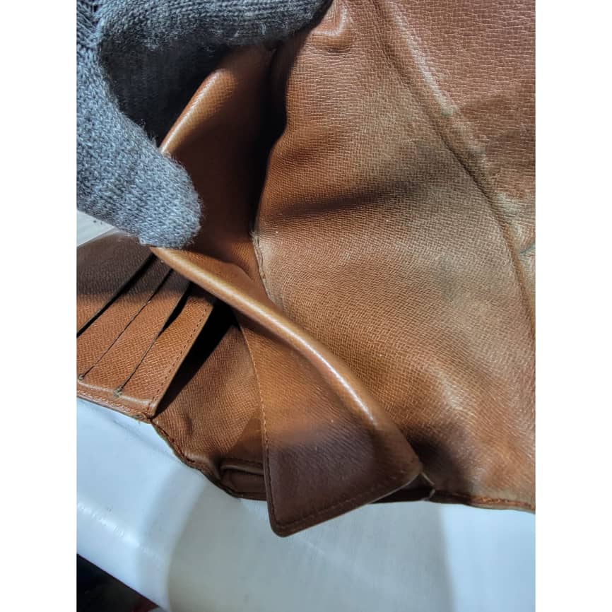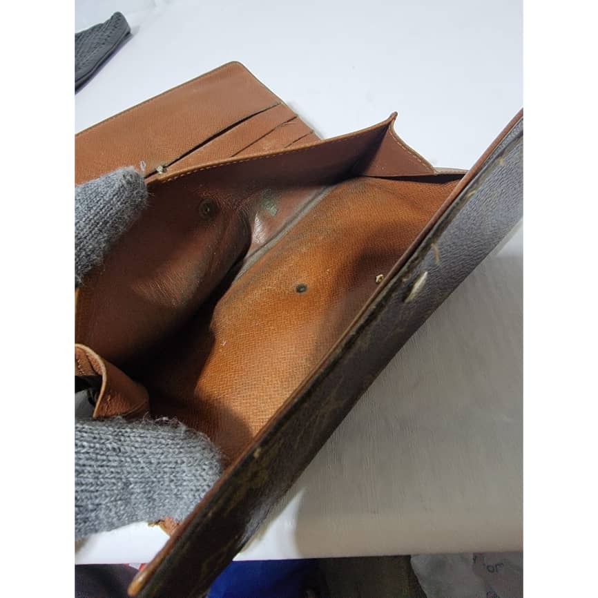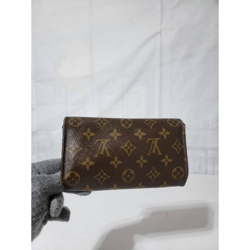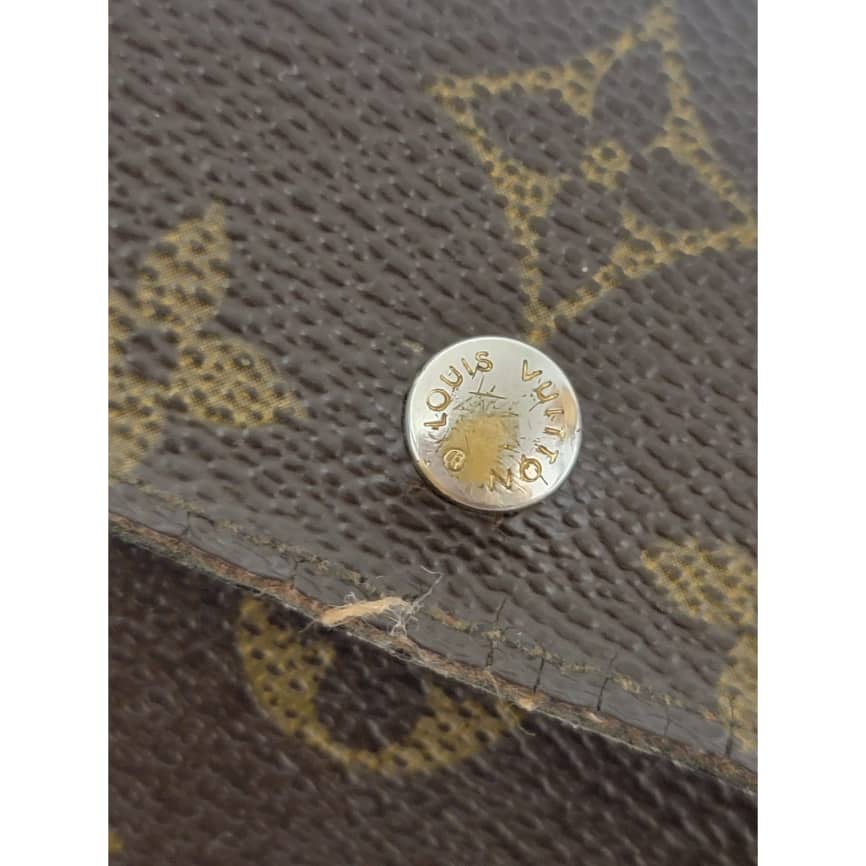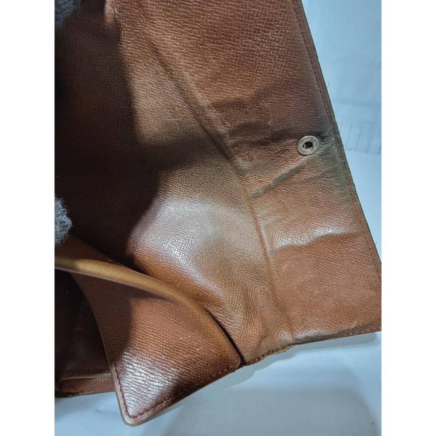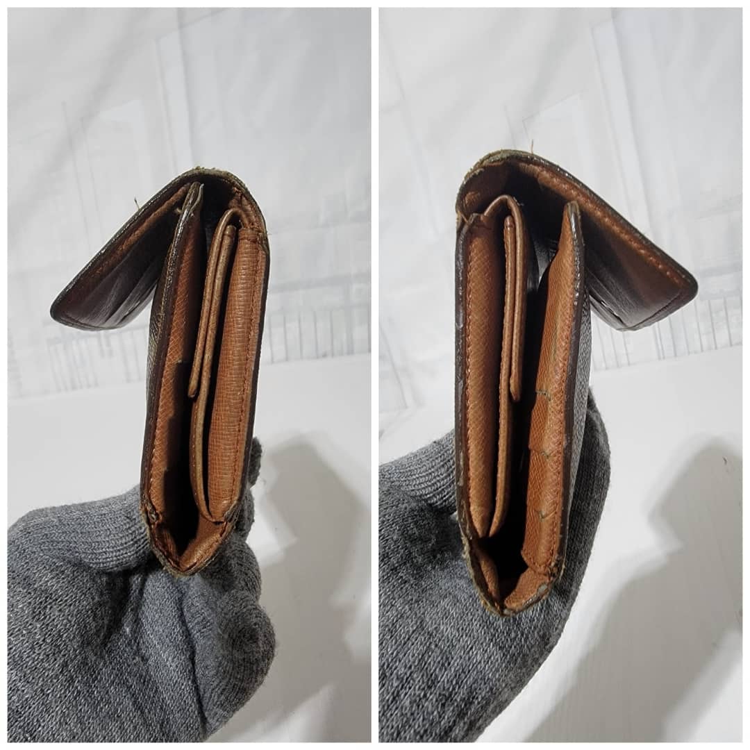 This authentic Louis Vuitton Long Monogram Sarah Porte Tresor Pochette Monnaie Credit Wallet Brown is in it’s pre-owned condition. The exterior coated canvas is clean however, it shows sign of use. The base edges is worn out, there is scratch and scuffing to the edges of this wallet (Kindly look at pictures above). The interior is not clean, it is really worn out. The snap closure of this wallet is not so functional. Kindly look at pictures and understand that this wallet is not so in a good condition.