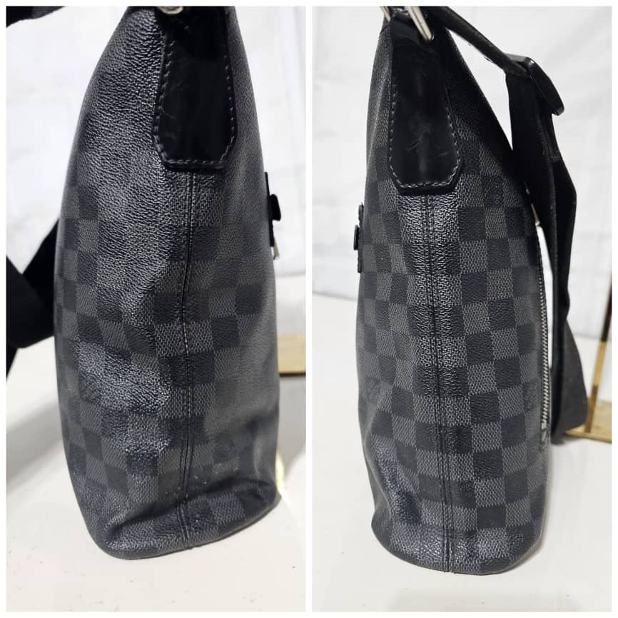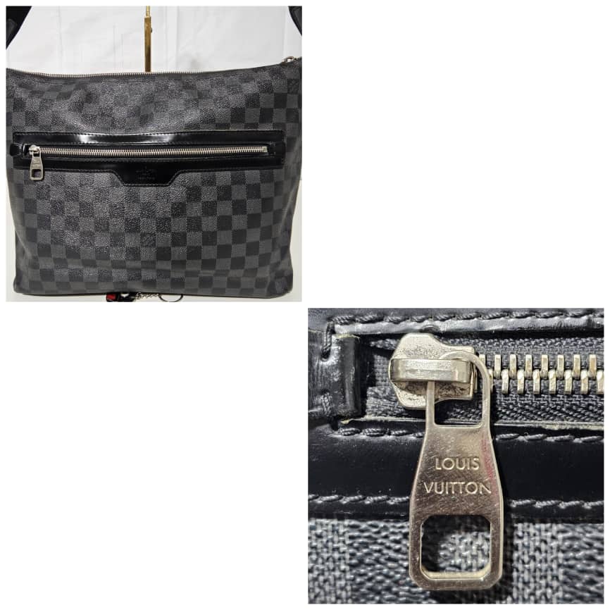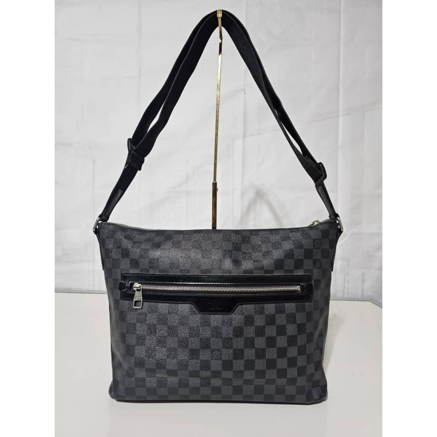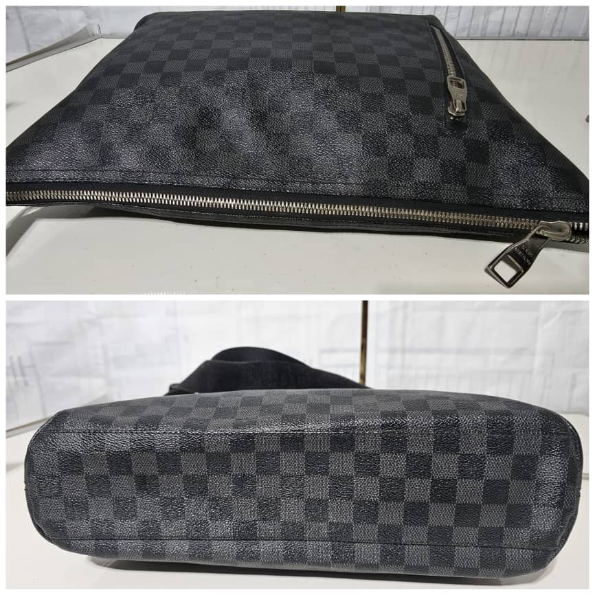 This authentic Louis Vuitton Mick PM in Damier Graphite Messenger Bag is in it’s good pre-owned condition. The exterior leather is clean and beautiful. The interior is clean. Silver hardware, adjustable shoulder strap.