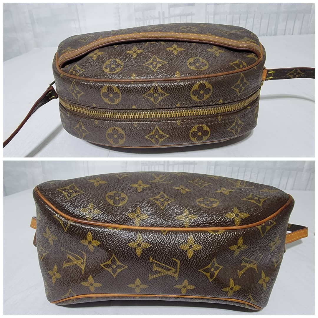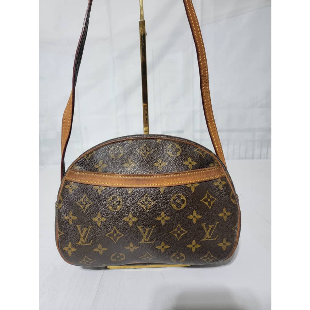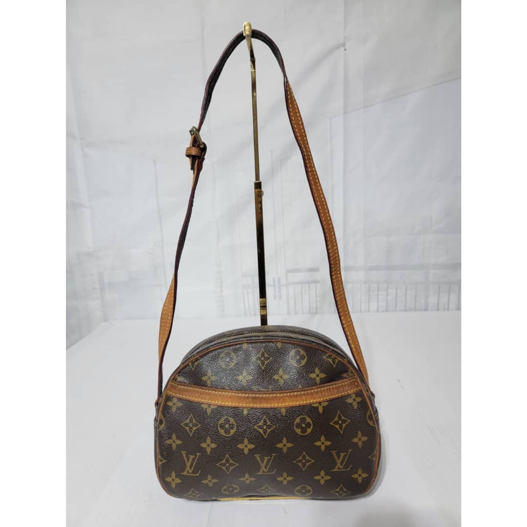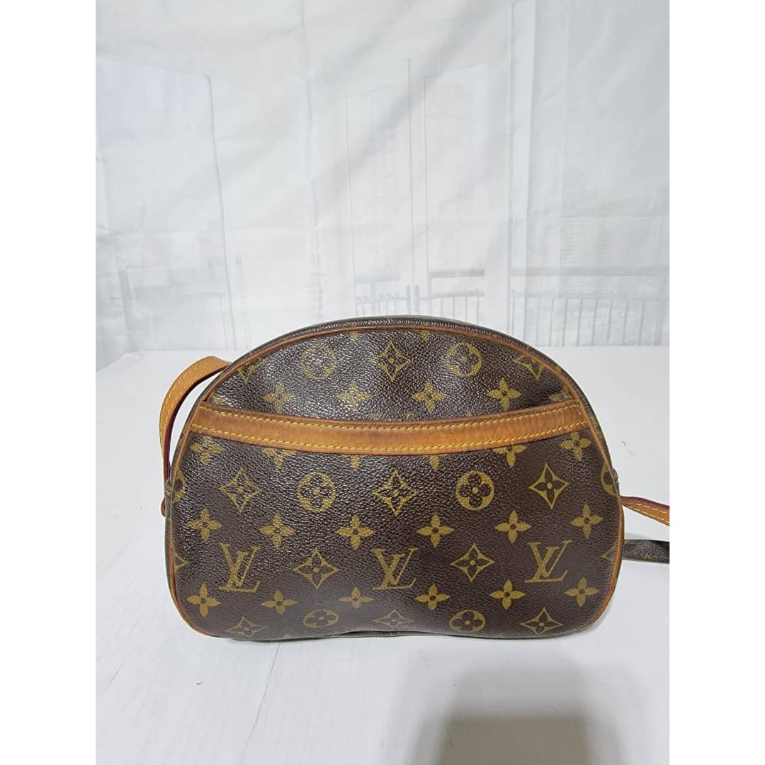 This authentic Louis Vuitton Monogram Blois Crossbody Bag Brown is in it’s good pre-owned condition. The exterior monogram coated canvas is clean and beautiful. Interior is clean. The vachatte leather that runs across the front pocket and the strap handle shows honey wear patina.