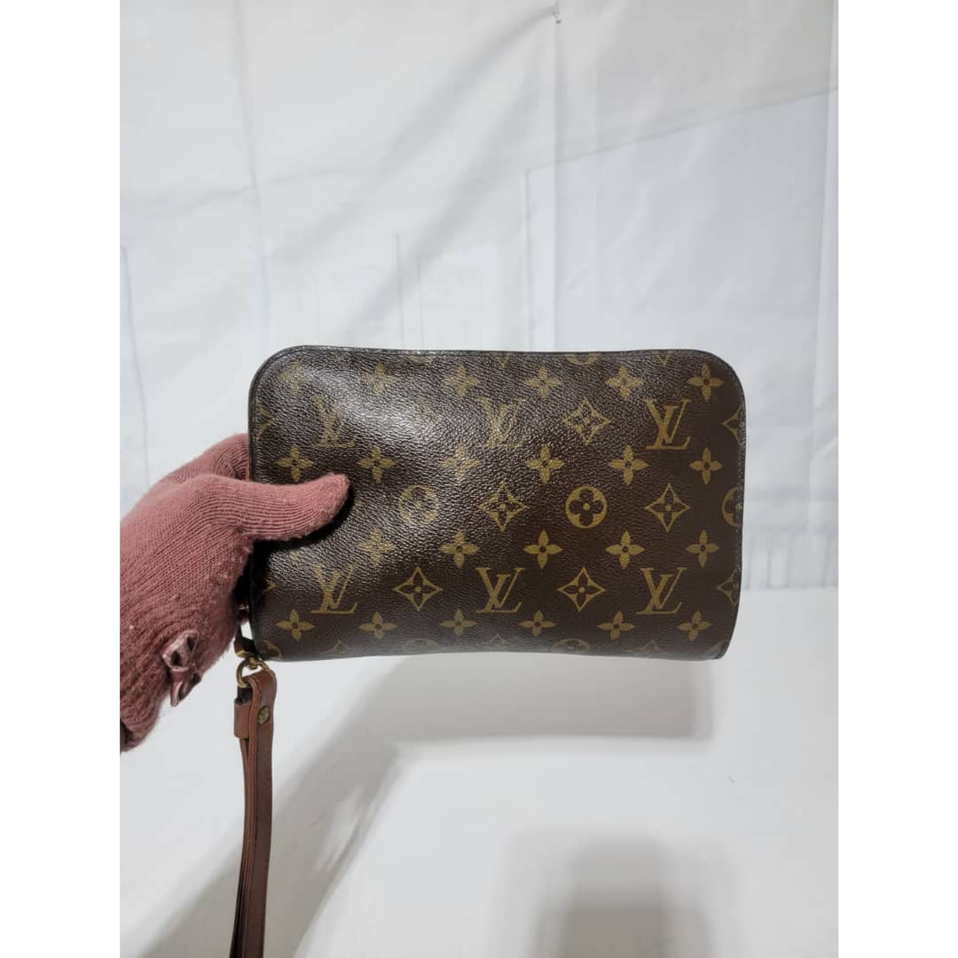 This authentic Louis Vuitton Monogram Canvas Orsay Clutch Brown is in it’s good pre-owned condition. The exterior canvas is clean and beautiful. Interior is clean. Gold hardware shows little scratches.