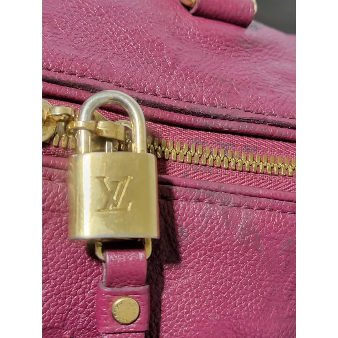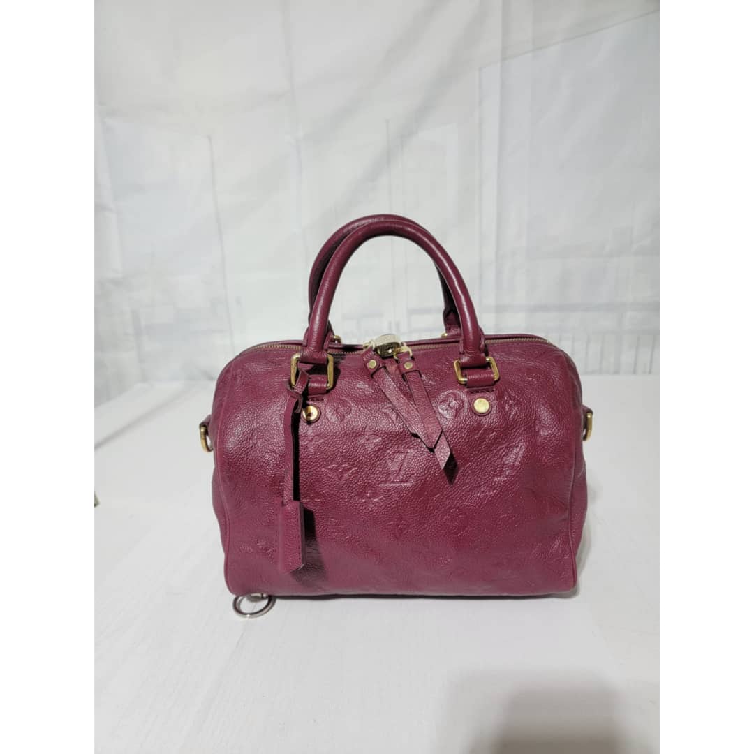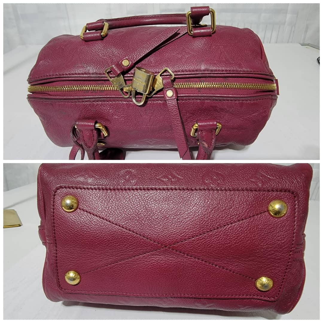 This authentic Louis Vuitton Monogram Empreinte Speedy 25 HandBag is in it’s good pre-owned condition. The exterior empreinte leather is clean and in good condition,it shows a little bit sign of wear (Kindly look at pictures above). There are little scratches at the base edges. Gold hardware shows little scratches. Interior is clean. It has some little wear to the leather (Kindly look at pictures above). No long strap.