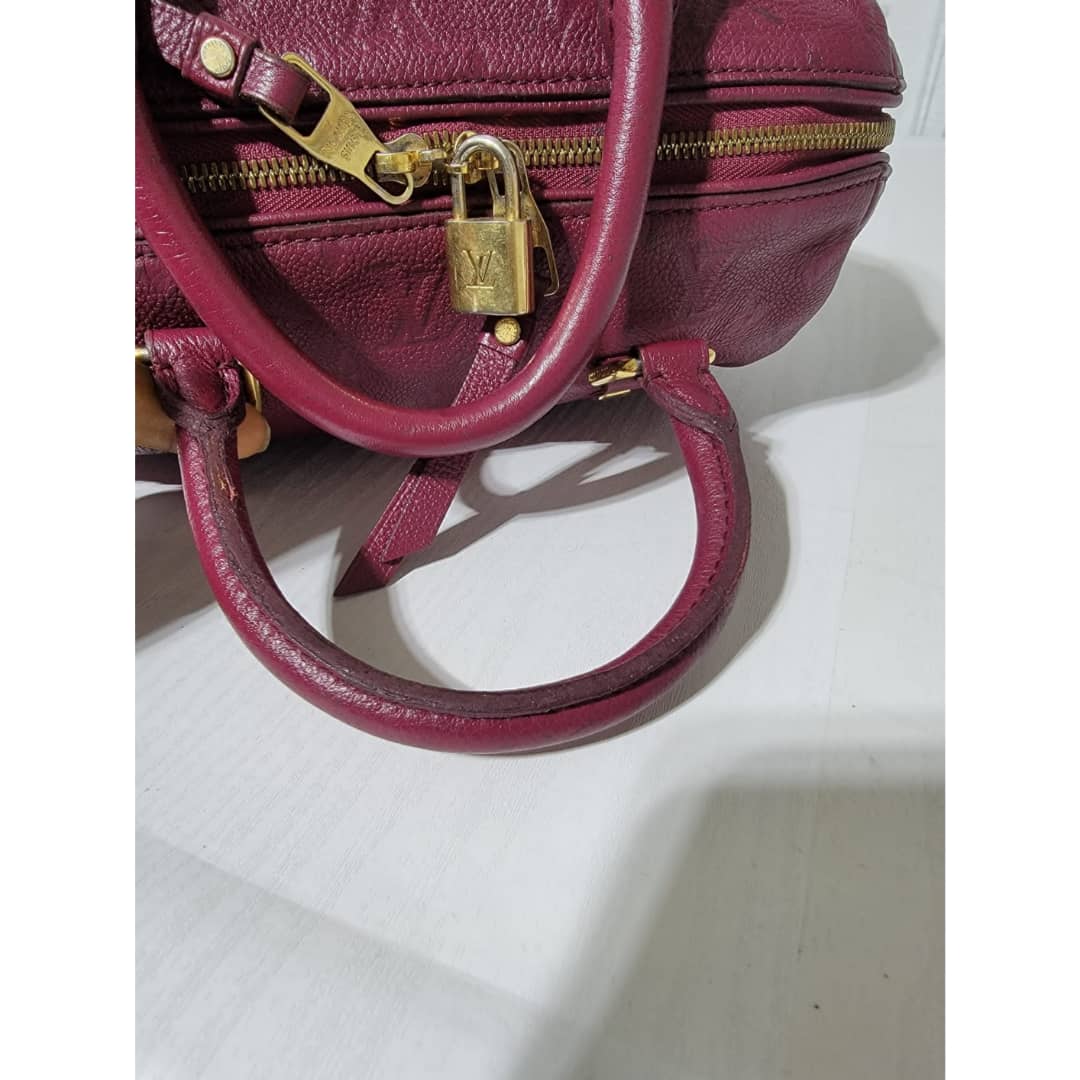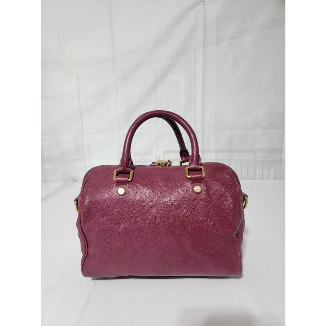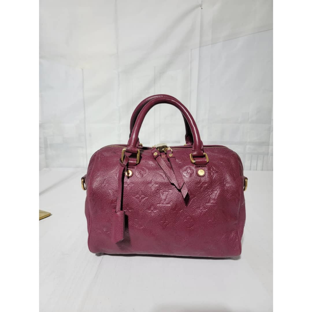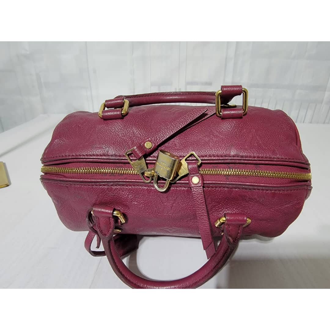 This authentic Louis Vuitton Monogram Empreinte Speedy 25 HandBag is in it’s good pre-owned condition. The exterior empreinte leather is clean and in good condition,it shows a little bit sign of wear (Kindly look at pictures above). There are little scratches at the base edges. Gold hardware shows little scratches. Interior is clean. It has some little wear to the leather (Kindly look at pictures above). No long strap.