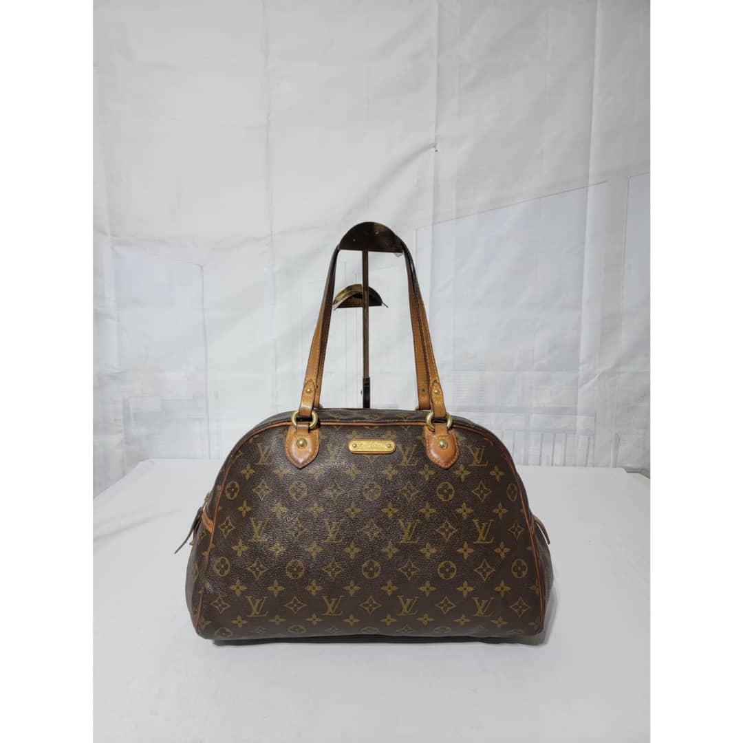 This authentic Louis Vuitton Monogram Montorgueil PM Shoulder Bag Brown is in it’s good pre-owned condition. The exterior coated canvas is clean and beautiful. Interior is clean. The vachatte leather that runs across bag and the handle shows honey patina wear and rubbing, kindly look at pictures closely for details.