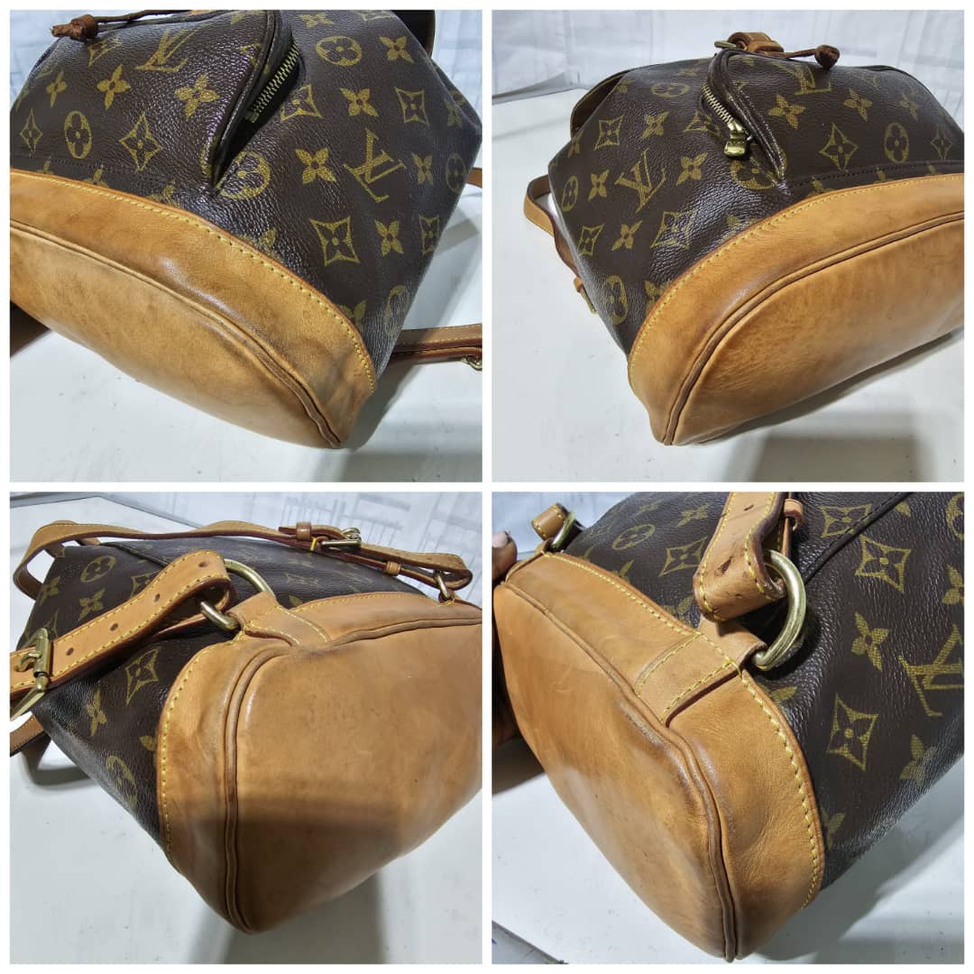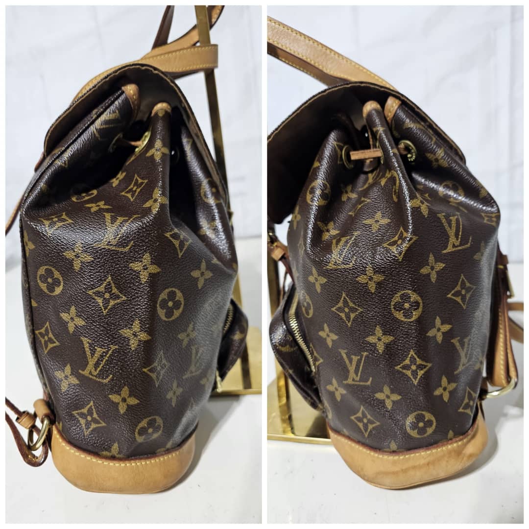This authentic Louis Vuitton Monogram Montsouris PM Backpack is in it’s good pre-owned condition. The exterior canvas is clean and beautiful. The interior is clean. The vachatte leather has shows a slightly honey brown patina and little water mark (Kindly review pictures above). The leather straps and leather trims are in good condition. Brass hardware.