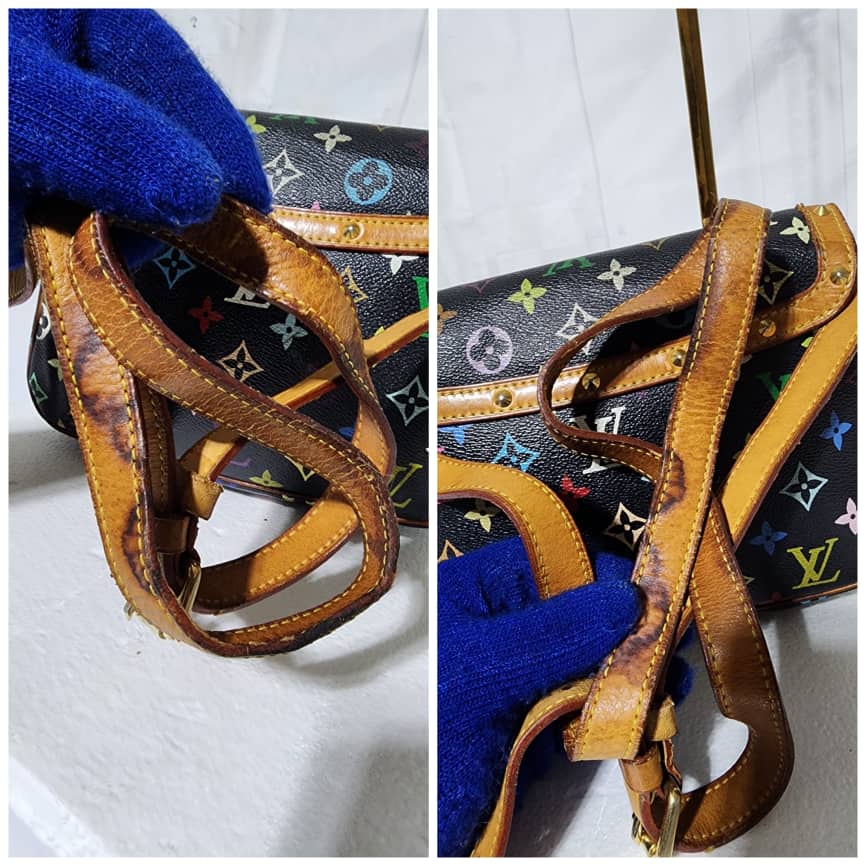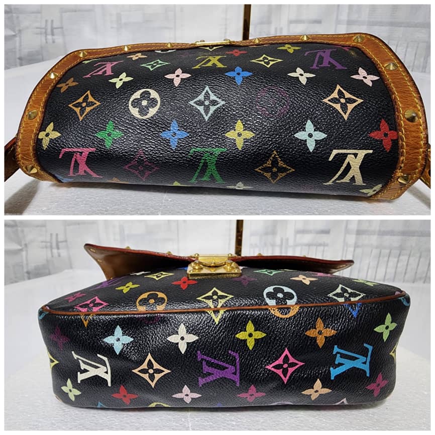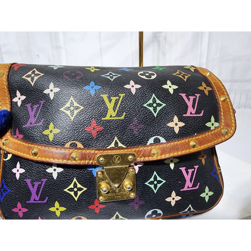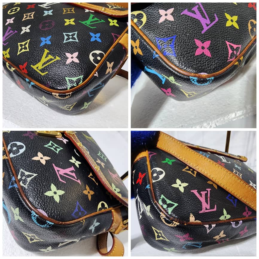 This authentic LOUIS VUITTON Monogram Multicolored Sologne Crossbody Bag is in itβs pre-owned condition. The exterior multicolored coated canvas is clean and beautiful. The leather trim that runs across the bag shows watermarks wear and aging to it. Interior is clean, it shows sign of use. The opening to the flap shows sign of wear/ watermark. The date code is faded on the interior suede.