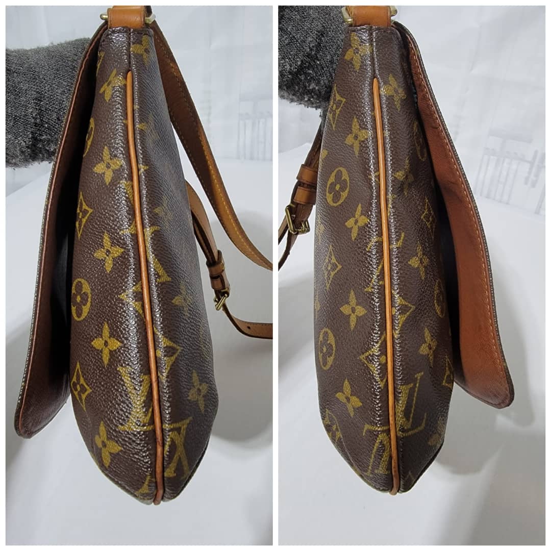 This authentic LOUIS VUITTON Monogram Musette Salsa Shoulder/Crossbody Bag Brown is in it’s good pre-owned condition. The exterior coated canvas is clean and beautiful. Interior is clean. The vachatte leather that runs by the side of the bag shows honey patina wear. The vachatte leather handle is clean. It can be worn as a crossbody/shoulder bag.