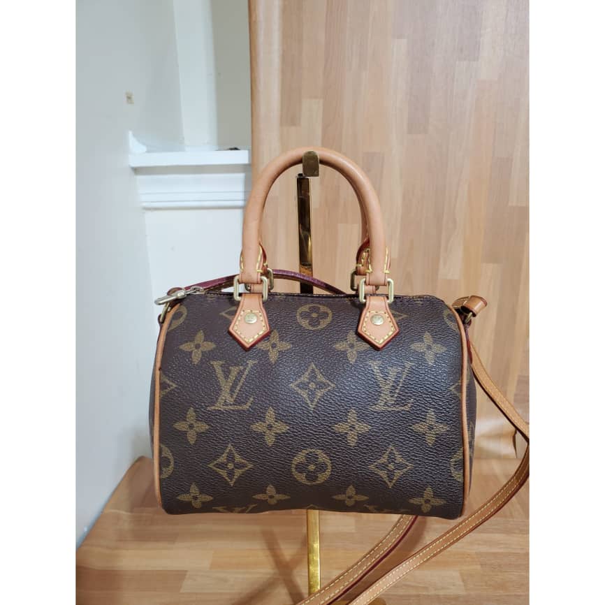 Monogram Nano Speedy is in it’s pre-owned condition.has sign of use. The exterior coated is clean and beautiful. Interior is clean. The zipper edge brass holder is out. But it’s fixed and good to zip back and forth.