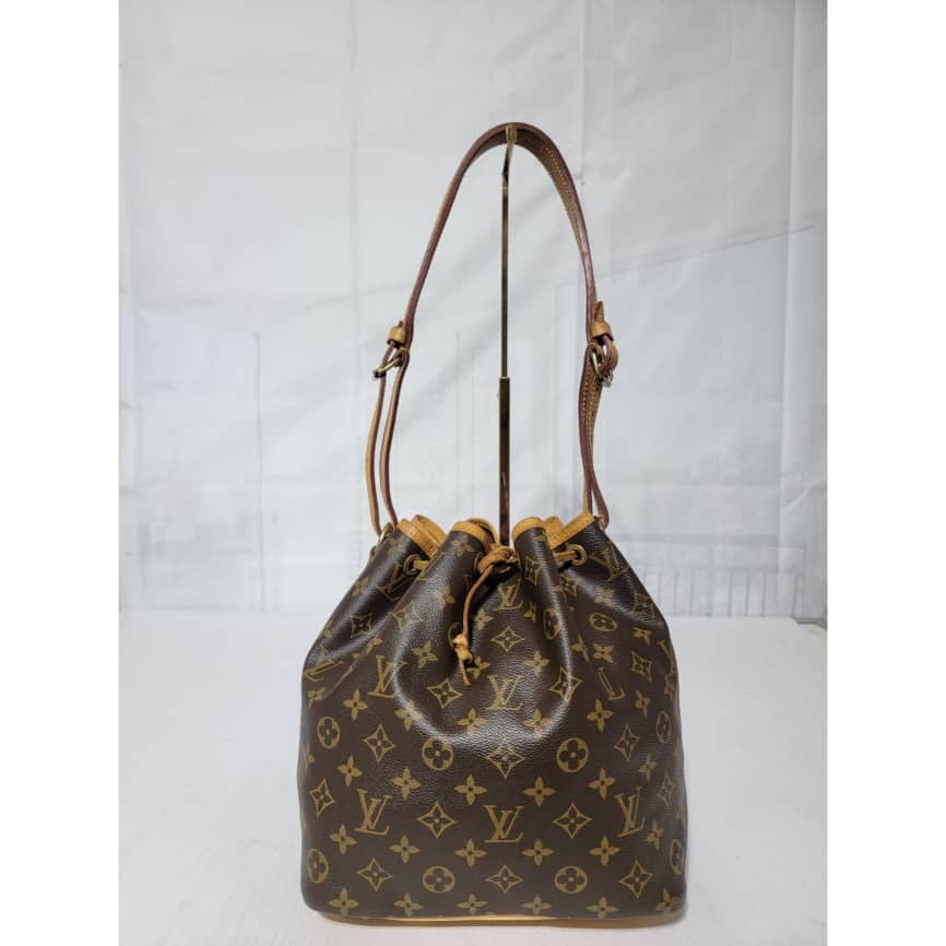 This authentic Louis Vuitton Monogram Petit Noe Drawstring Bucket Hobo Bag Brown is in itβs good pre-owned condition. The exterior and the interior is clean and beautiful. The base edges shows little sign of watermark (Kindly look at pictures above). In great condition