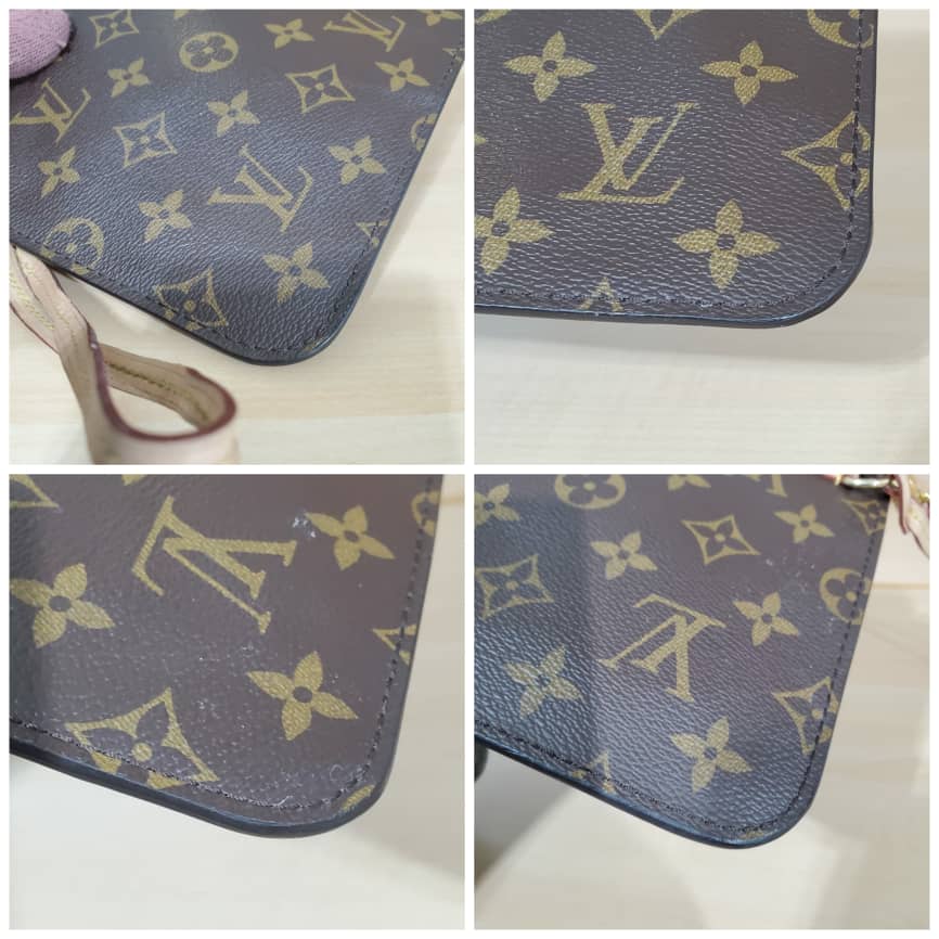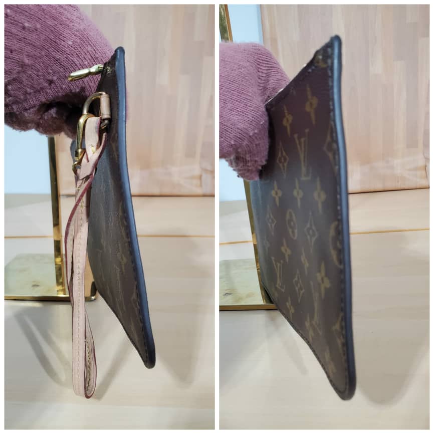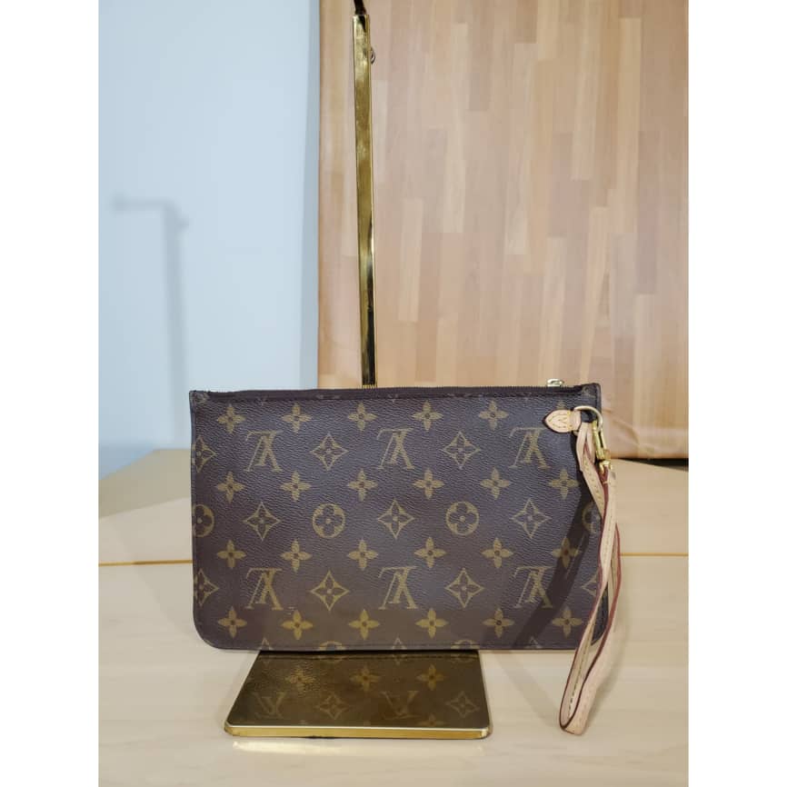 This authentic LOUIS VUITTON Monogram Canvas Pochette Wristlet Pouch Neverfull MM is in its good pre-owned condition. The exterior canvas is clean and beautiful. Interior is clean.