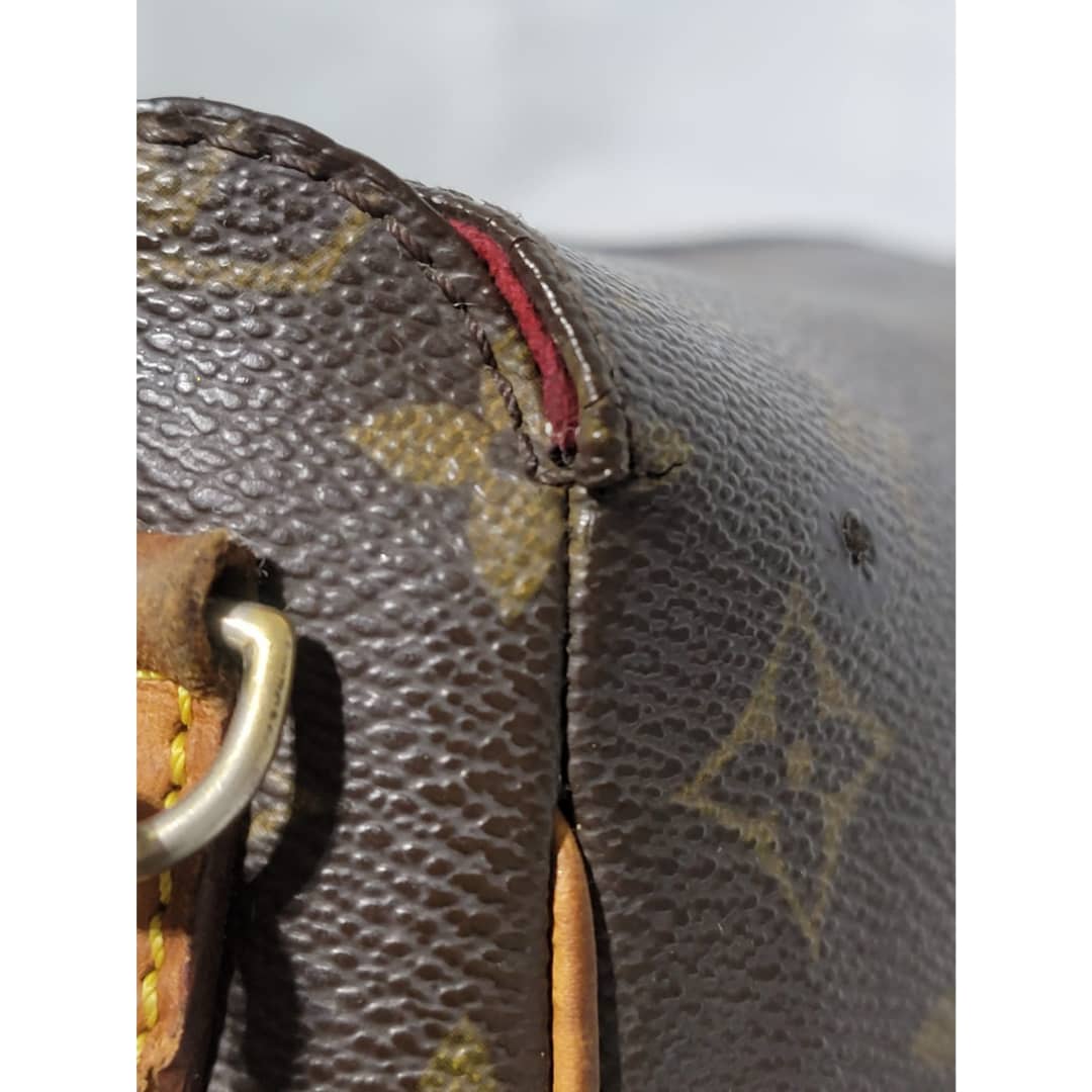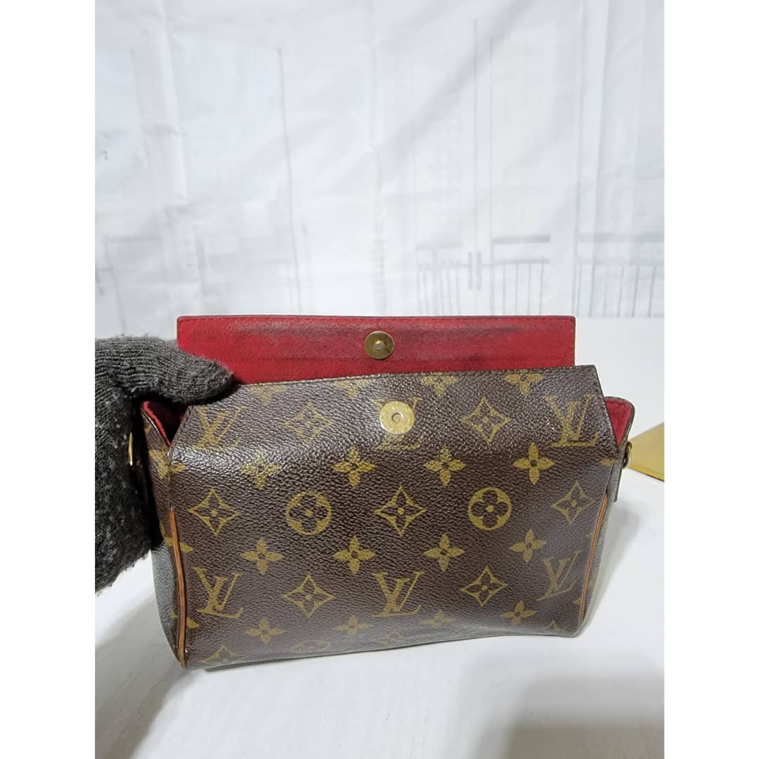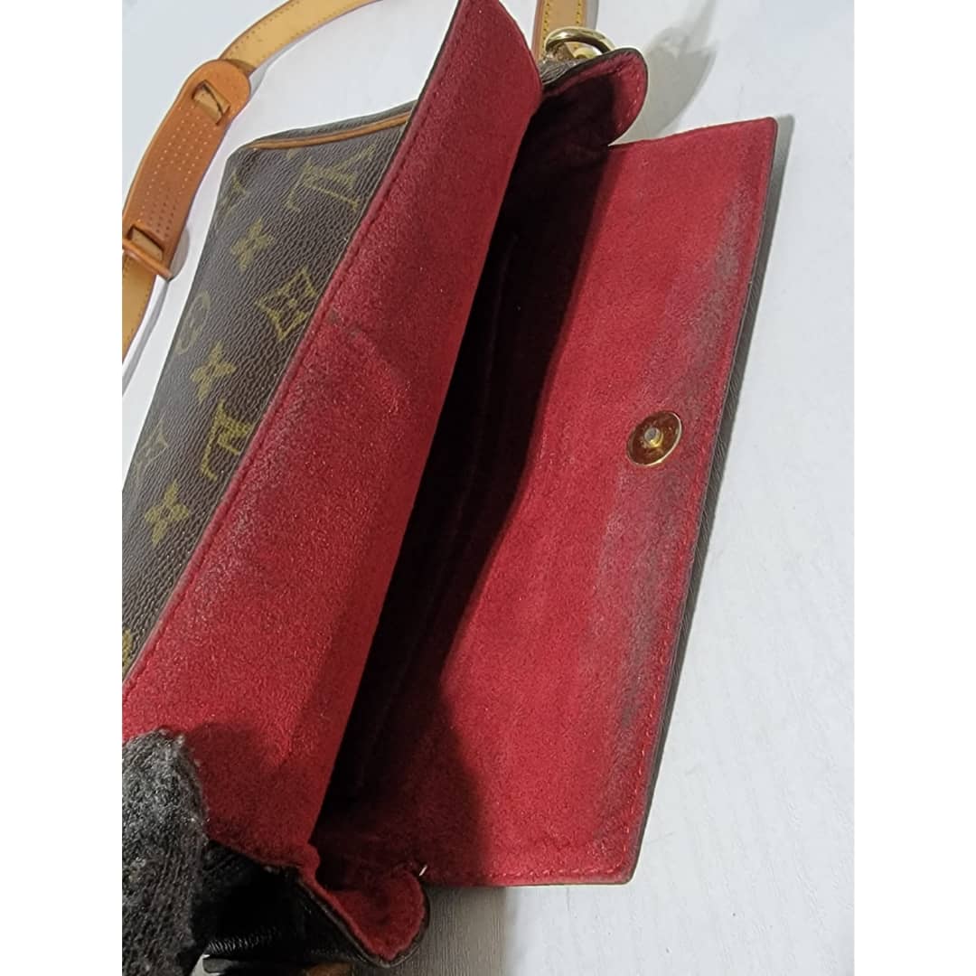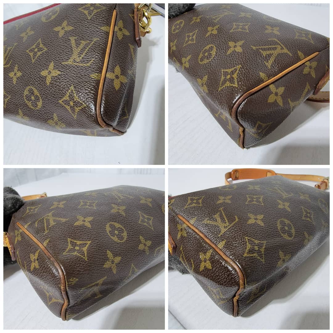 This authentic Louis Vuitton Monogram Recital Bag Brown is in it’s good pre-owned condition. The exterior coated canvas is clean and beautiful. The vachatte leather that runs by the side of the bag shows rubbing and brown patina wear to the vachatte leather. The strap was changed to a different generic strap. The interior is clean however shows sign of use (Kindly look at pictures above).