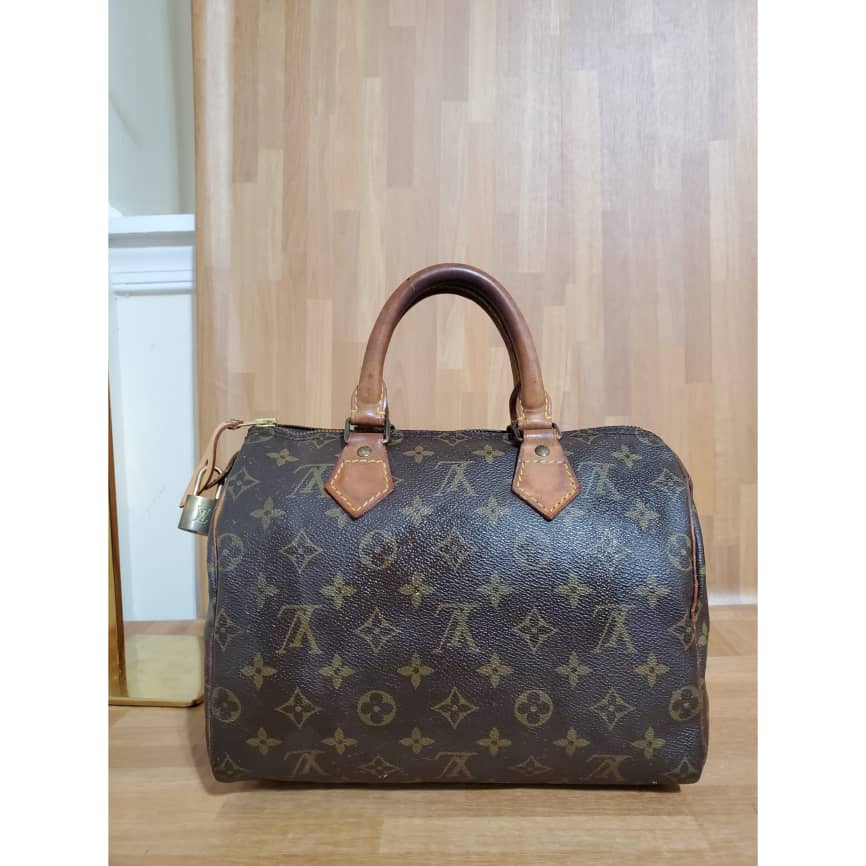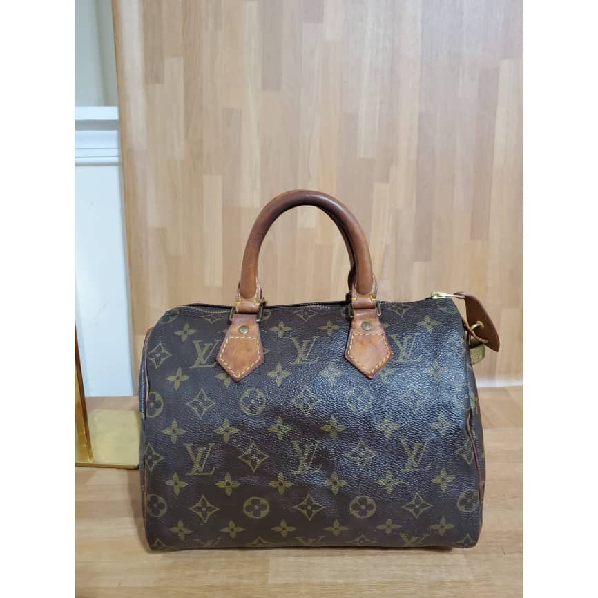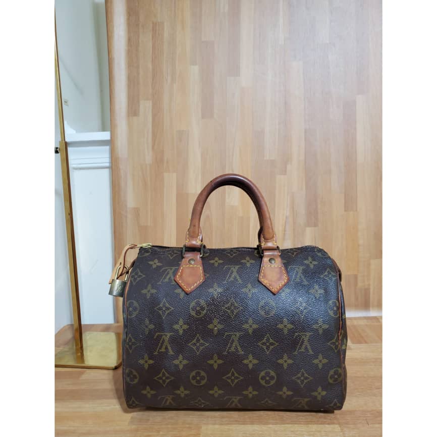 This authentic LOUIS VUITTON Monogram Speedy 25. Is in its pre-owned good condition.has sign of use. The Monogram canvas is clean and beautiful ,The leather which runs throughout the bag and handles shows honey patina wear. Kindly view pictures. Interior is clean.