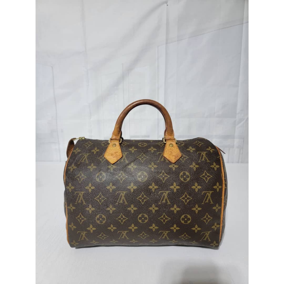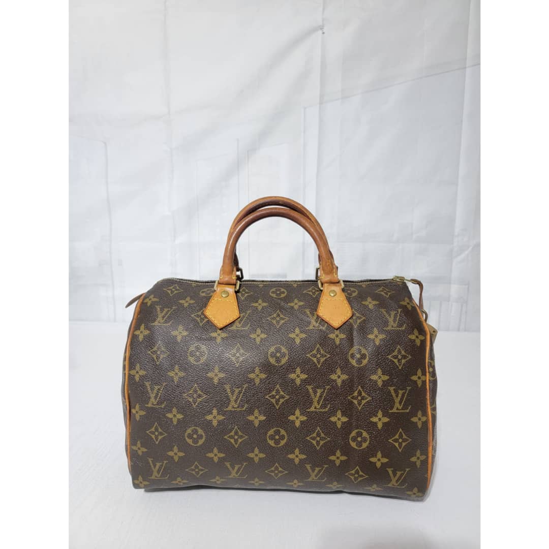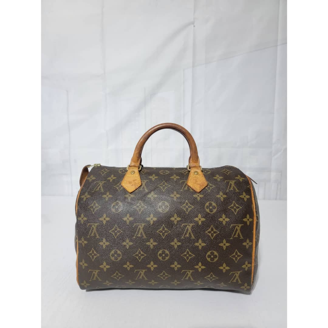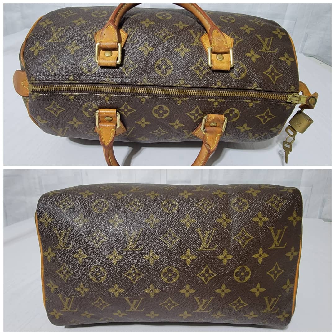 This authentic Louis Vuitton Speedy 30 Bag Brown is in it’s good pre-owned condition. The exterior coated canvas is clean and beautiful. Interior is clean. It comes with it’s key and lock. The vachatte leather on the handle shows some rubbing and honey patina wear. The trim that runs at the side of the bag shows some rubbing (Kindly review pictures above).