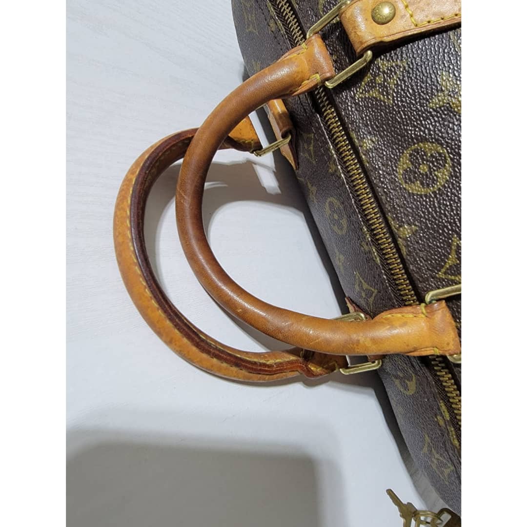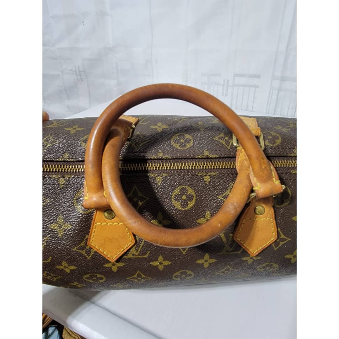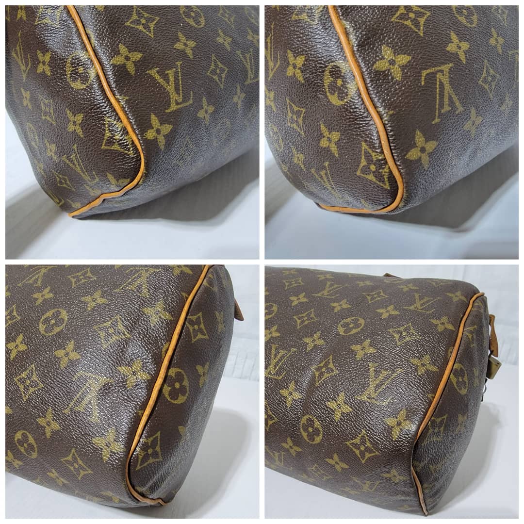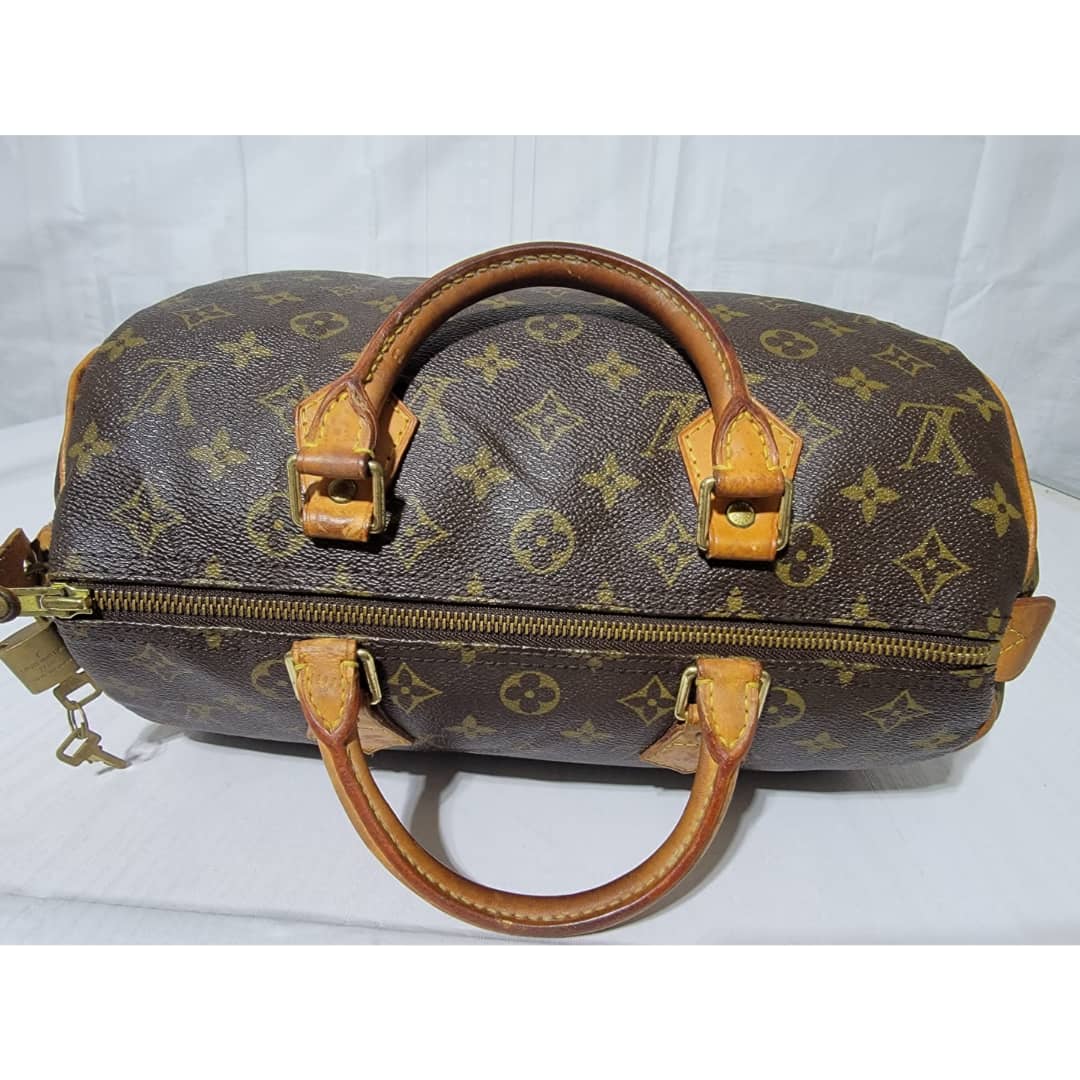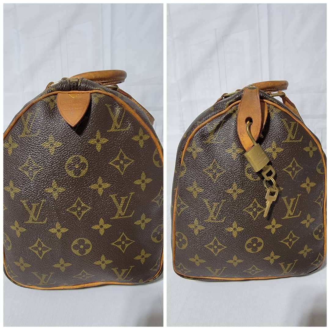This authentic Louis Vuitton Speedy 30 Bag Brown is in it’s good pre-owned condition. The exterior coated canvas is clean and beautiful. Interior is clean. It comes with it’s key and lock. The vachatte leather on the handle shows some rubbing and honey patina wear. The trim that runs at the side of the bag shows some rubbing (Kindly review pictures above).