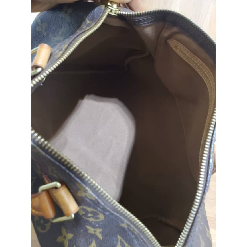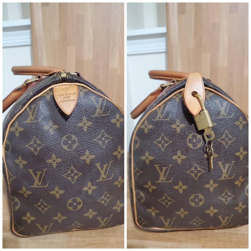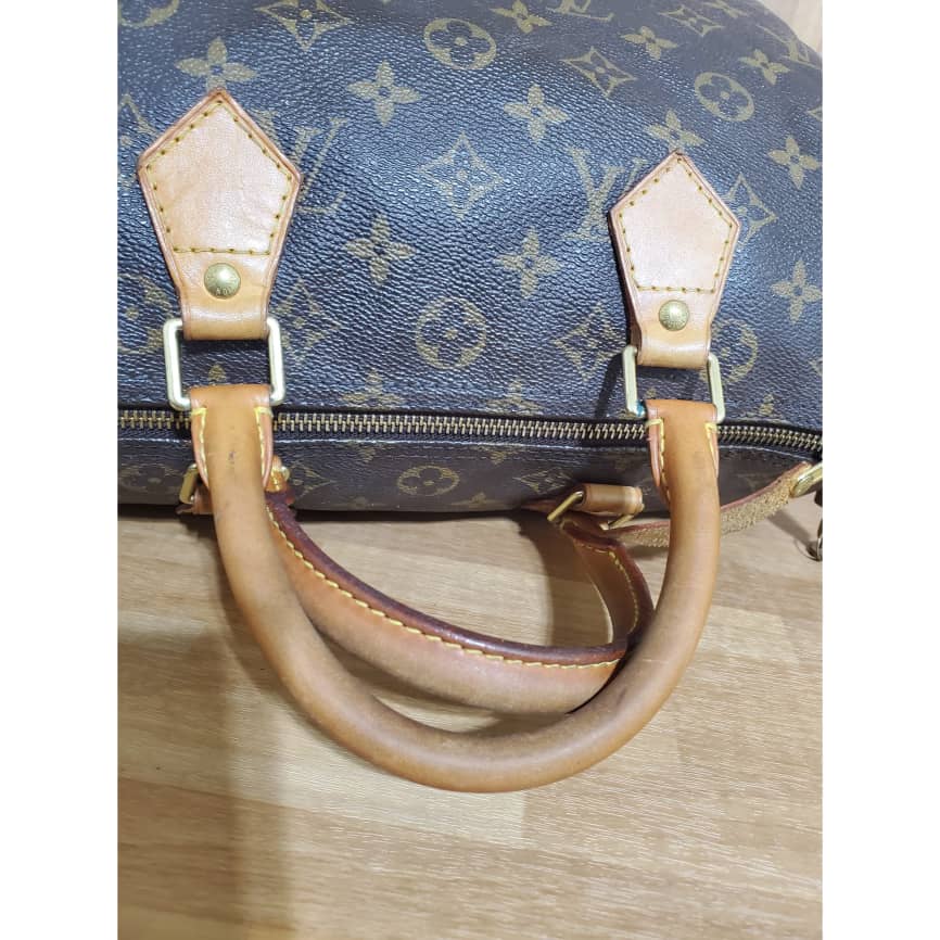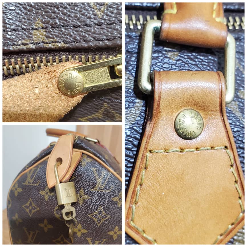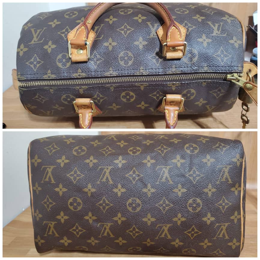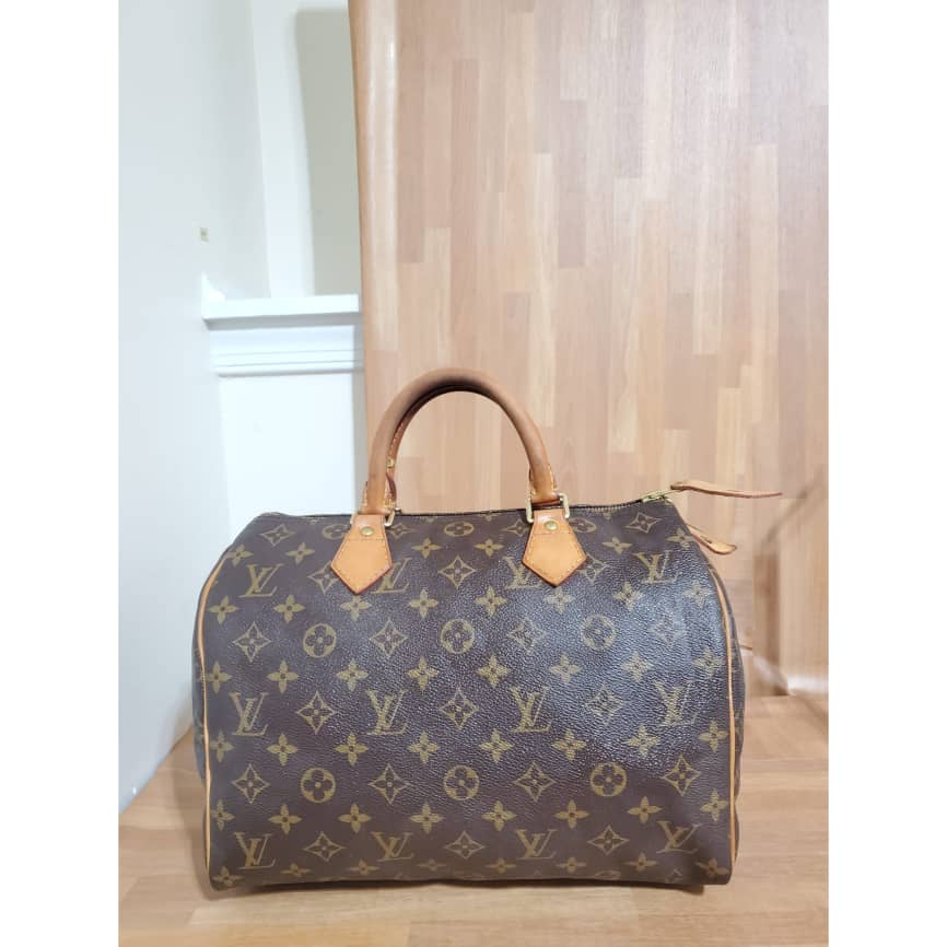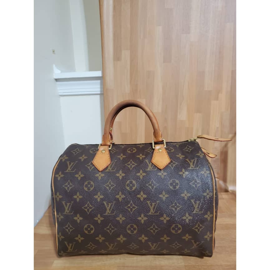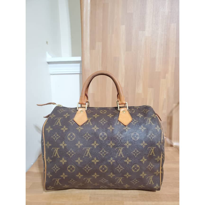 This authentic LOUIS VUITTON Monogram Speedy 30 Satchel Bag is in it’s pre-owned good condition. The exterior coated canvas is clean and beautiful. Interior is clean. Still in gorgeous shape and structure. The handles shows honey patina.