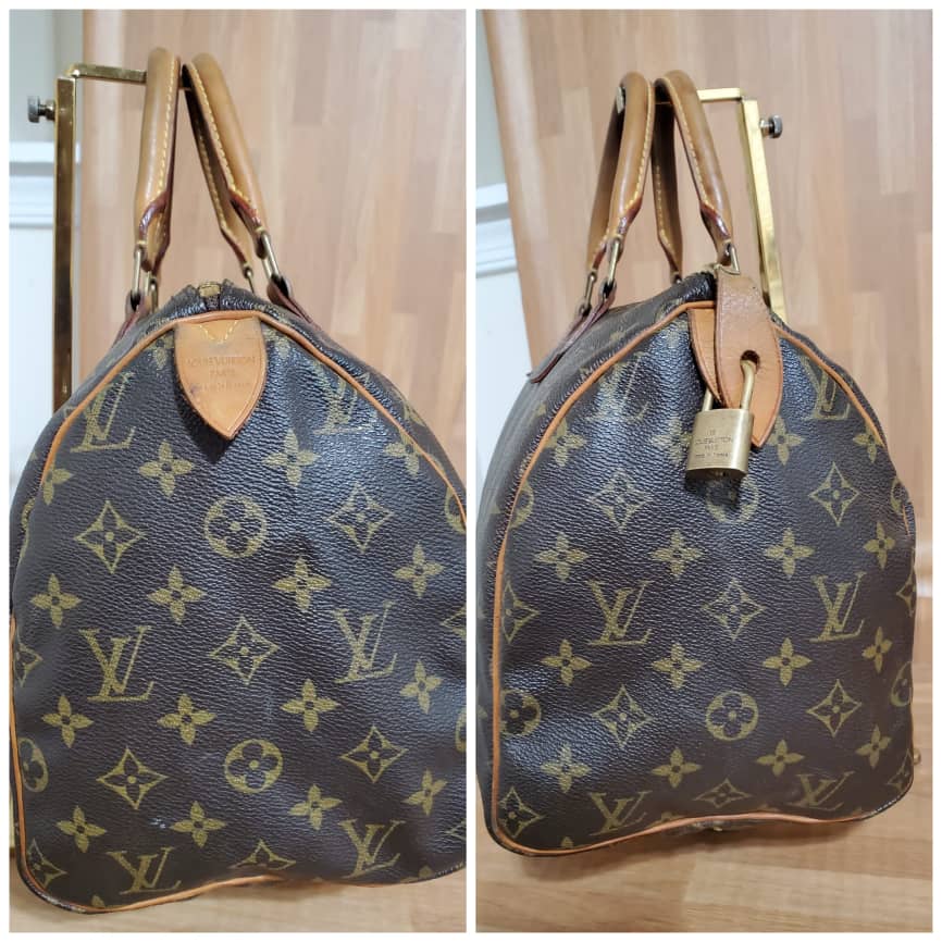 This authentic LOUIS VUITTON Monogram Speedy 30 is in it’s pre-owned good condition. The exterior canvas is clean and beautiful. Interior is clean. The vachatte leather throughout the bag shows honey patina. The handles shows sign of wear. Kindly refer to pictures above.