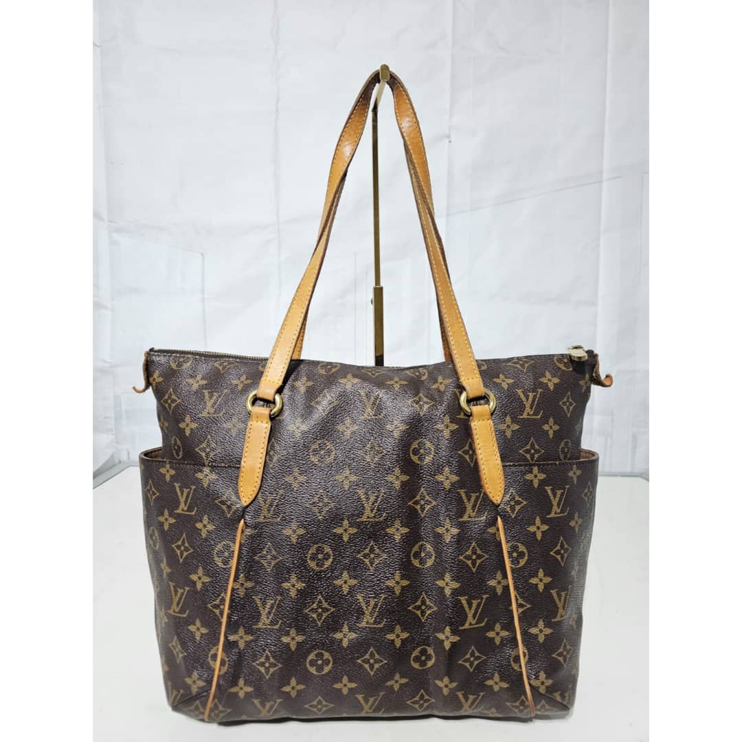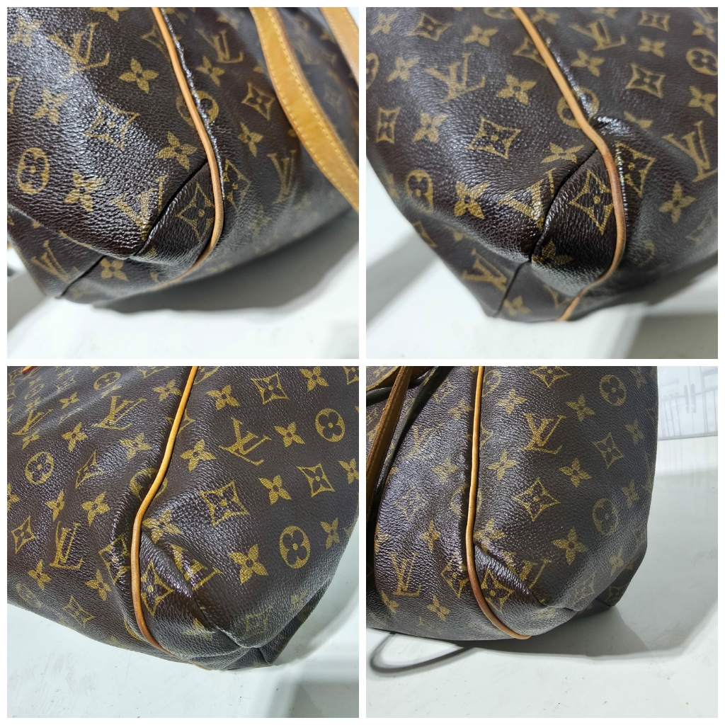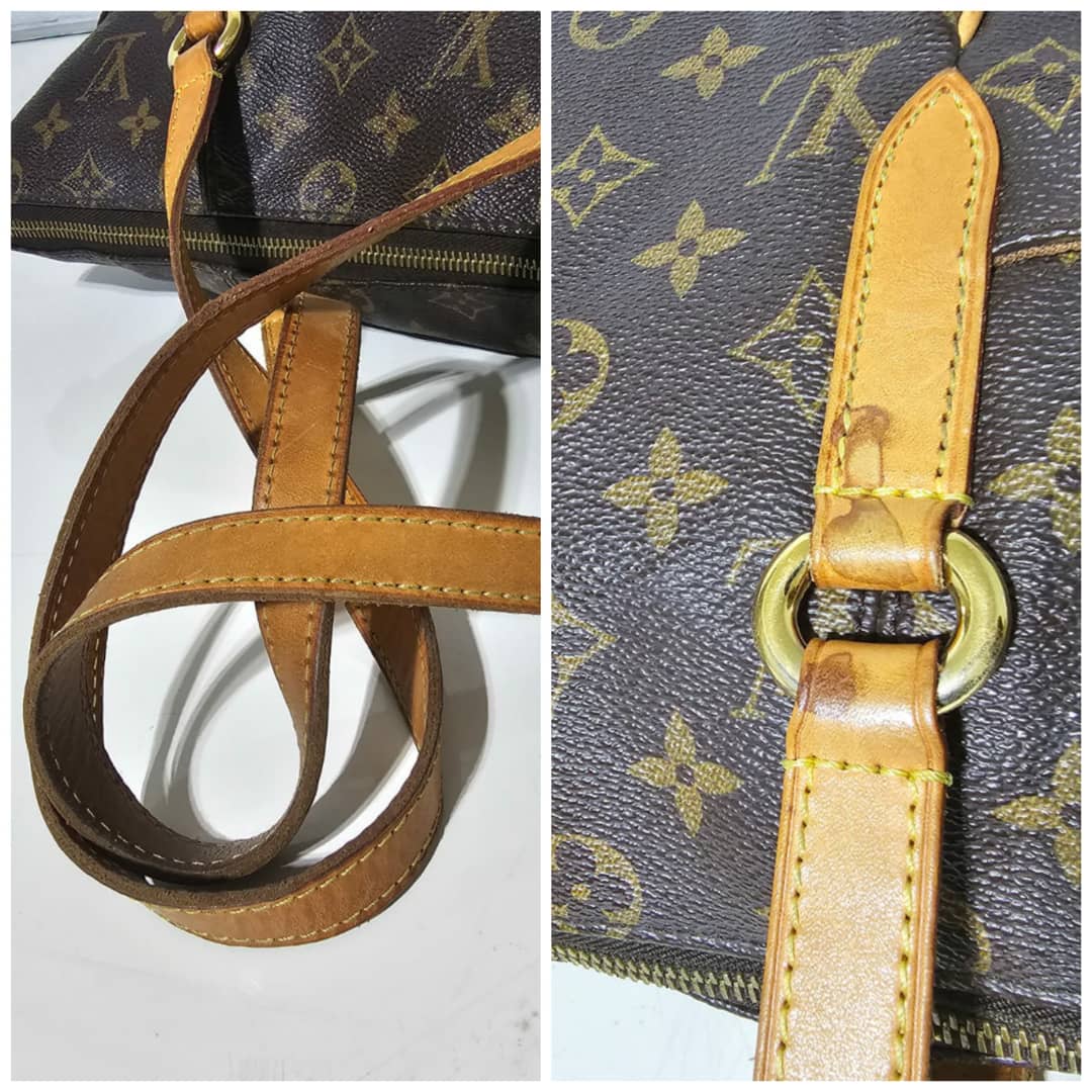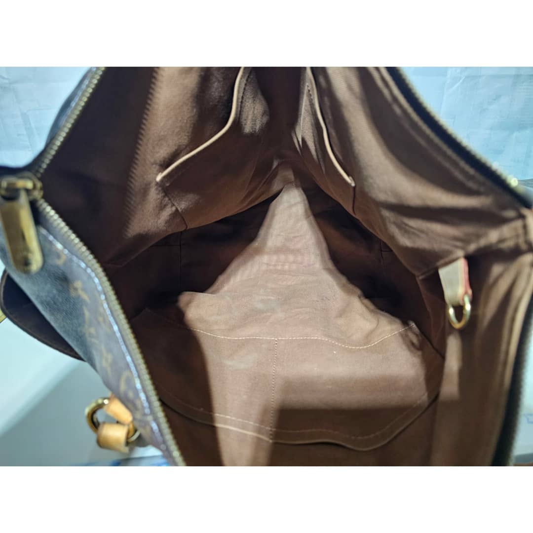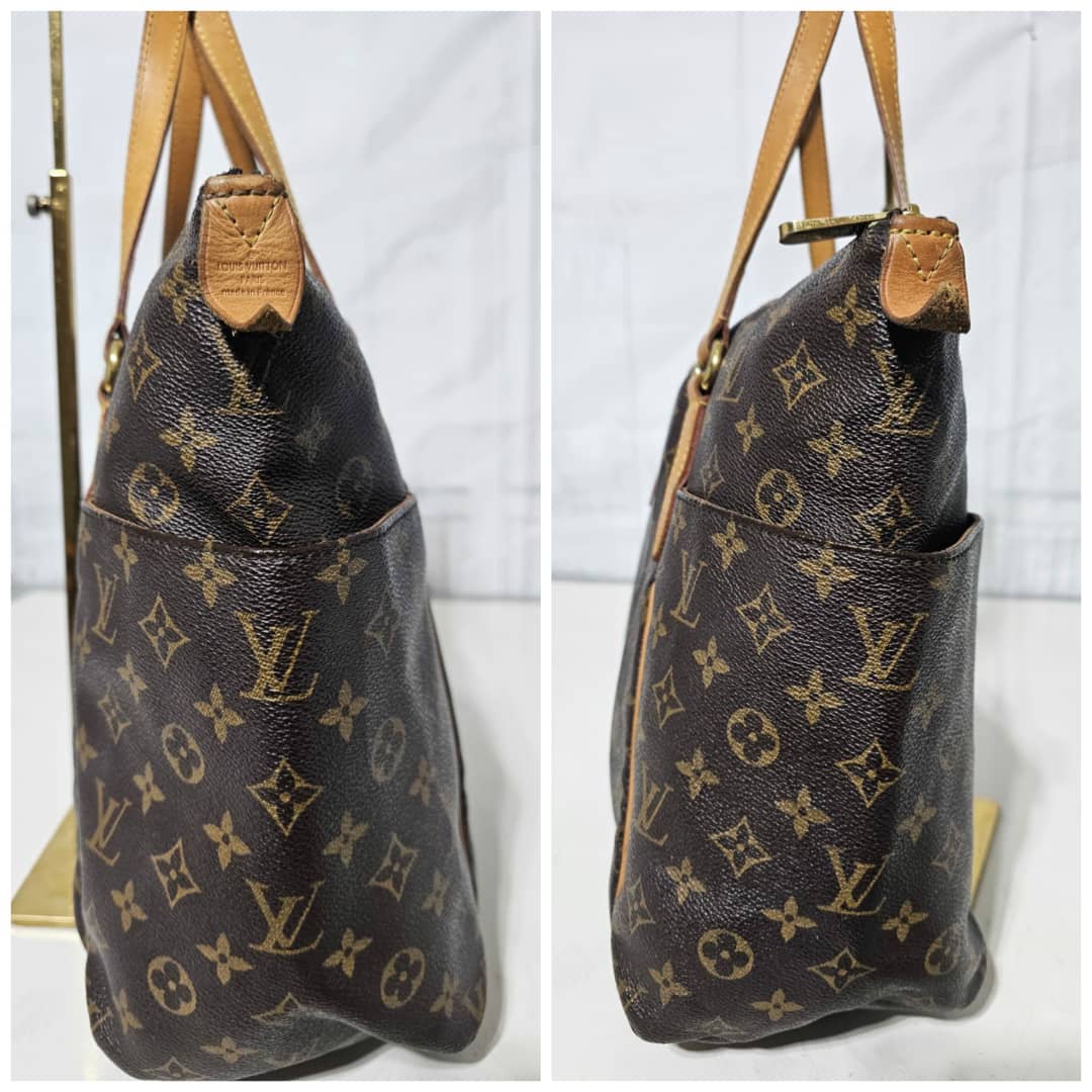 This authentic LOUIS VUITTON Monogram Totally MM is in it’s good pre-owned condition. The exterior leather is clean and beautiful. The interior is clean. The vachatte leather is clean, the base edge of the vachatte leather shows light honey patina on it. Gold hardware.